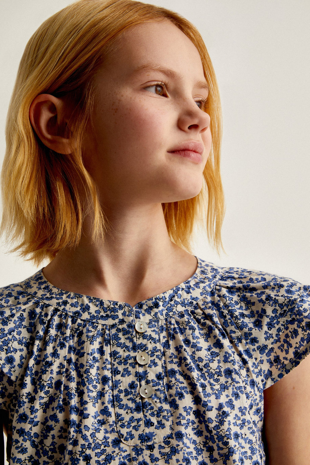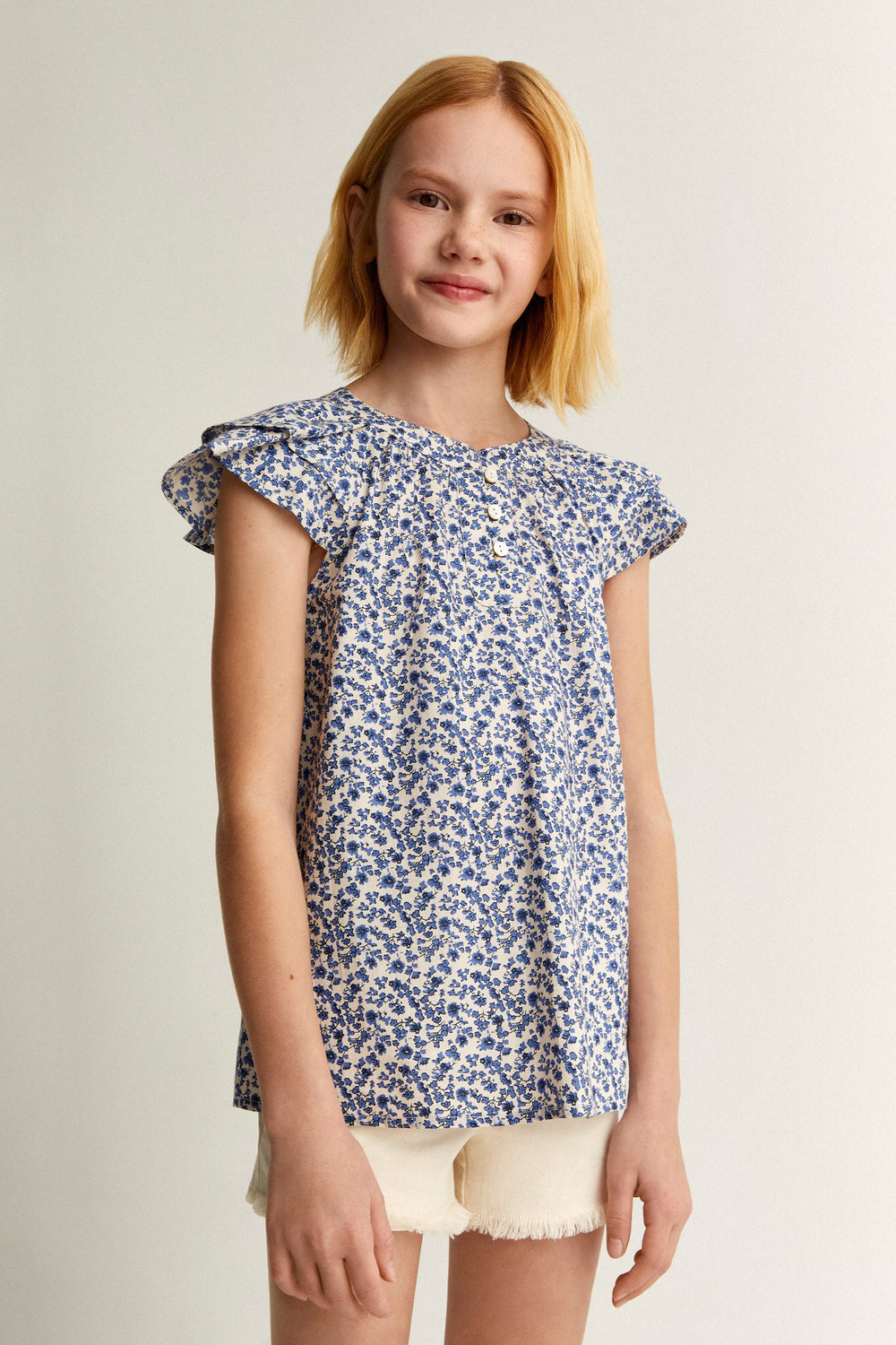 FLORAL BLOUSE WITH RUFFLED SHOULDER
