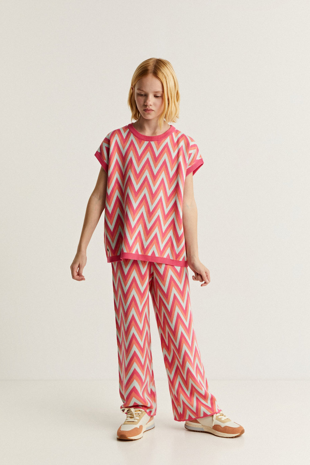 Knit trousers with zig zag print.
