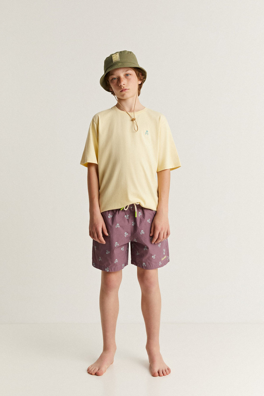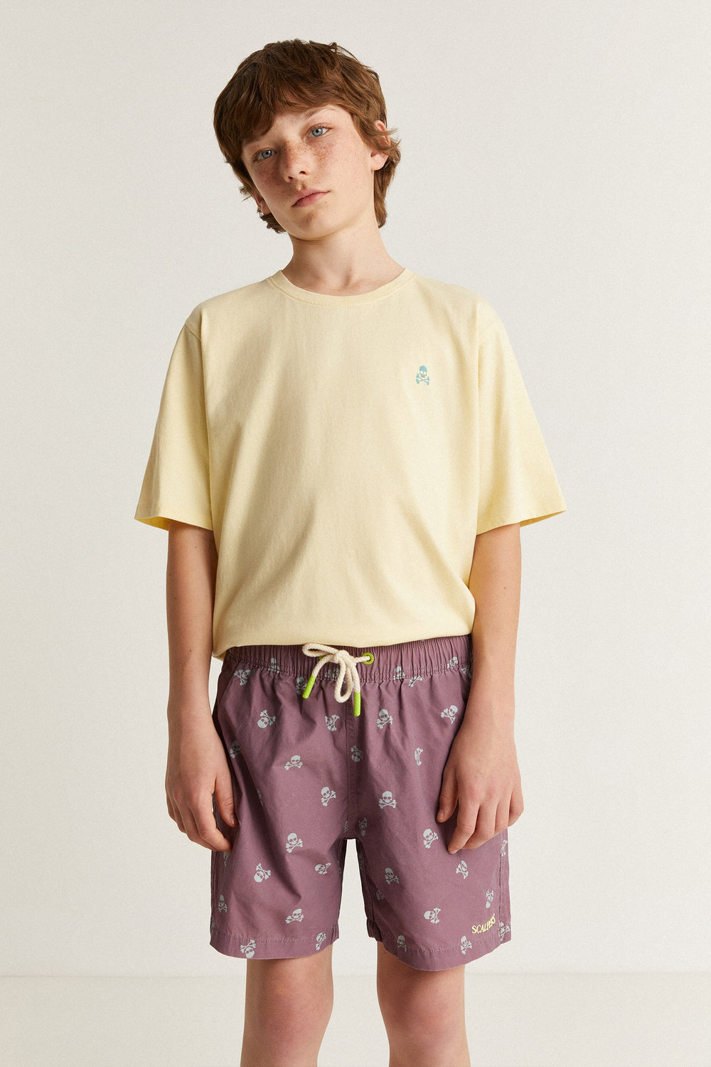 Swimming trunks with all-over skulls print.
