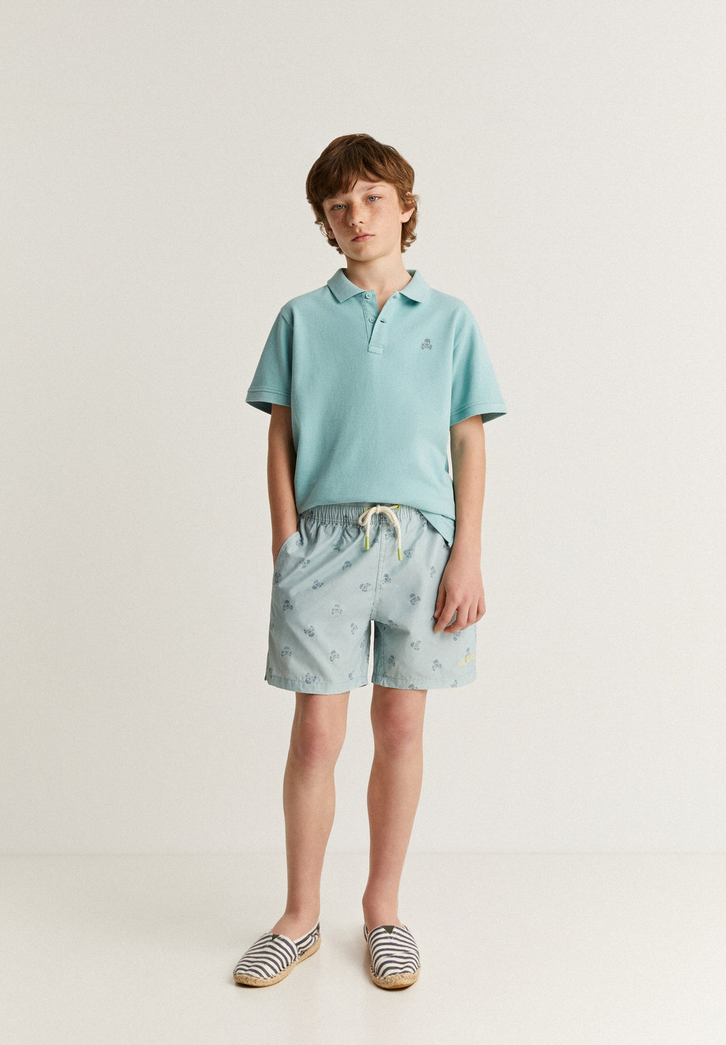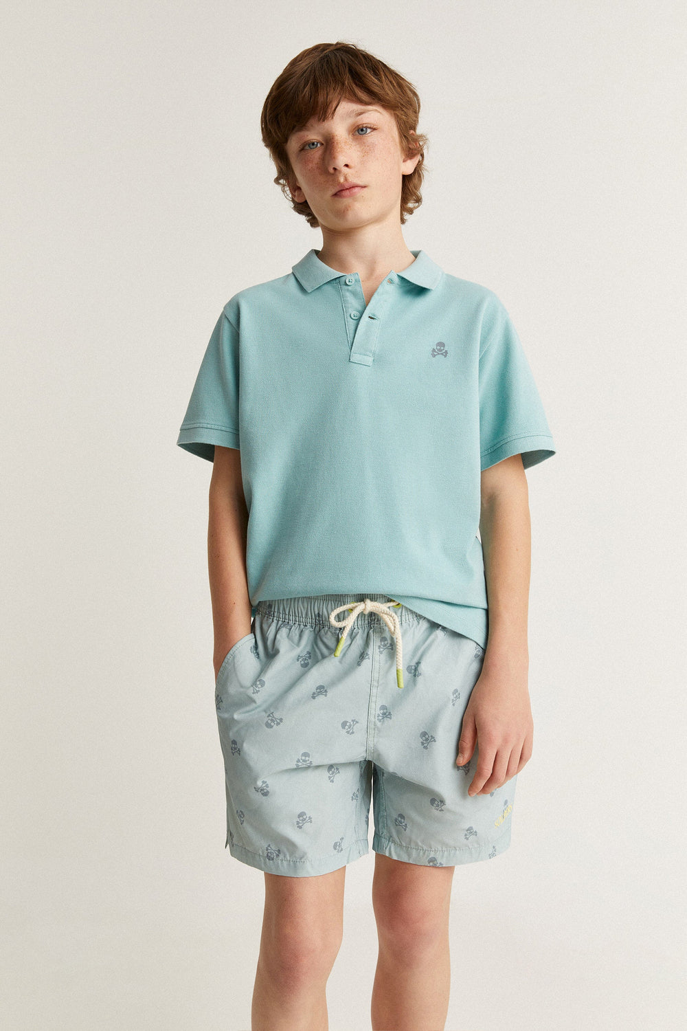 Swimming trunks with all-over skulls print.