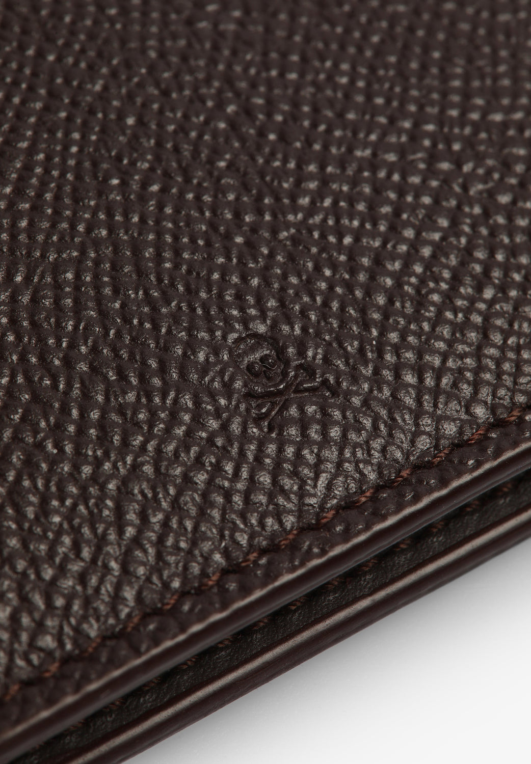 Cartera con calavera y logo grabado.