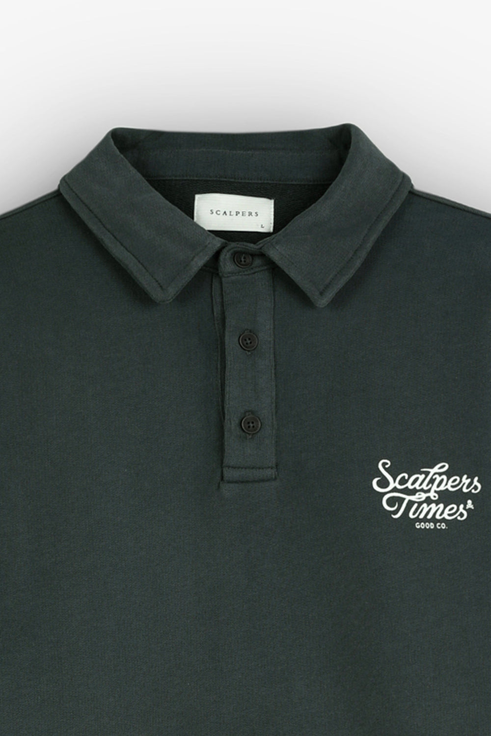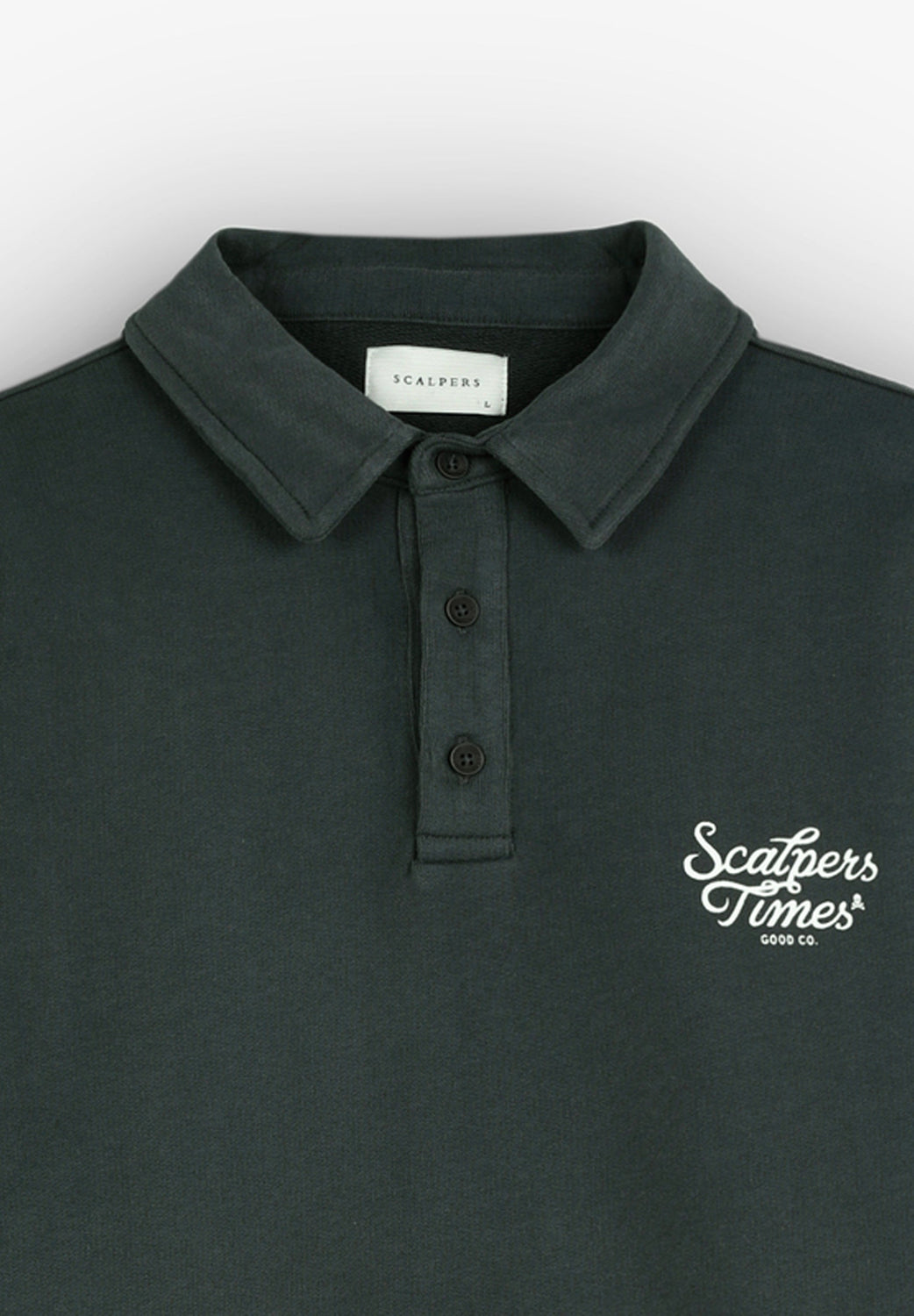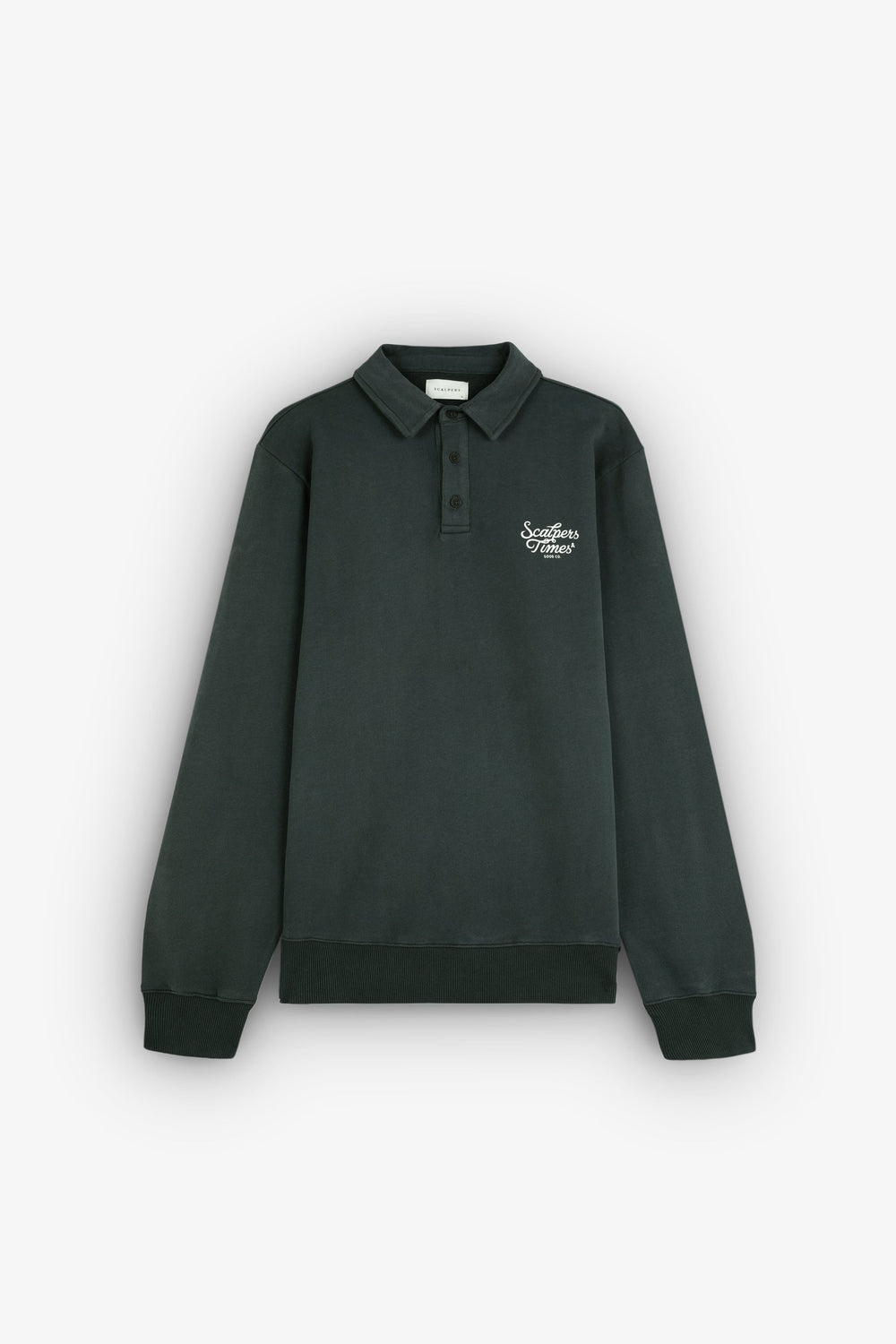 Polo style sweatshirt with contrasting logo on chest.