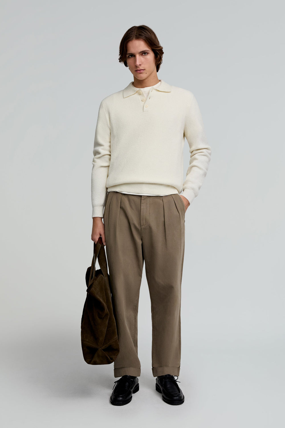 Trousers made of 100% BCI cotton. Regular fit with double darts, zip and button fastening. Side and back pockets.