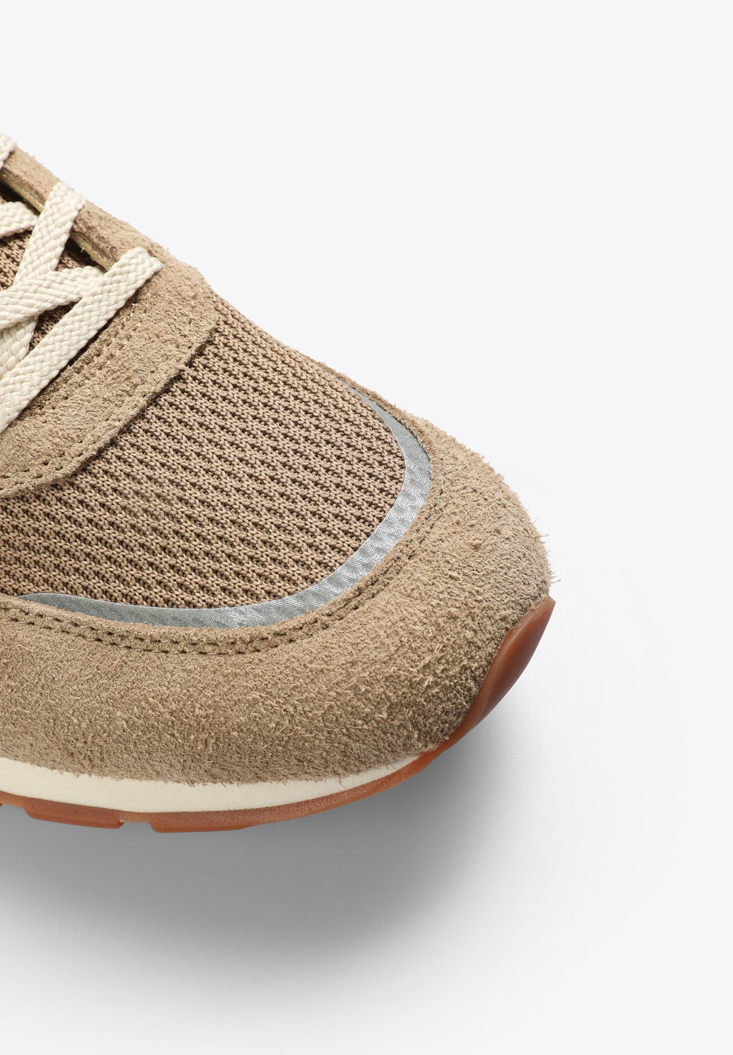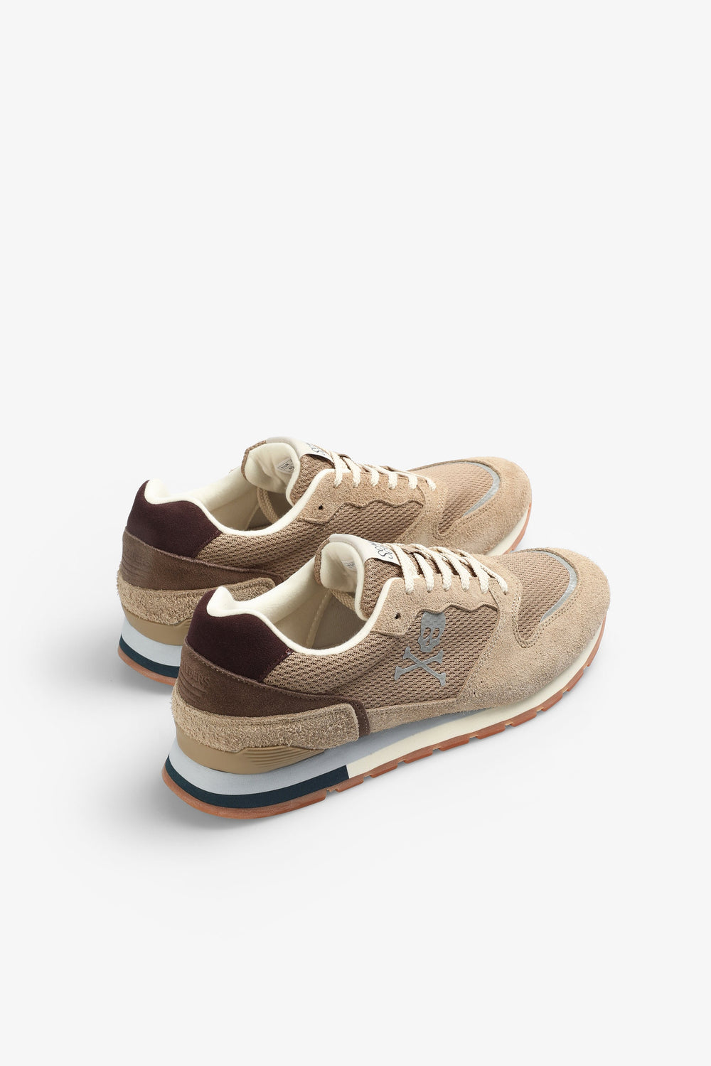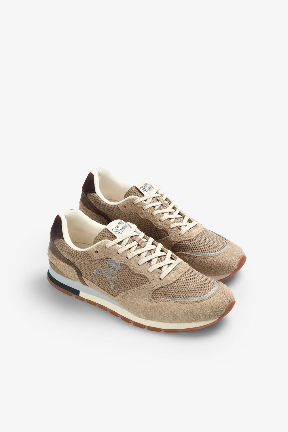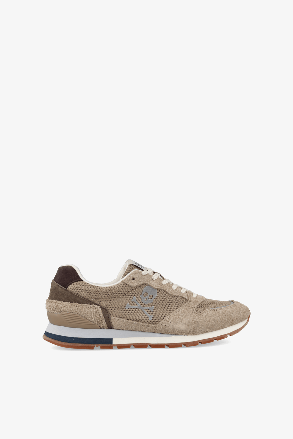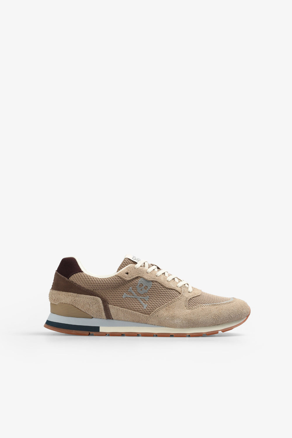 Vintage-inspired sneakers made of split suede. Lace-up fastening, EVA sole with contrast detail and contrast side skull.