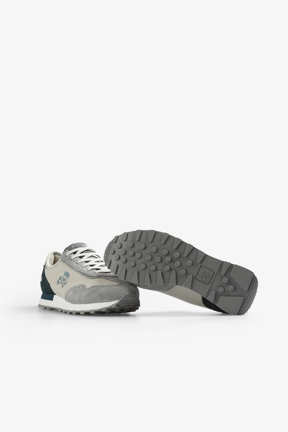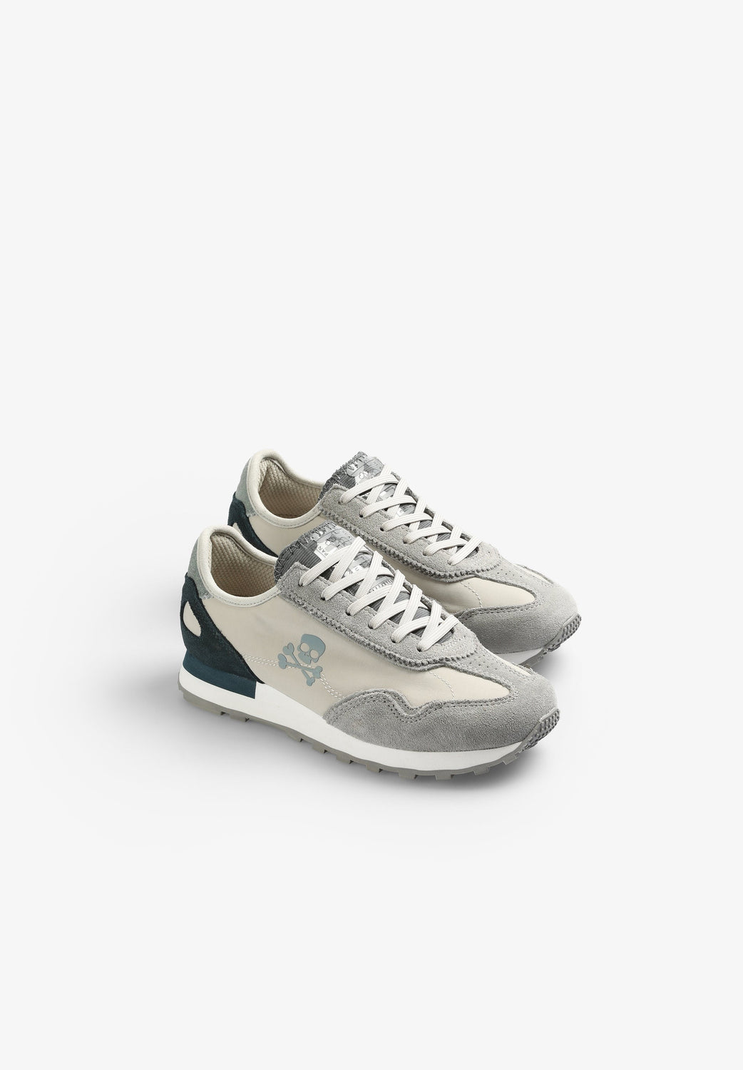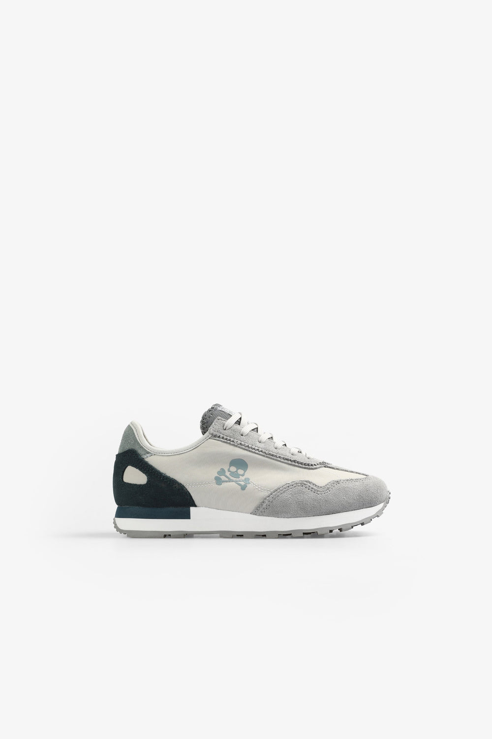 Sneakers made of split suede and leather. Lace-up fastening, rubber sole and contrast skull side print detail.