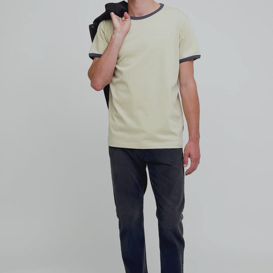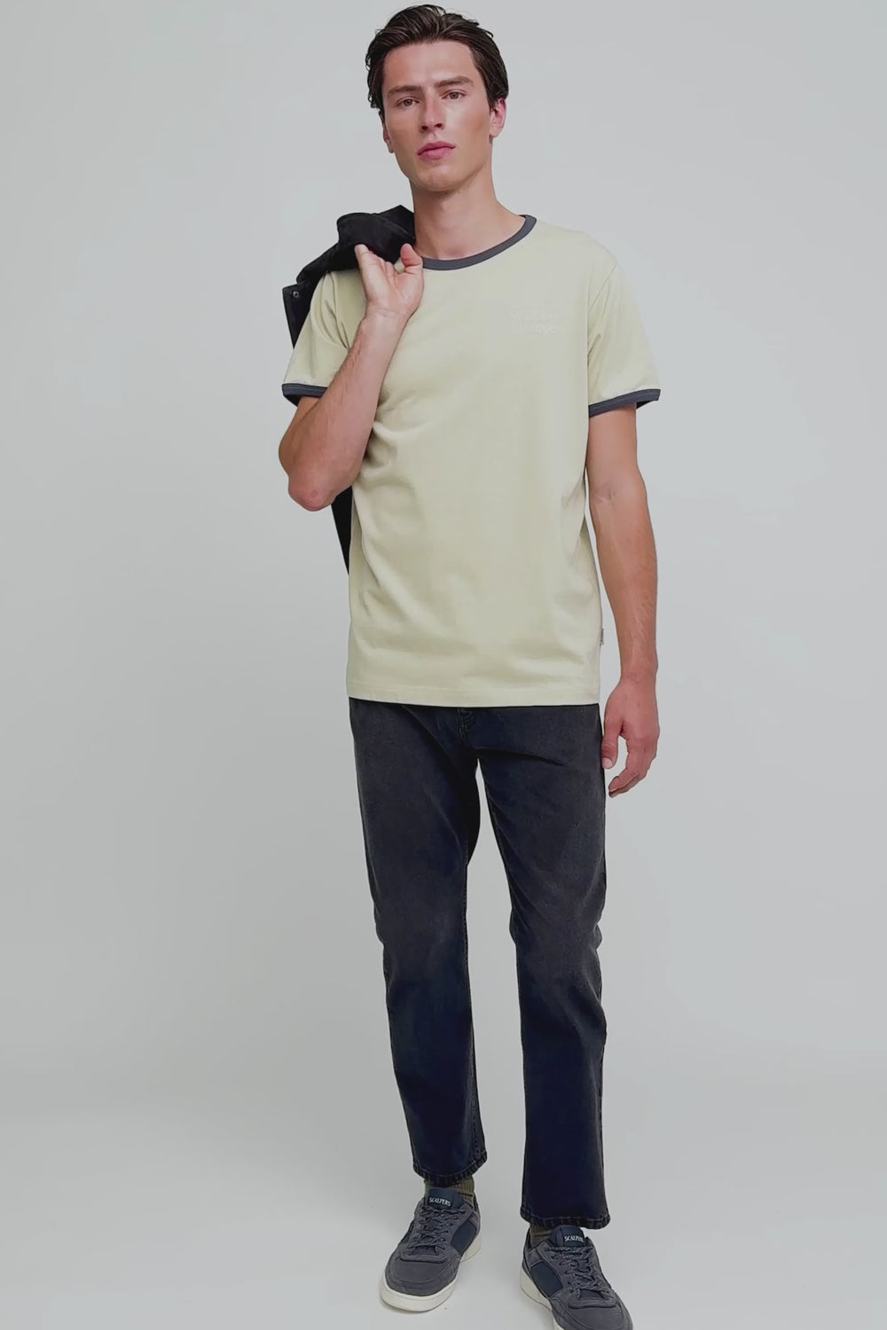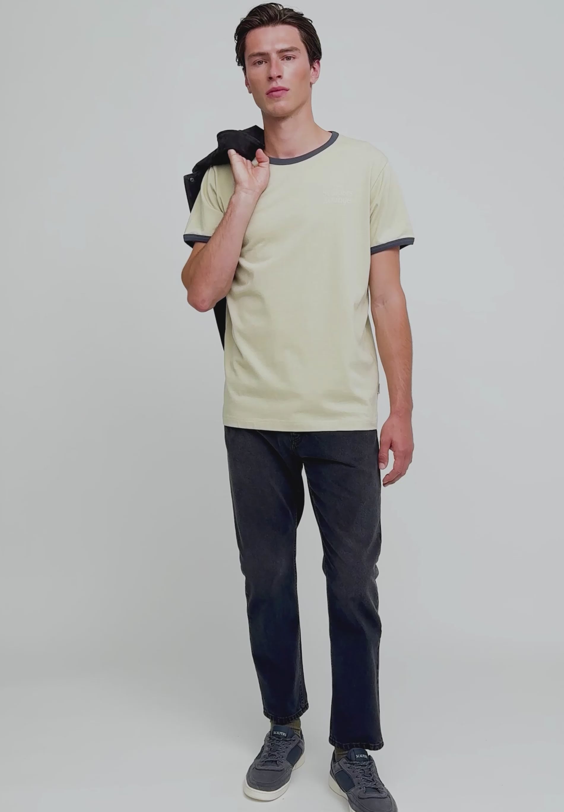 T-shirt made of 100% BCI cotton. Regular fit, round neck and short contrast sleeves. Flocked logo on chest.