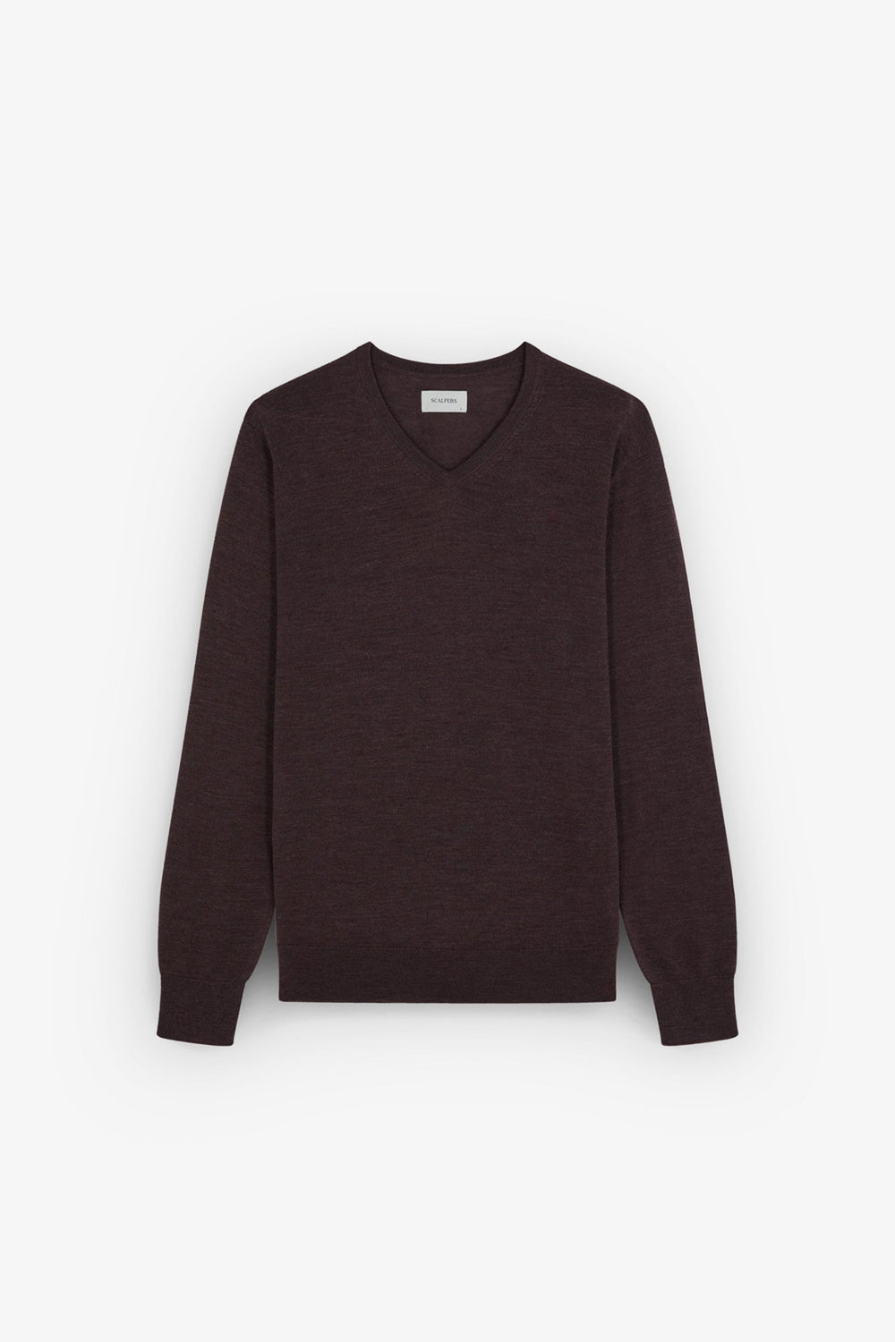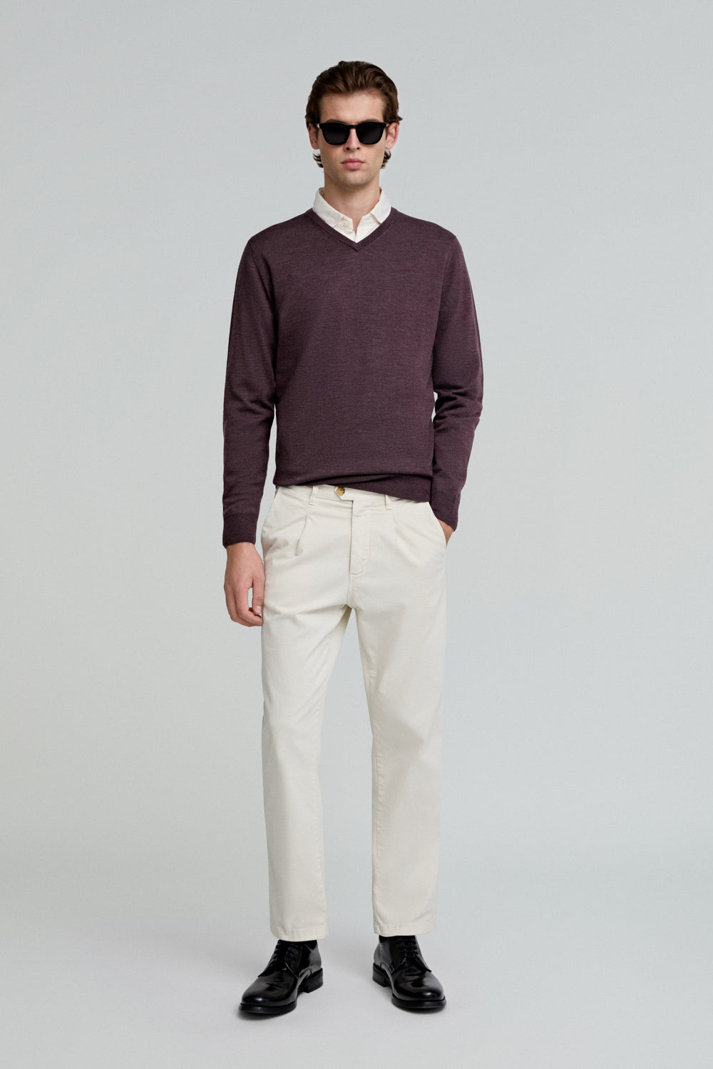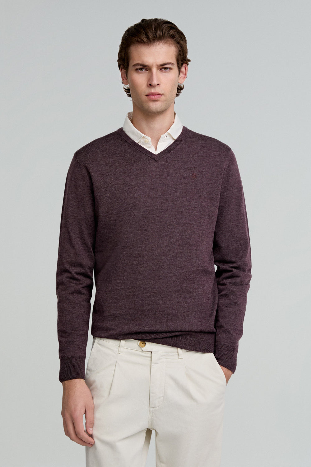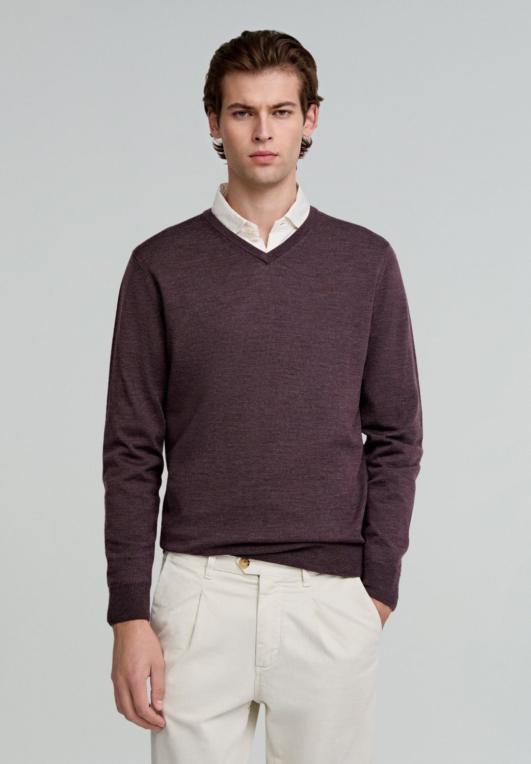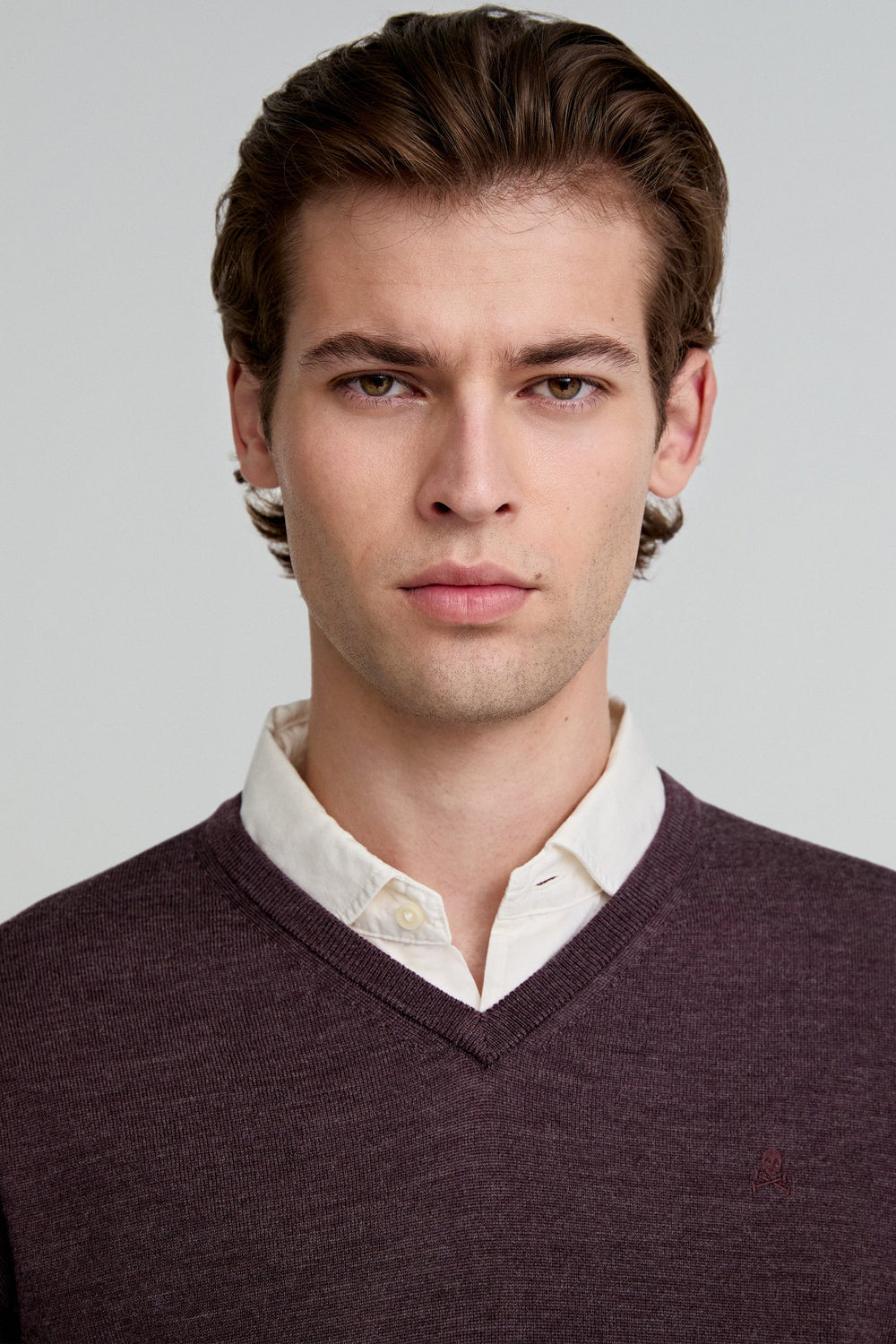 Sweater made of 100% merino wool. Regular fit, V-neck and long sleeves. Matching embroidered skull.