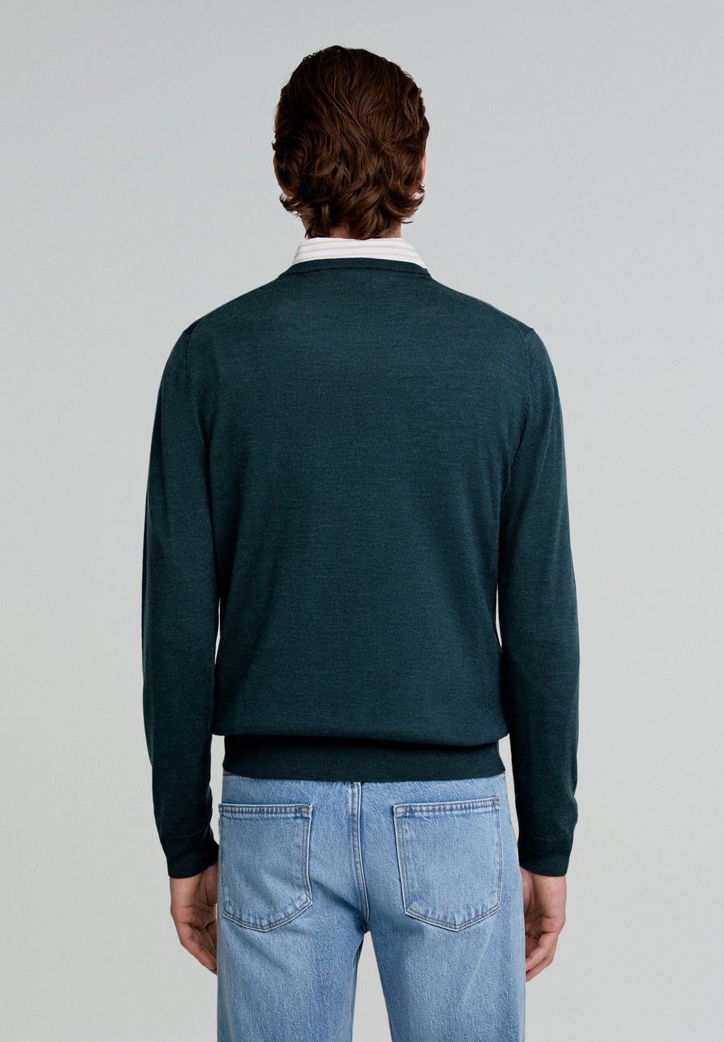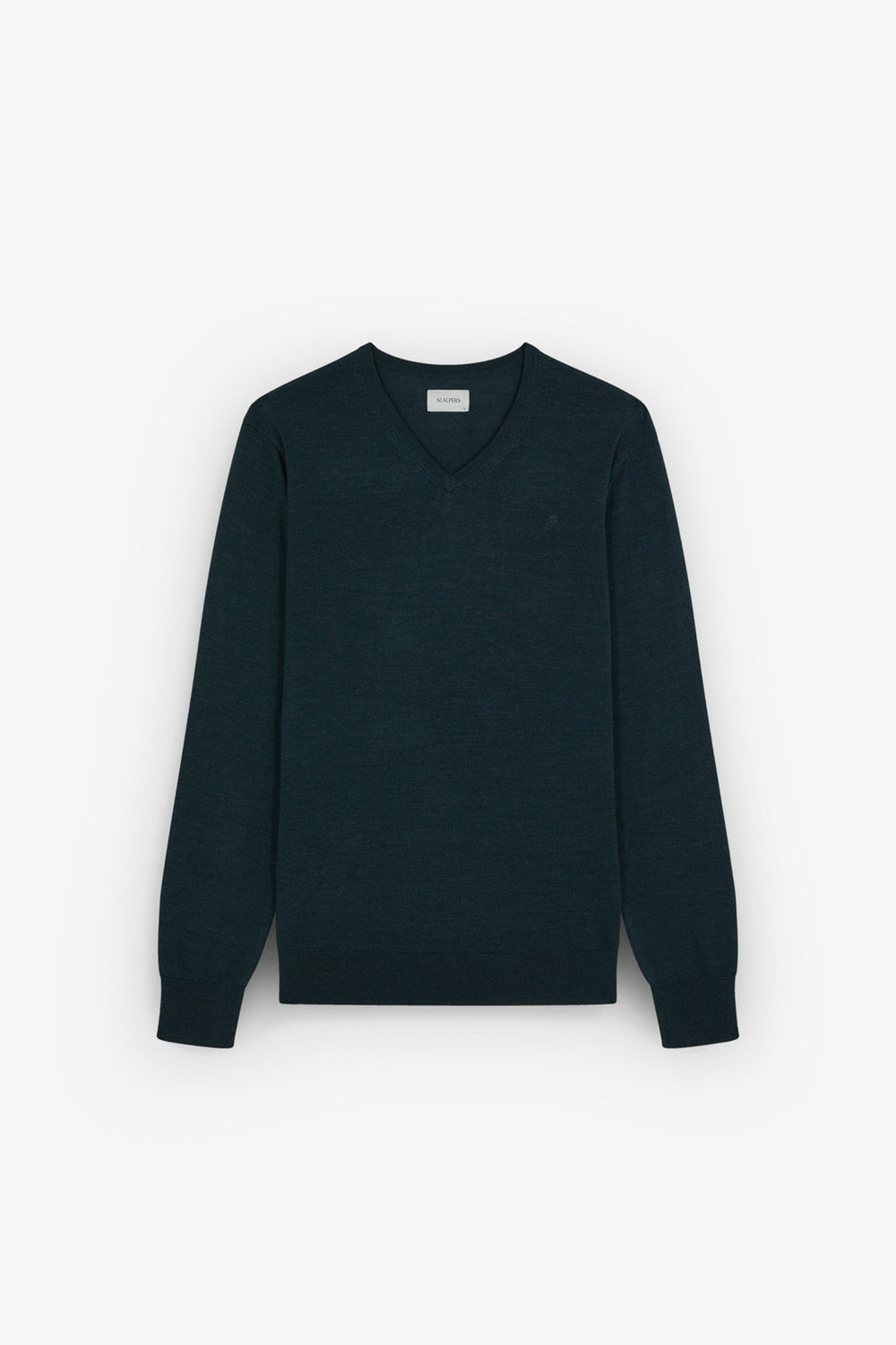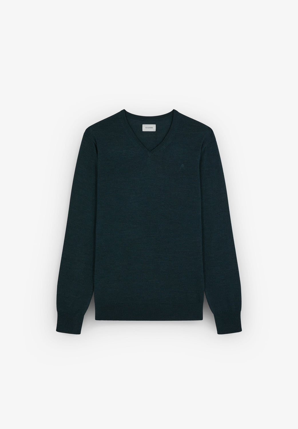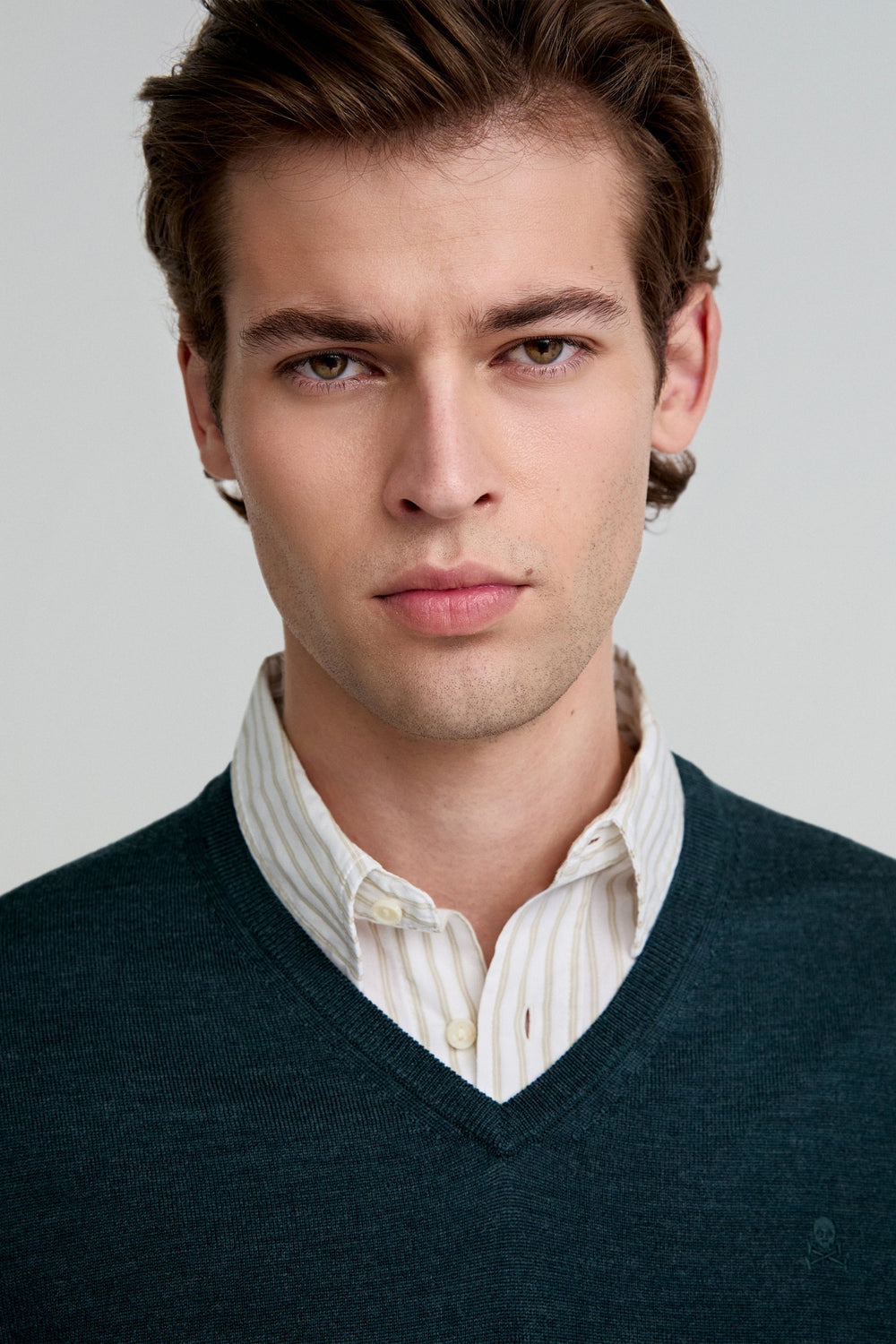 Sweater made of 100% merino wool. Regular fit, V-neck and long sleeves. Matching embroidered skull.