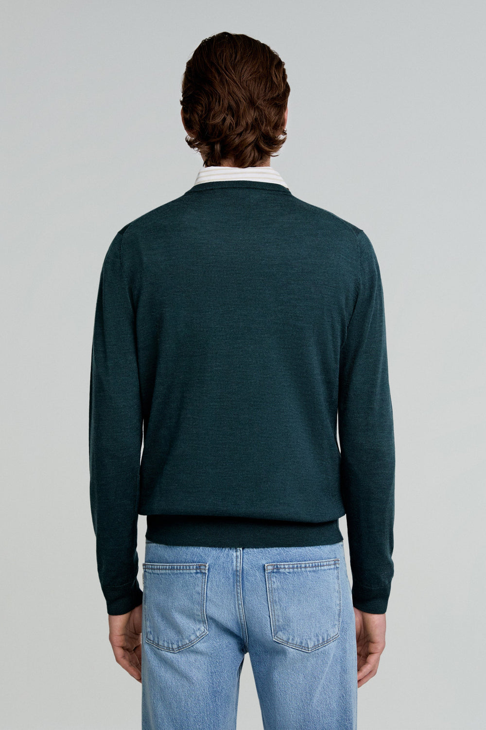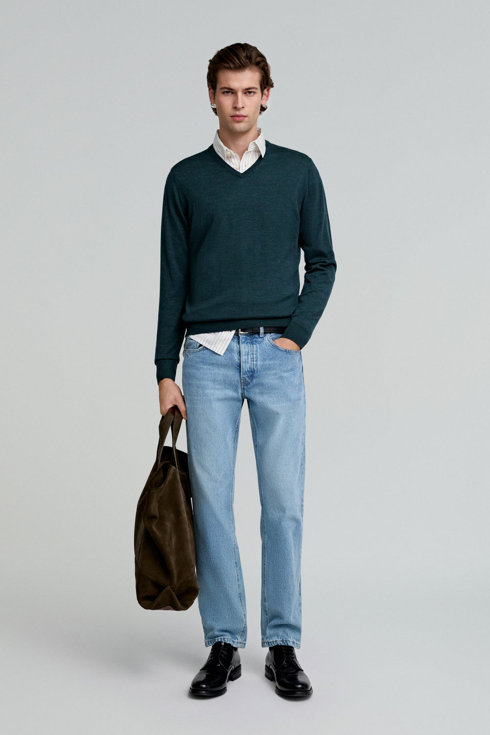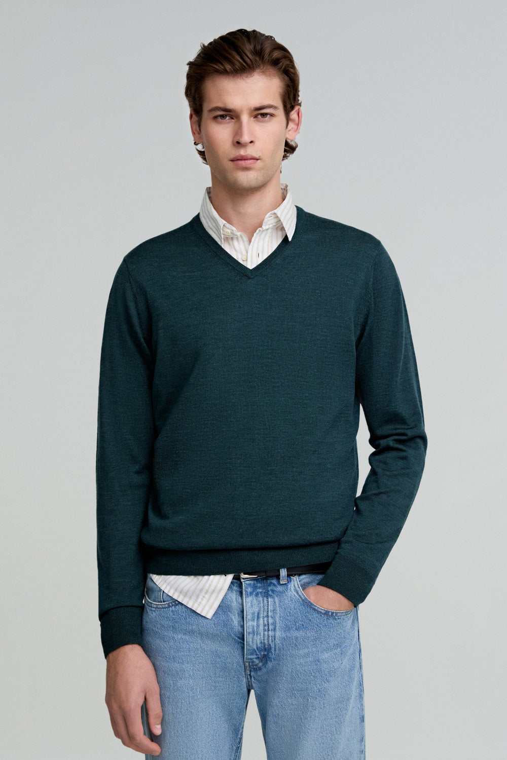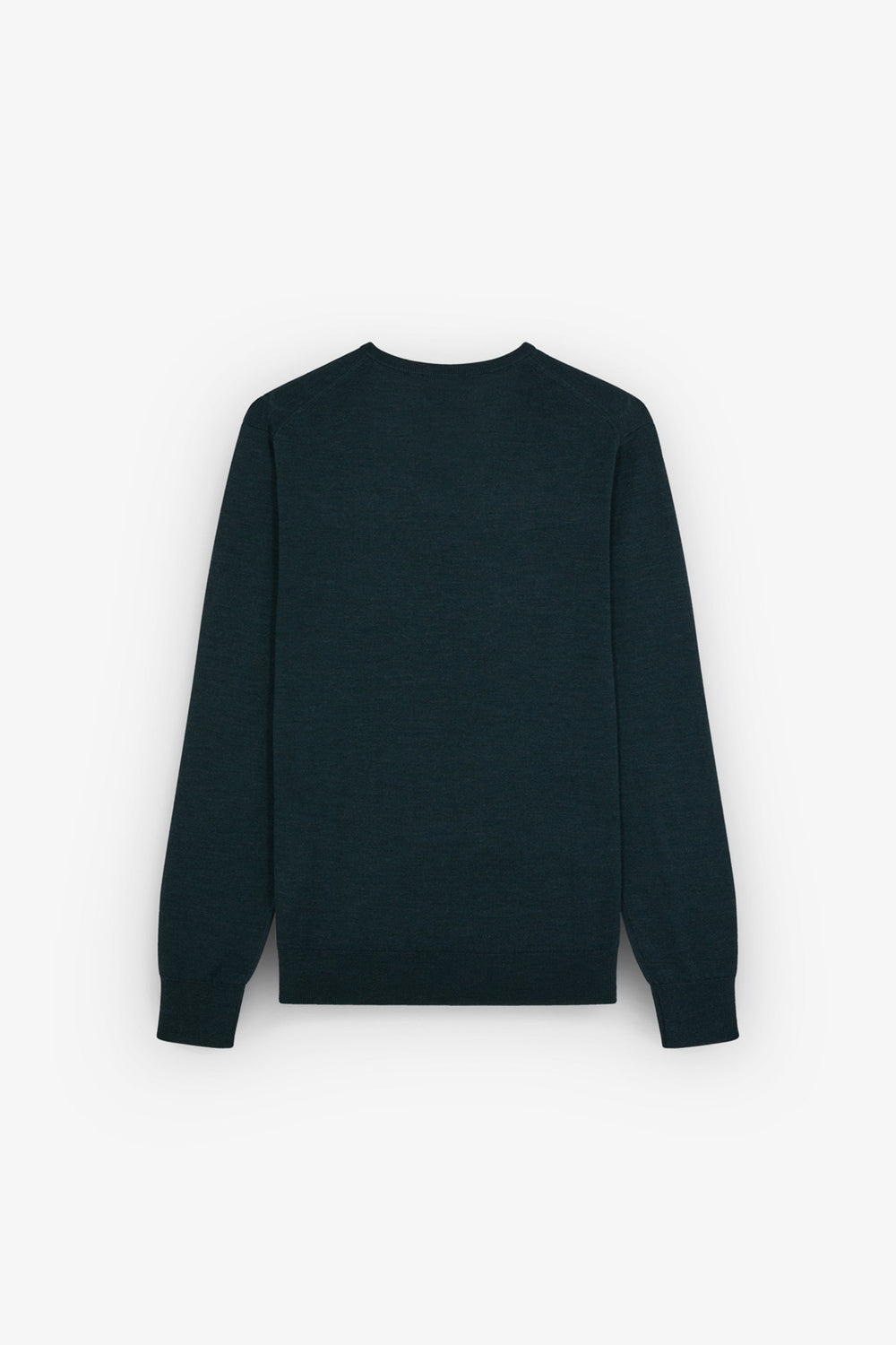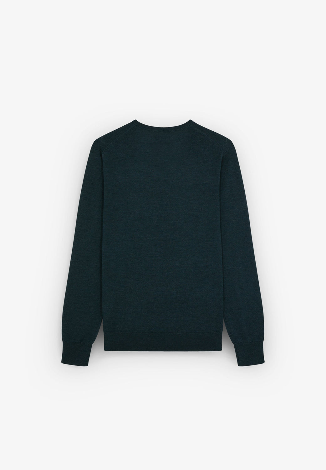 Sweater made of 100% merino wool. Regular fit, V-neck and long sleeves. Matching embroidered skull.