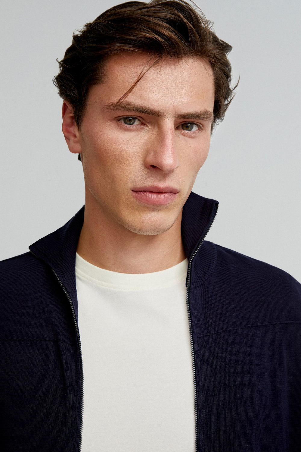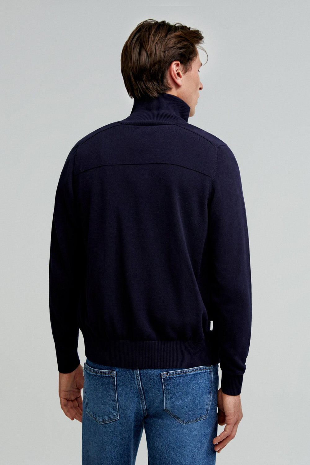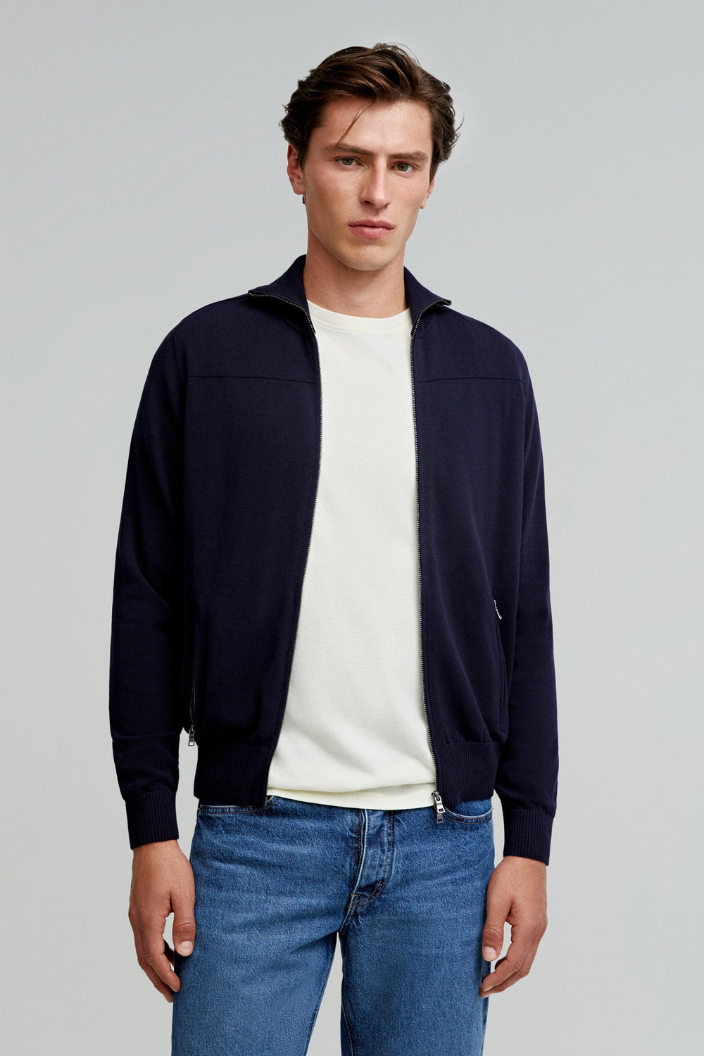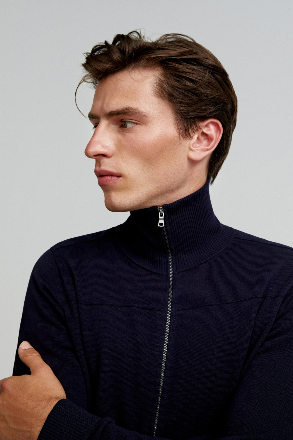 Premium knit sweater. Made of spun yarn with a fibre blend. Regular fit. High collar. Zip fastening and zipped pockets. Long sleeves. Ribbed trim.