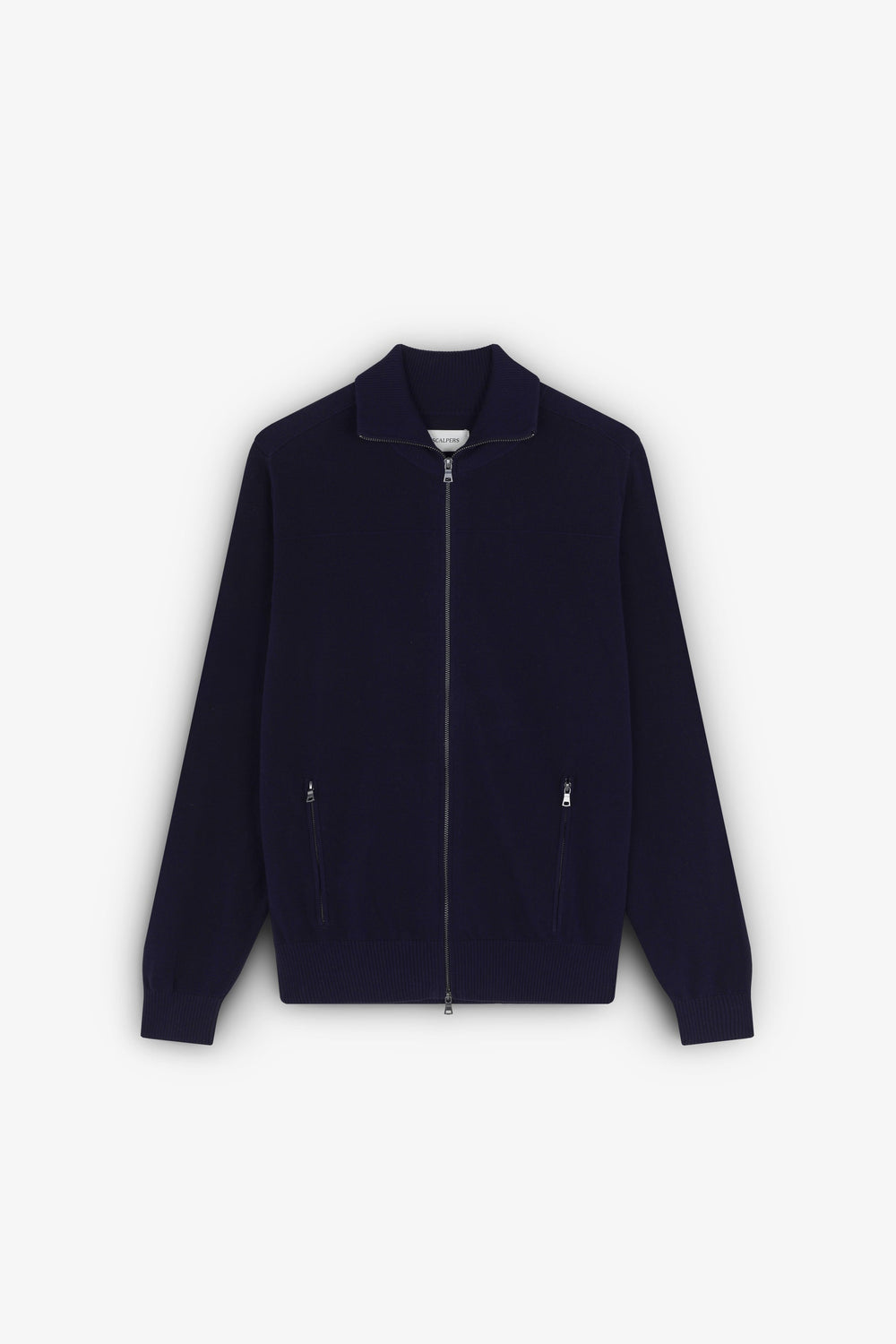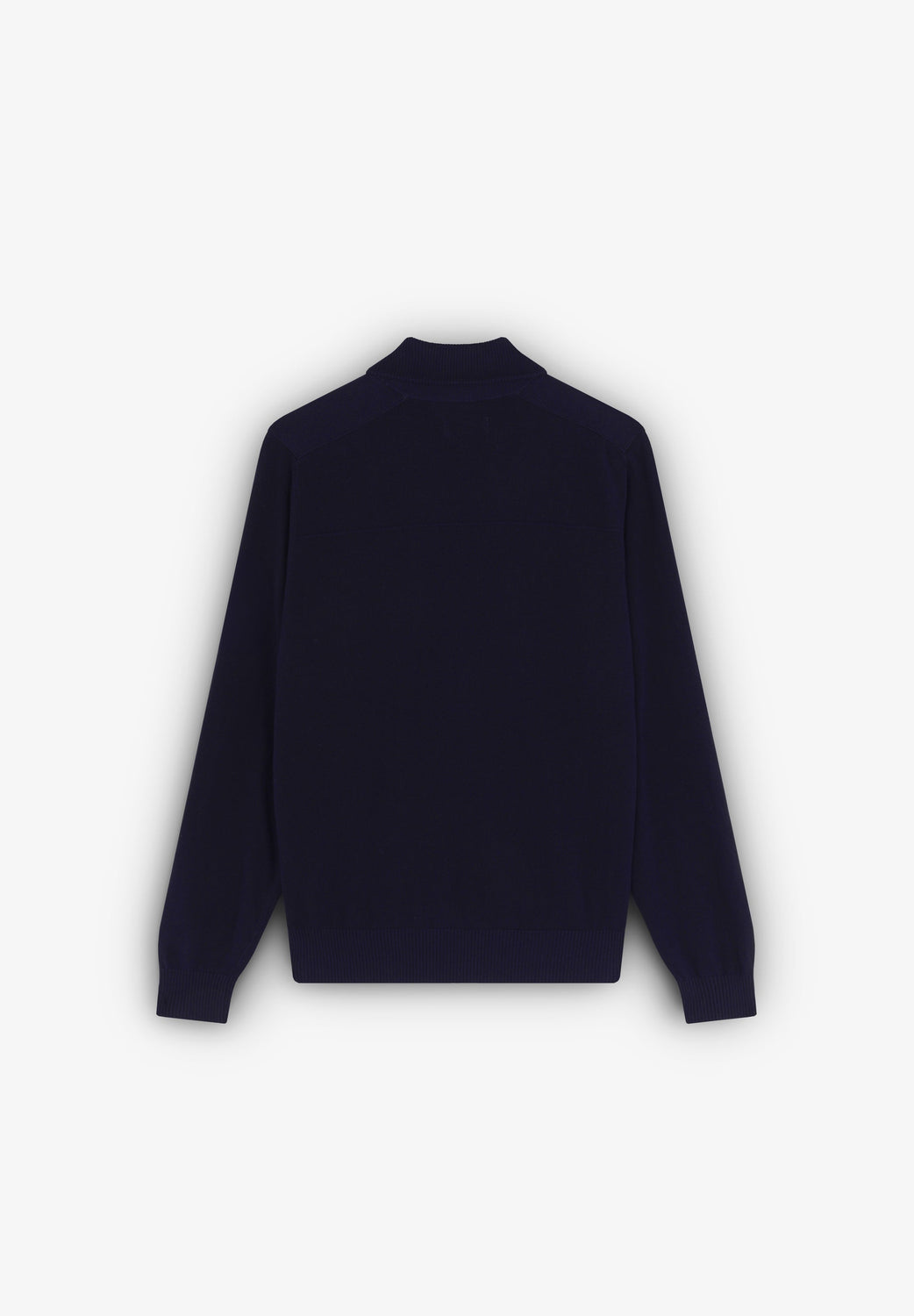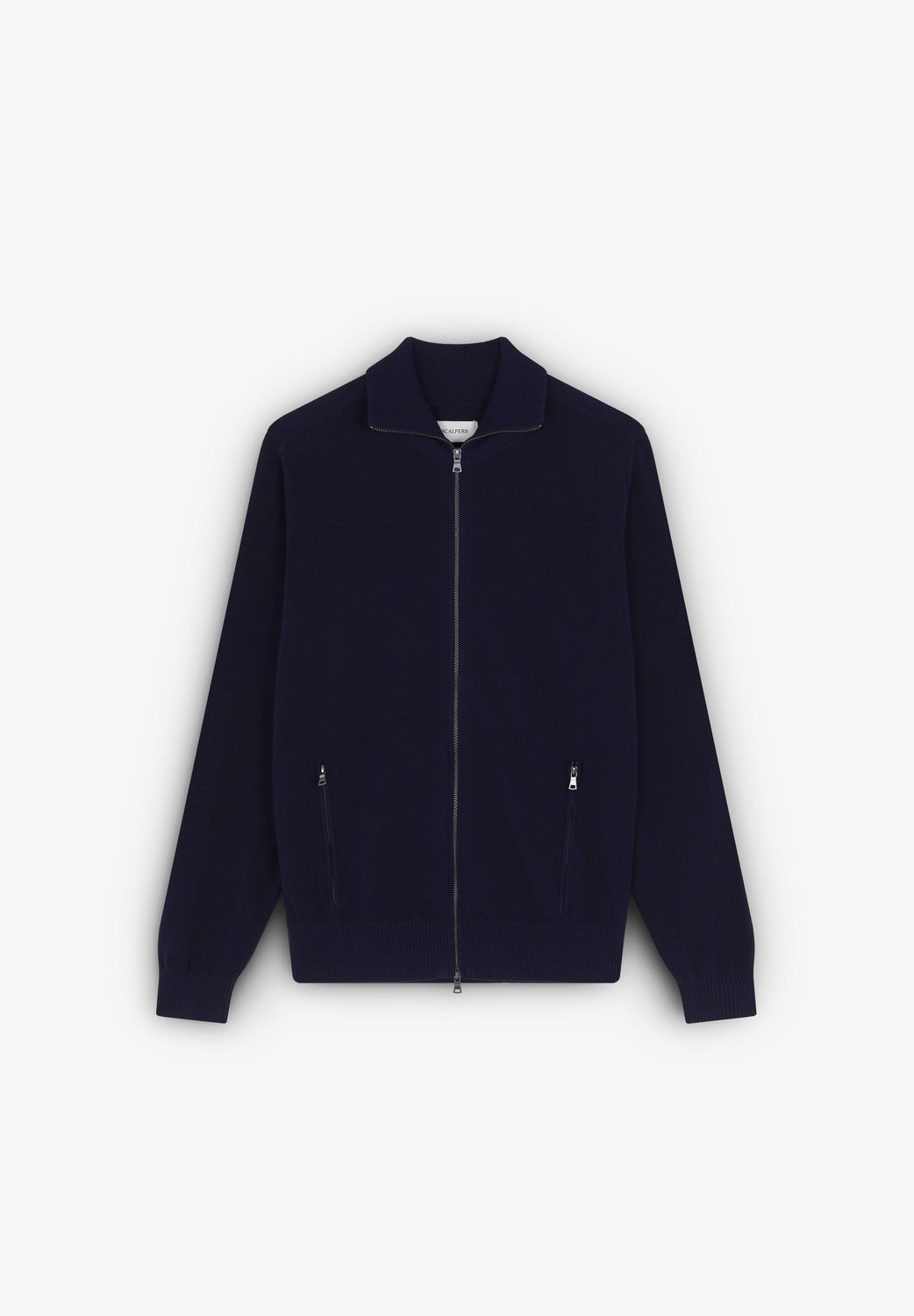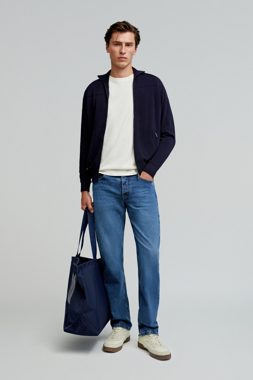 Premium knit sweater. Made of spun yarn with a fibre blend. Regular fit. High collar. Zip fastening and zipped pockets. Long sleeves. Ribbed trim.