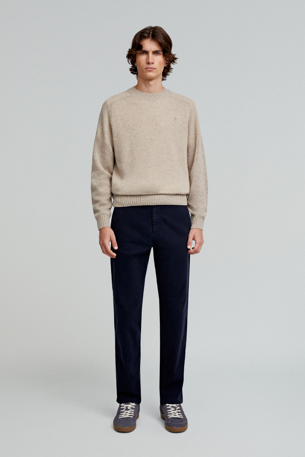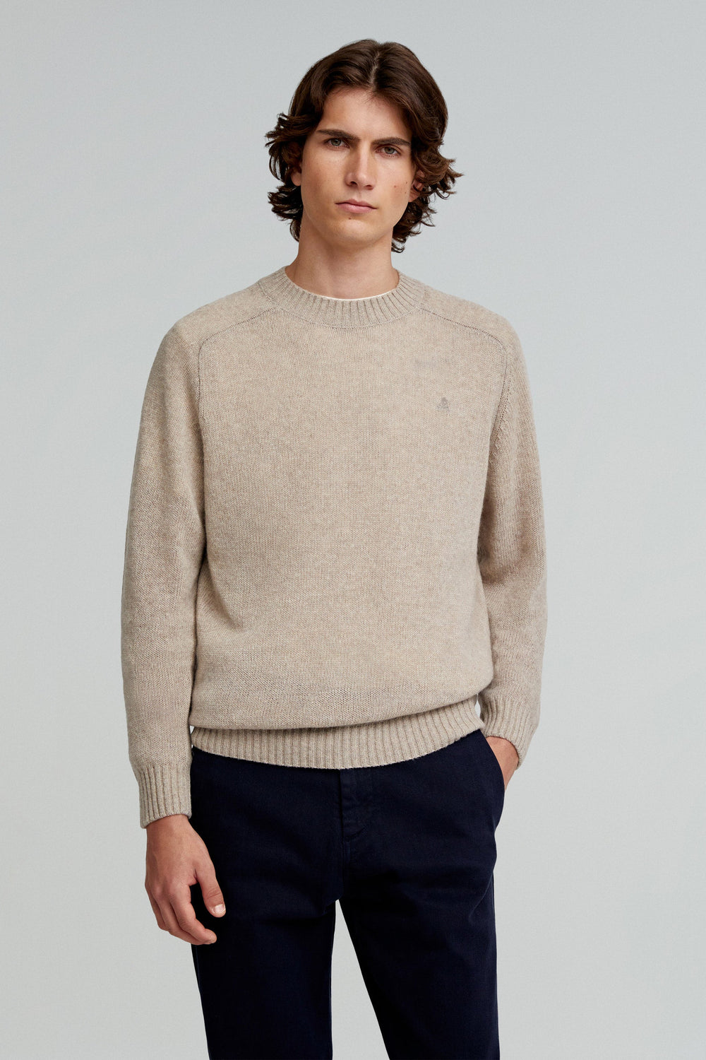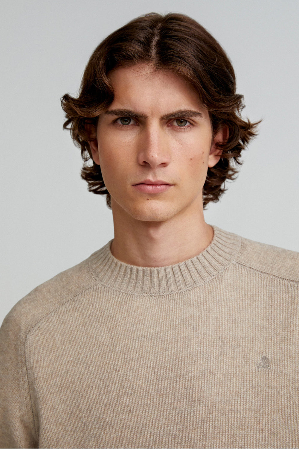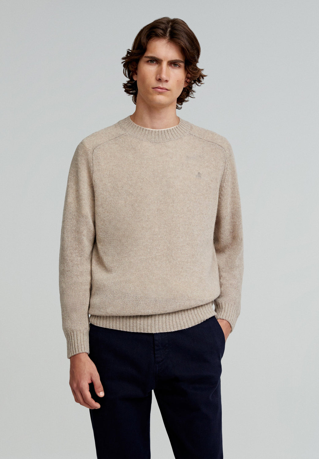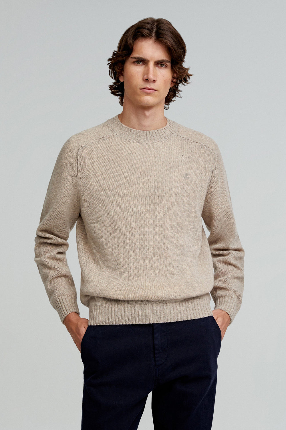 Sweater made of a recycled wool blend. Regular fit, ribbed neck and raglan long sleeves. Matching embroidered skull.