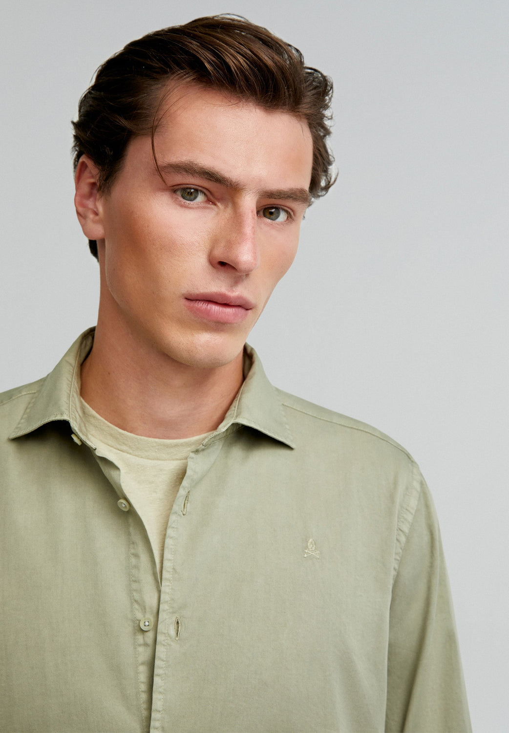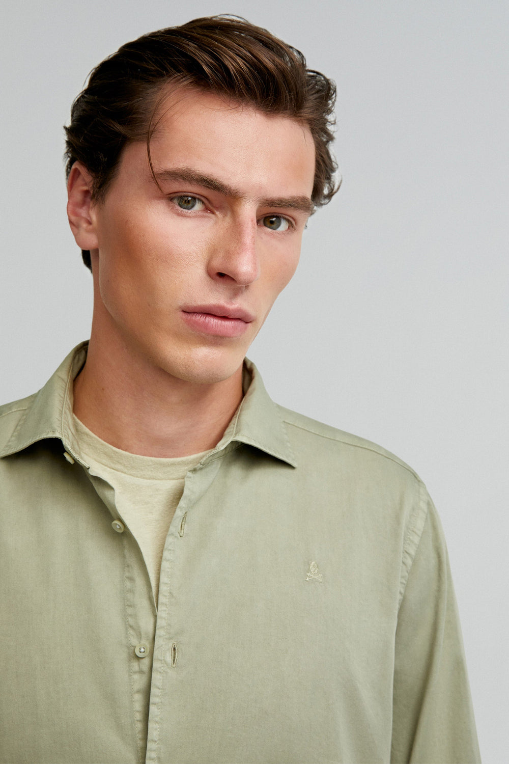 Shirt made of 100% cotton. Regular fit, cutaway collar and button fastening. Long sleeves with buttoned cuffs and matching embroidered skull.