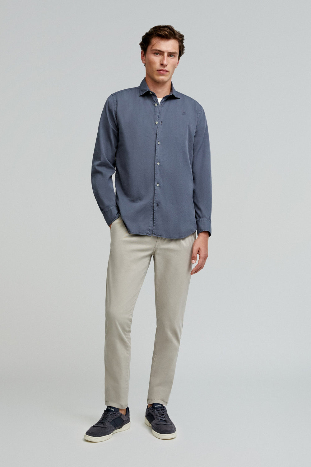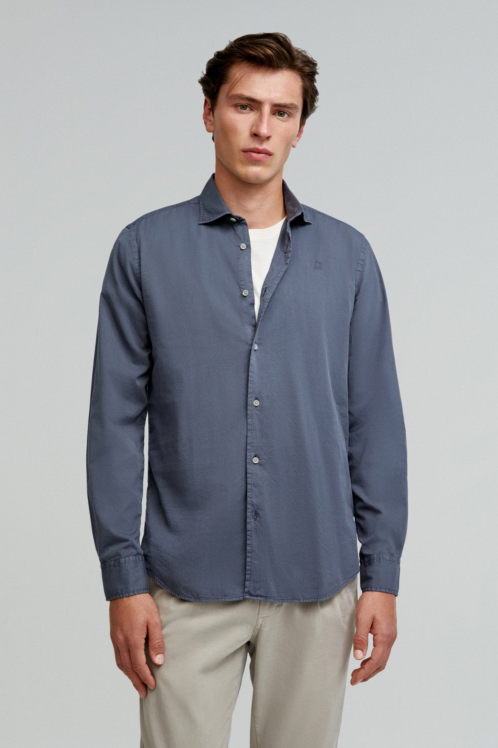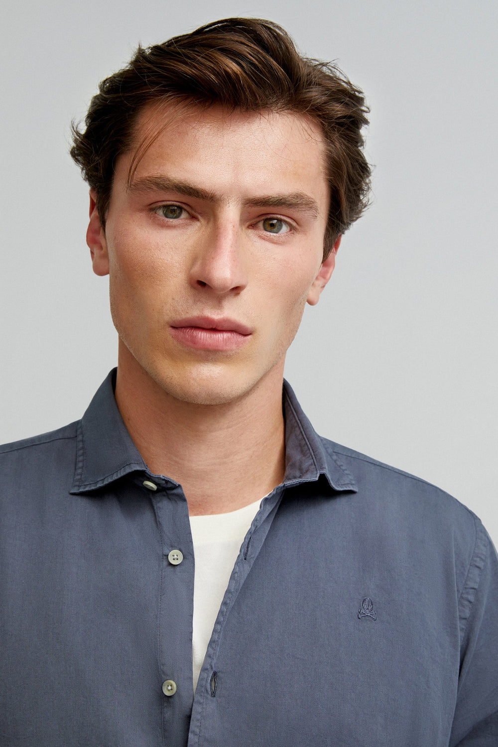 Shirt made of 100% cotton. Regular fit, cutaway collar and button fastening. Long sleeves with buttoned cuffs and matching embroidered skull.