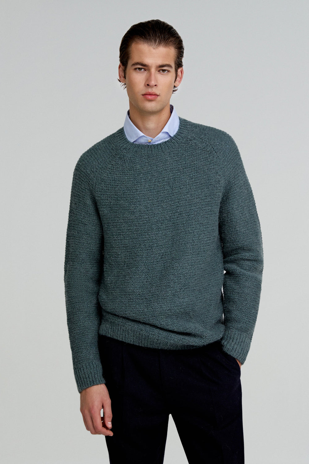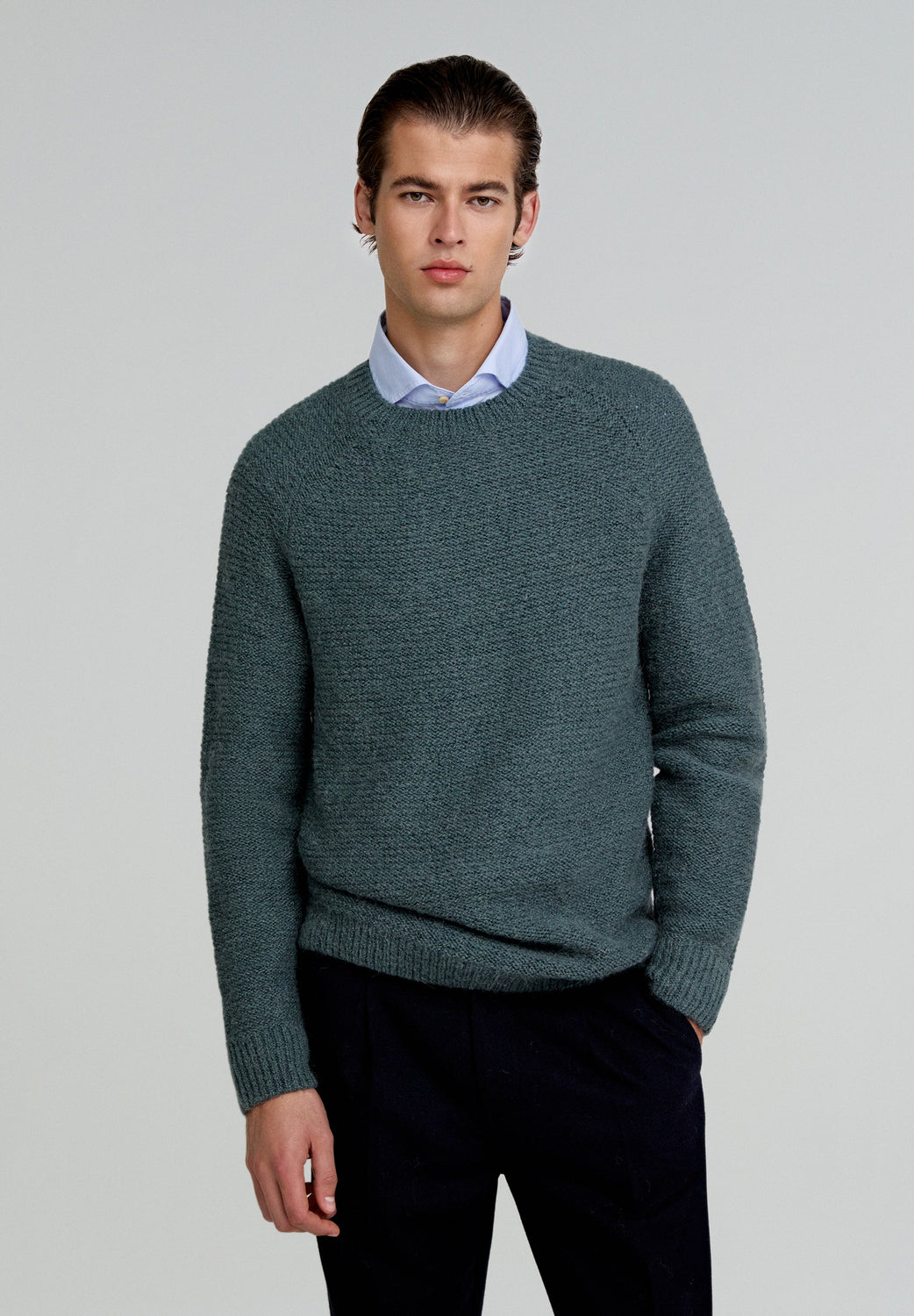 Knit sweater made of an alpaca and wool blend. Regular fit, round neck and long raglan sleeves.