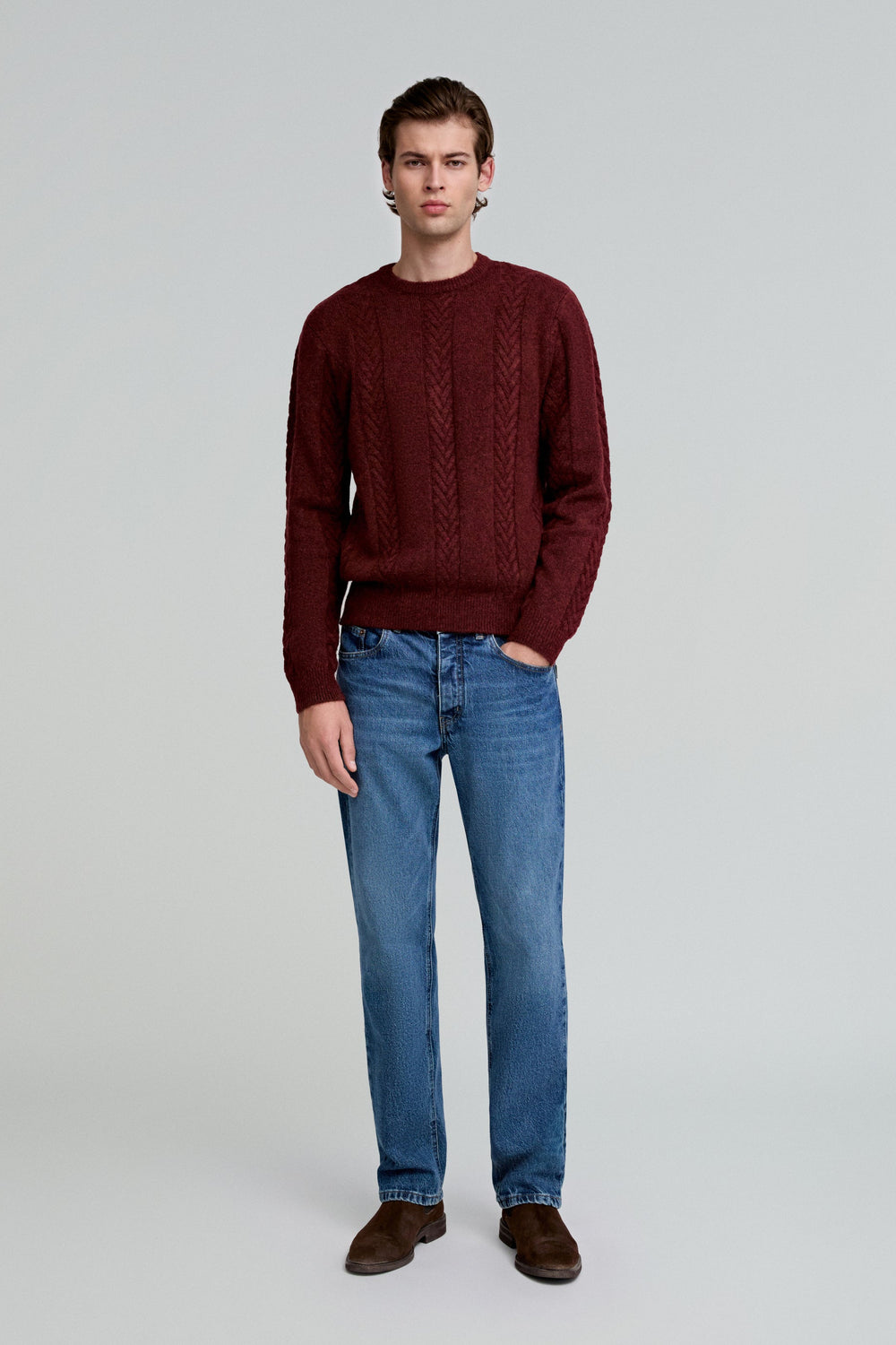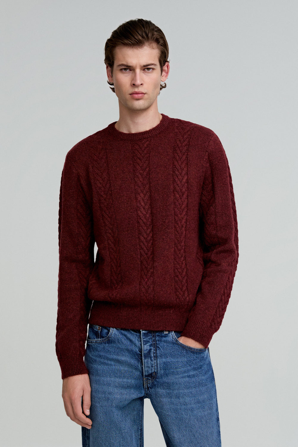 Sweater made of an alpaca blend. Regular fit, round neck and long sleeves. Cable-knit details.