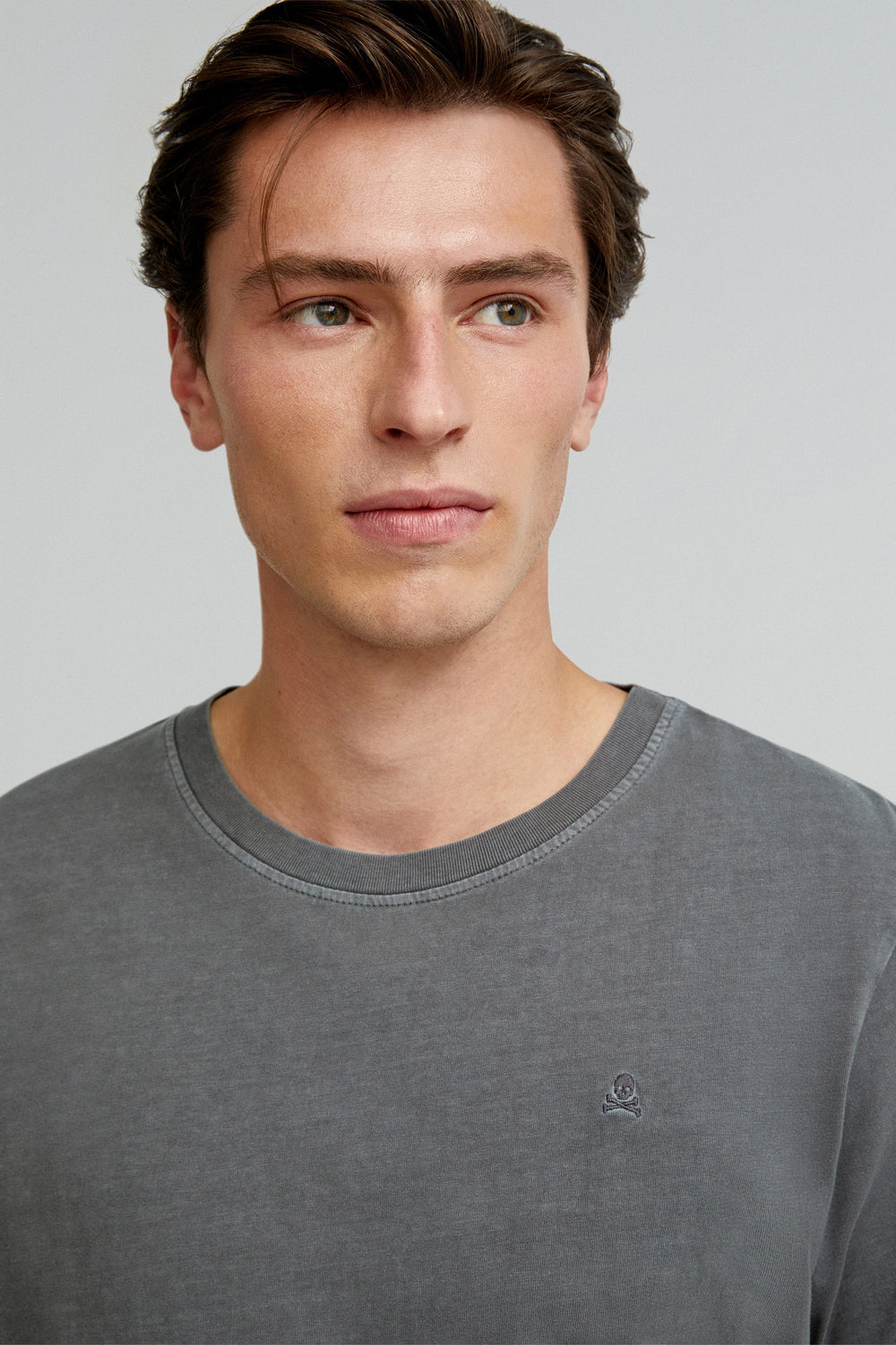 Faded T-shirt made of 100% BCI cotton. Regular fit, round neck and short sleeves. Matching embroidered skull detail.