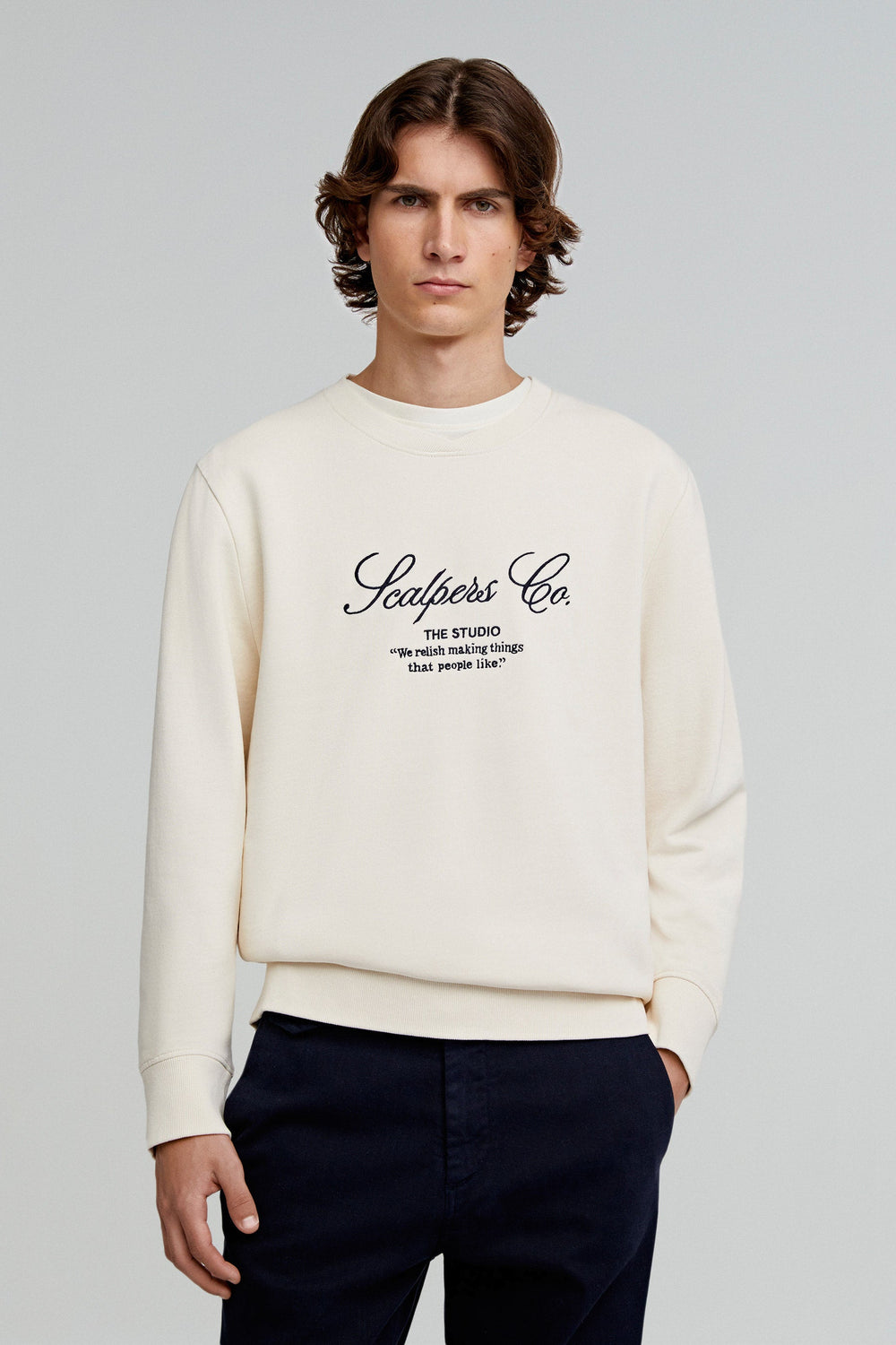 Sweatshirt made of 100% organic cotton. Regular fit, round neck with crossed detail and long sleeves. Front logo