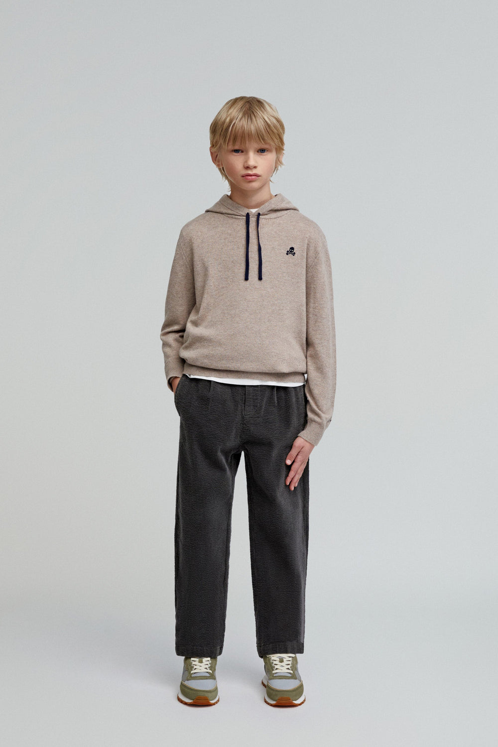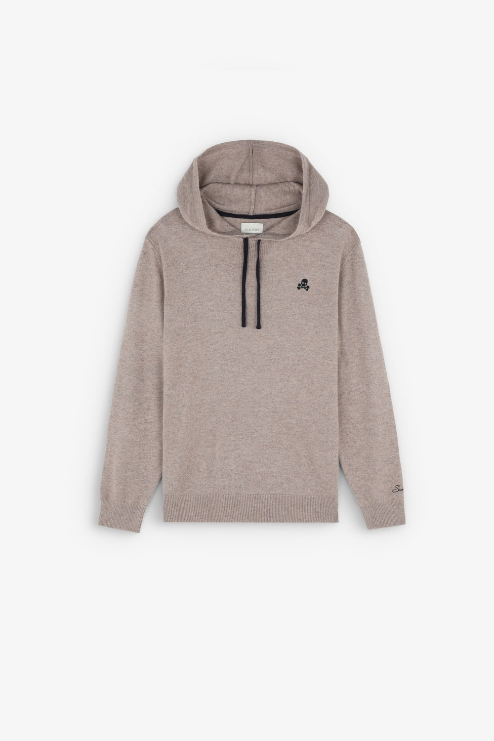 Sweater with contrast embroidered skull detail on the chest. Made of a wool blend. Regular fit. Collar with an adjustable drawstring hood. Long sleeves. Ribbed trim.