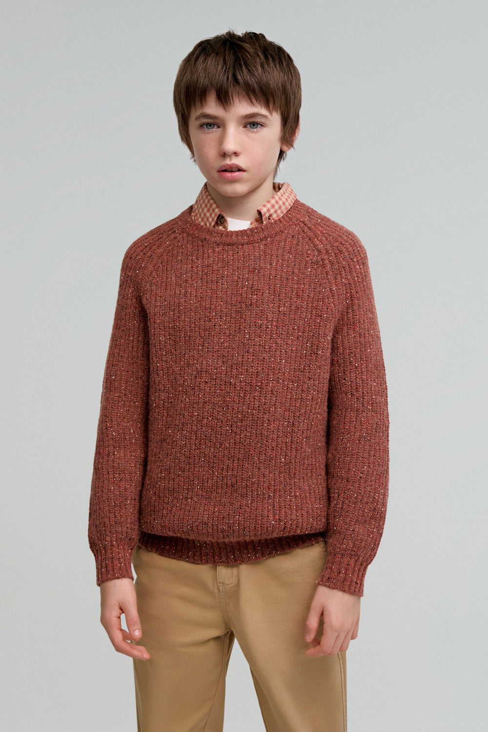 Sweater made of a wool blend. Regular Fit, round neck and raglan long sleeves. Polka dot colour detail.