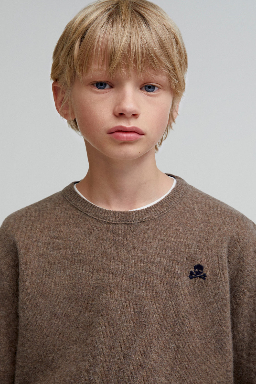 Sweater with elbow patch detail. Made of a wool blend. Regular fit. Round collar. Long sleeves. Contrast skull detail.