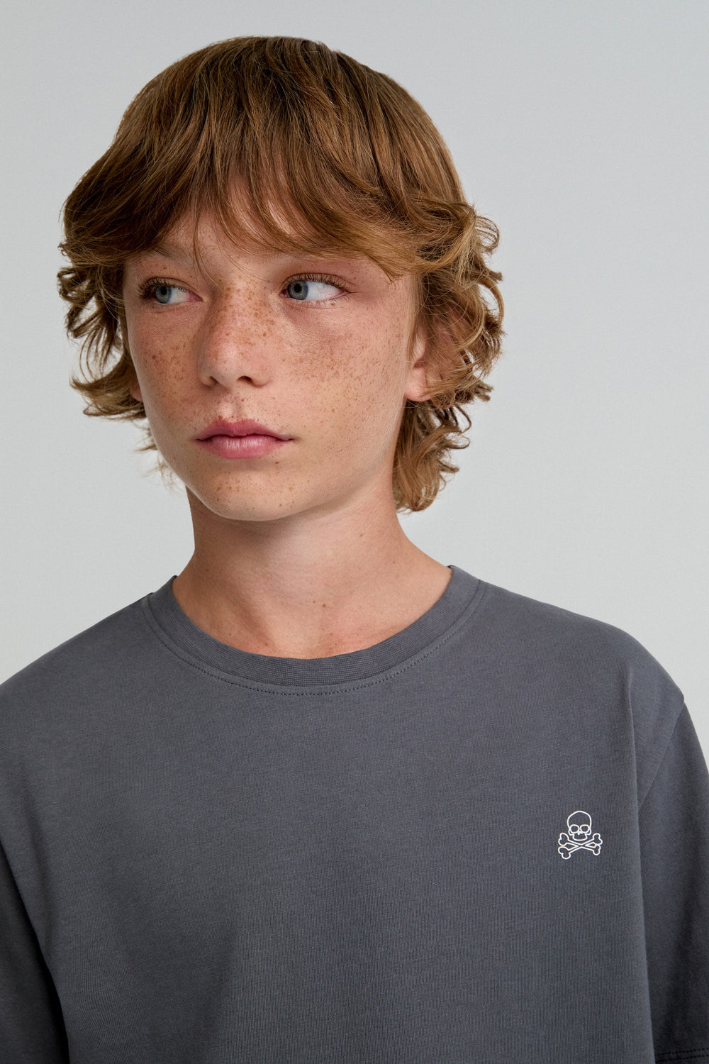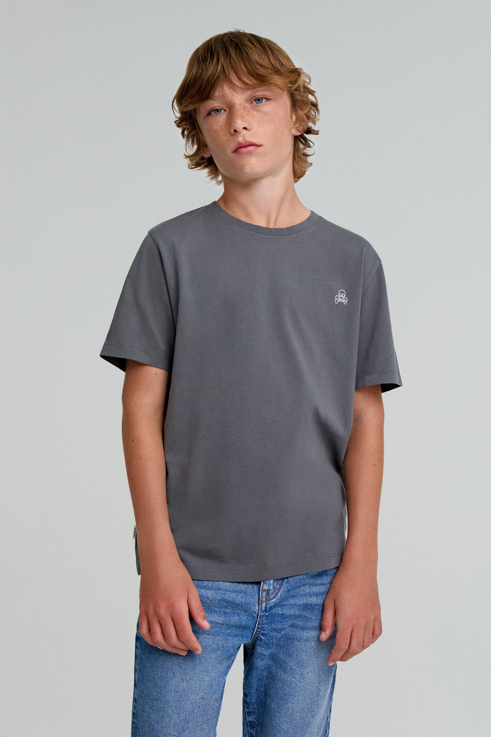 T-shirt with back print. Round neck. Made of 100% BCI cotton. Regular fit. Short sleeves.