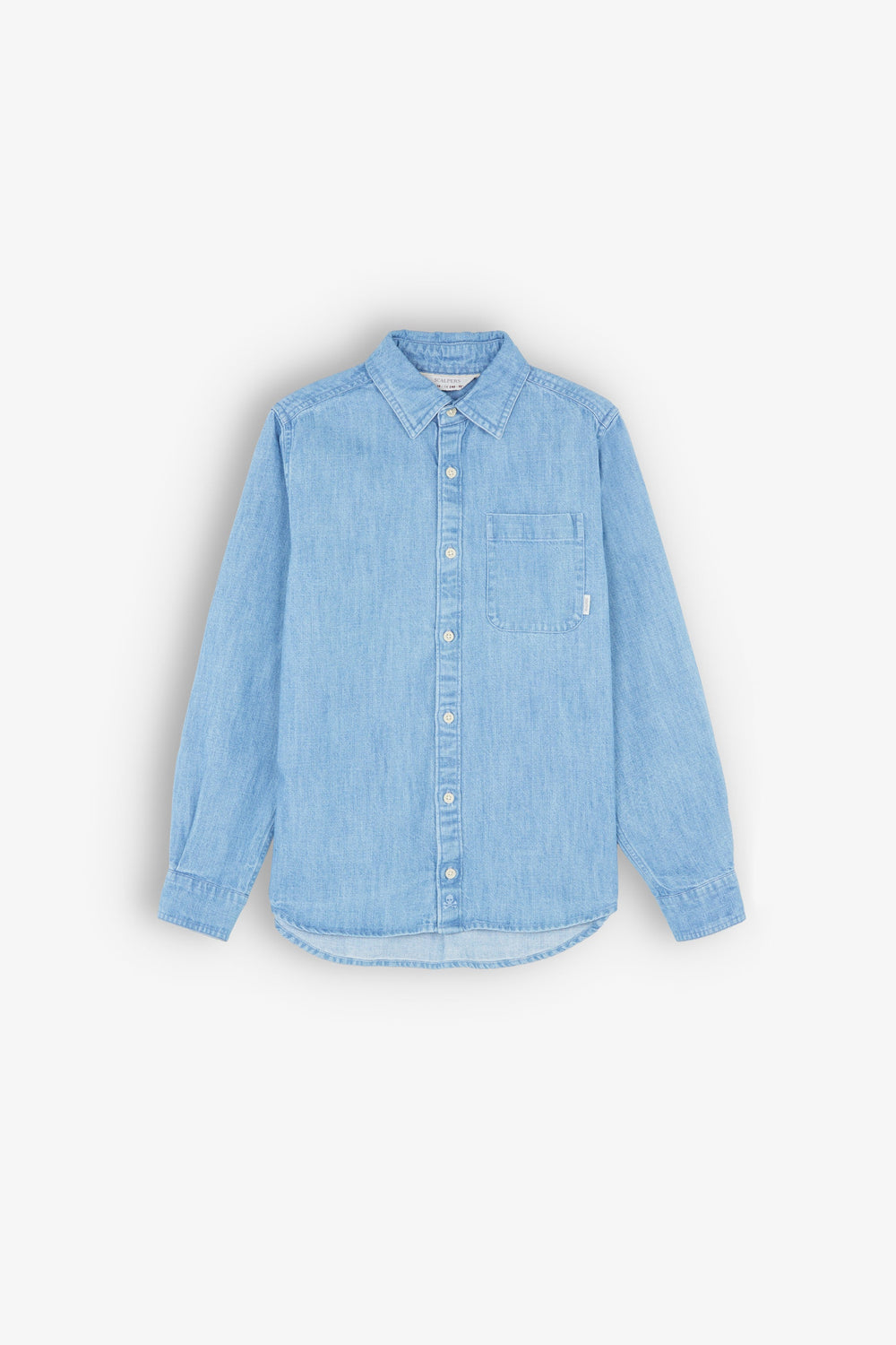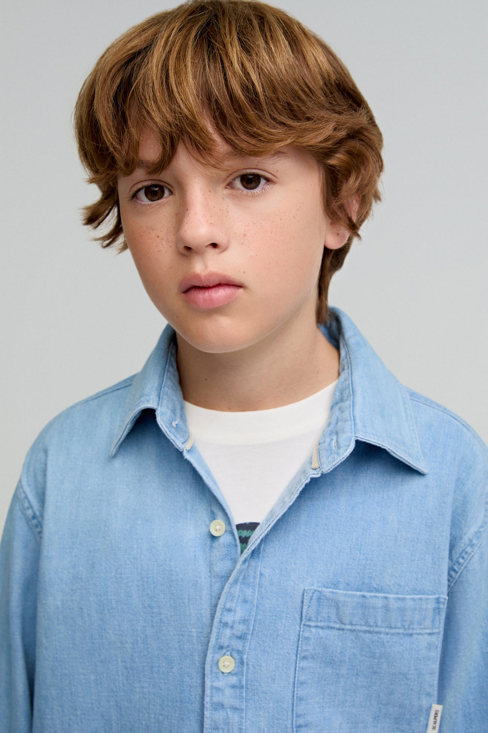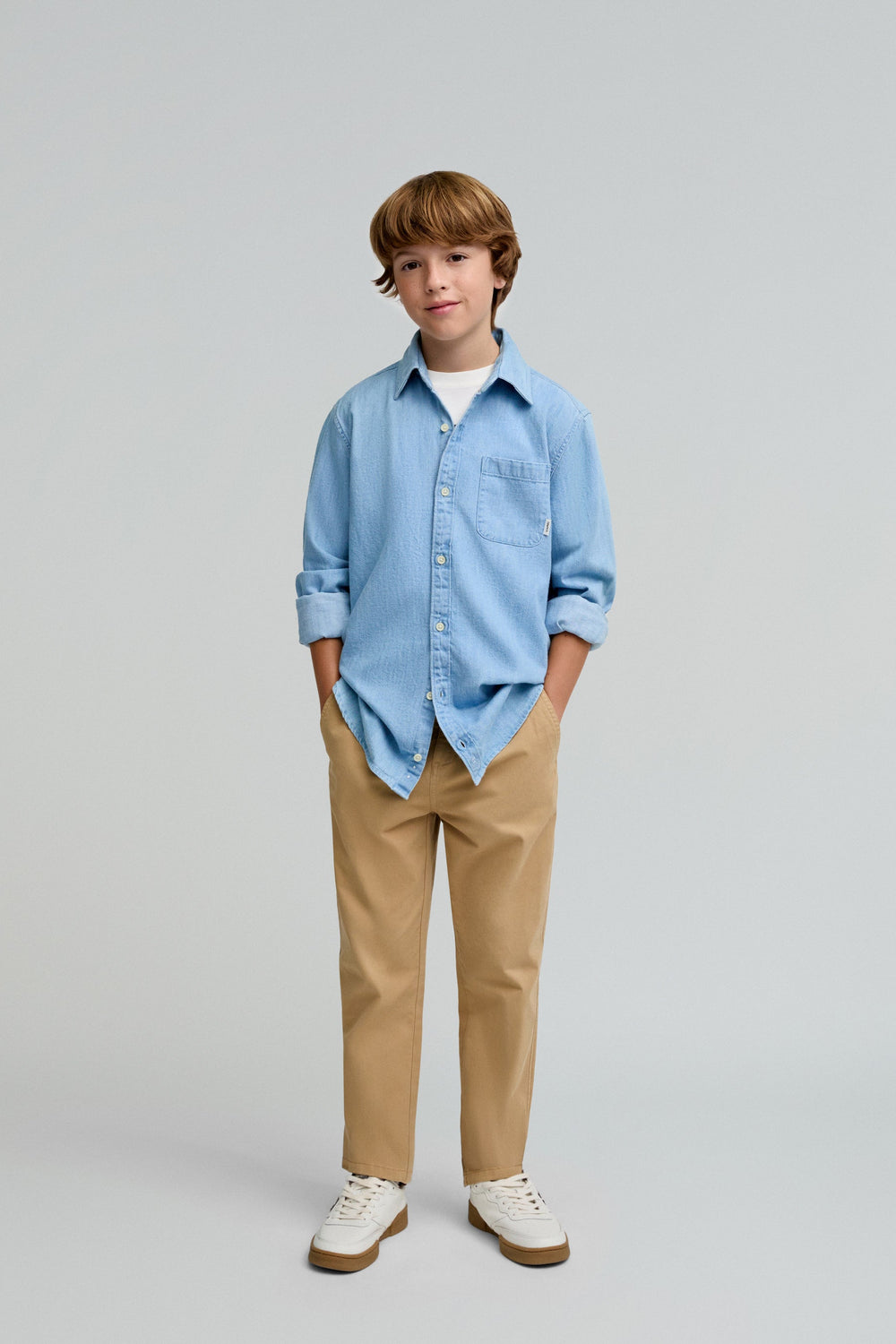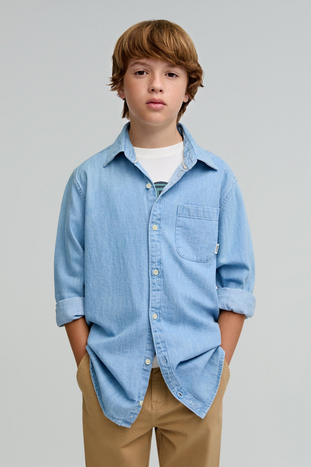Denim overshirt made of 100% BCI cotton. Regular fit, classic collar and button fastening. Chest pocket.