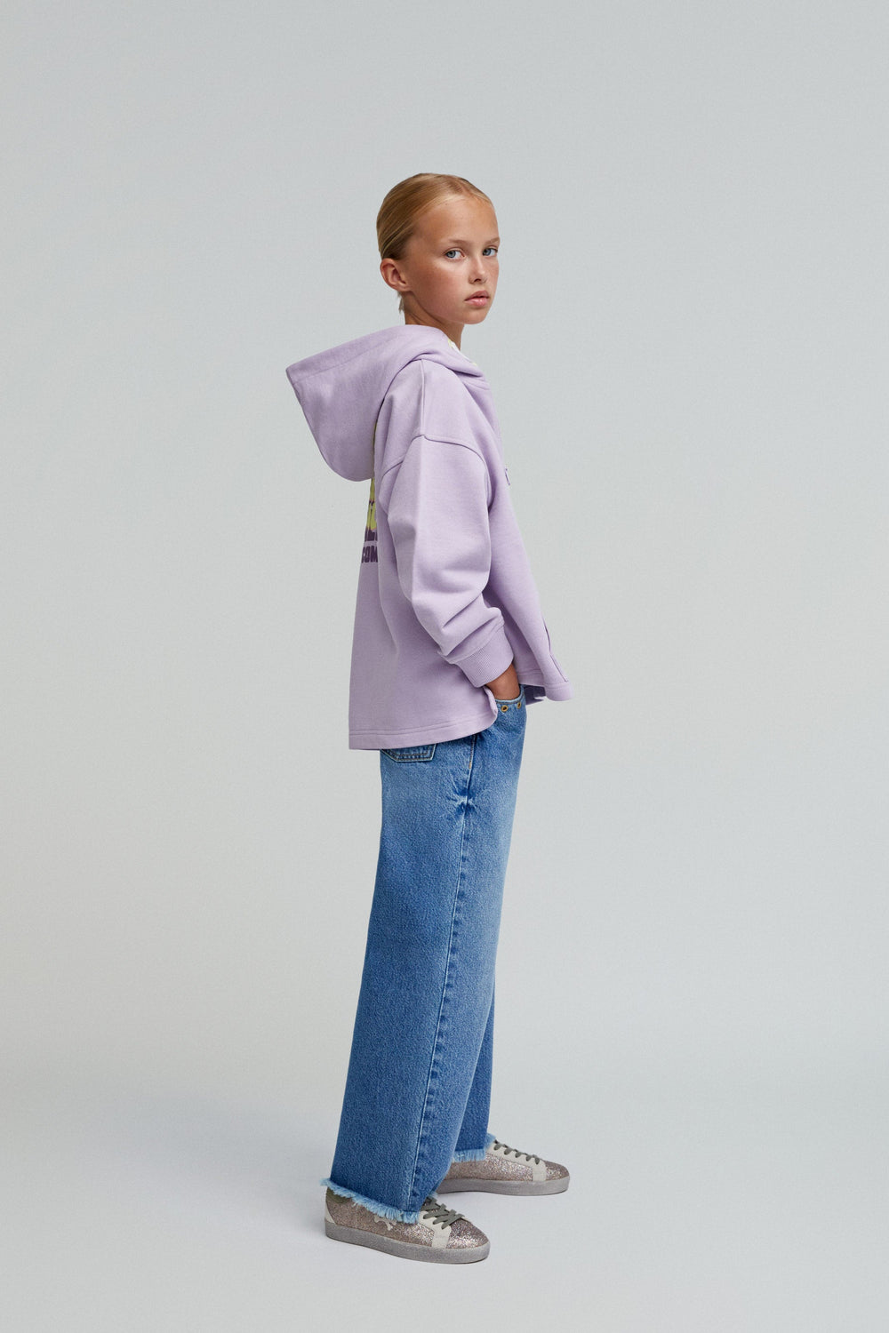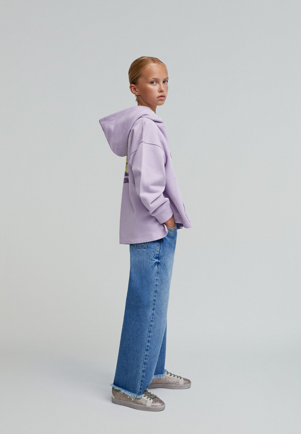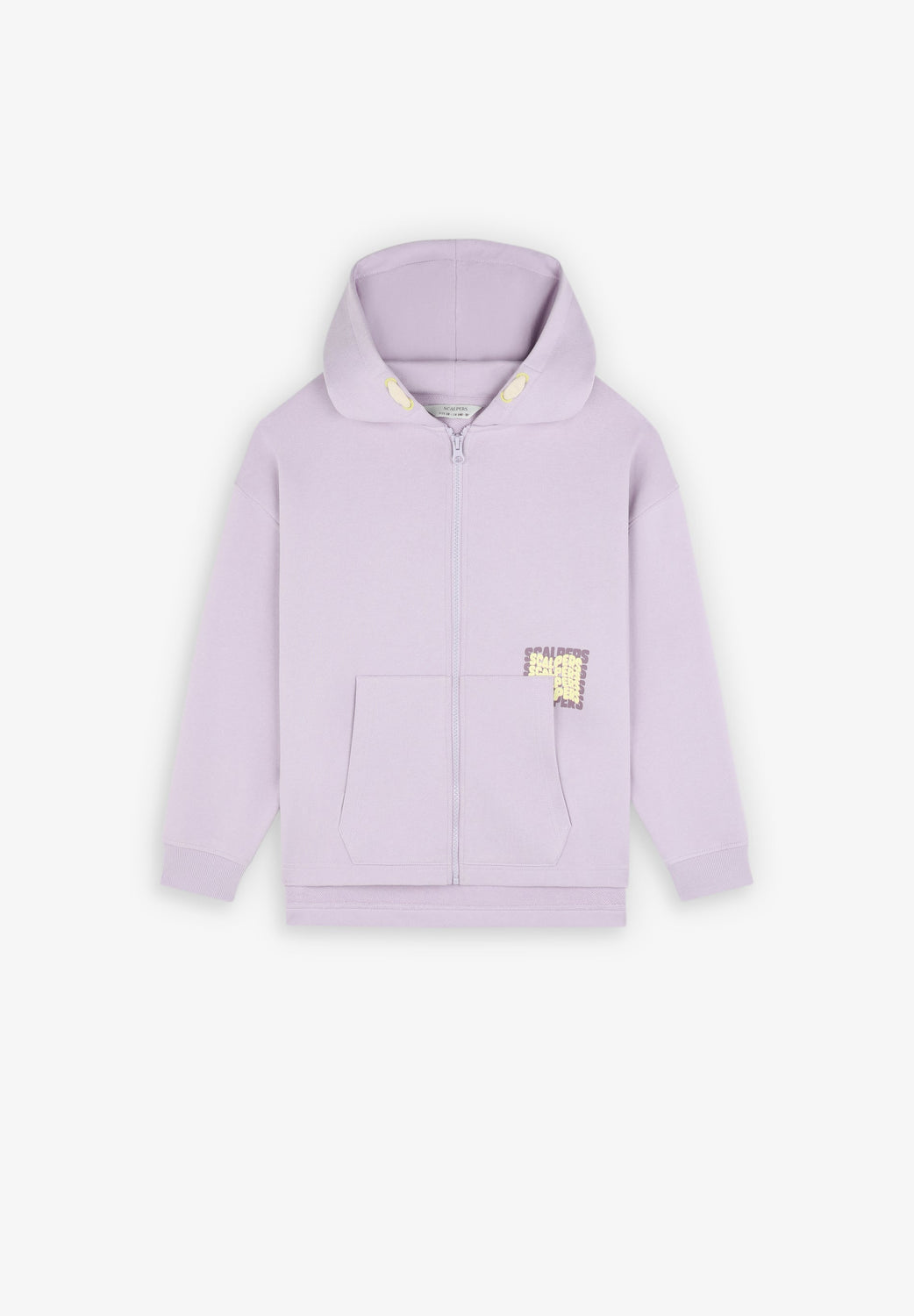 Sweatshirt with front and back print detail. Made of 100% BCI cotton. Slightly oversize design. Zip fastening. Collar with hood. Long sleeves with ribbed cuffs. Front pouch pocket.
