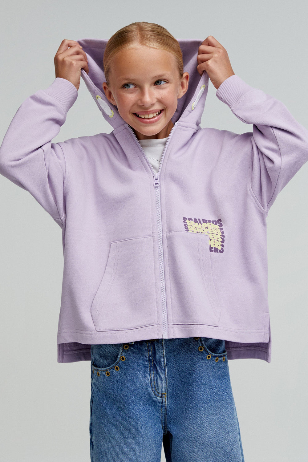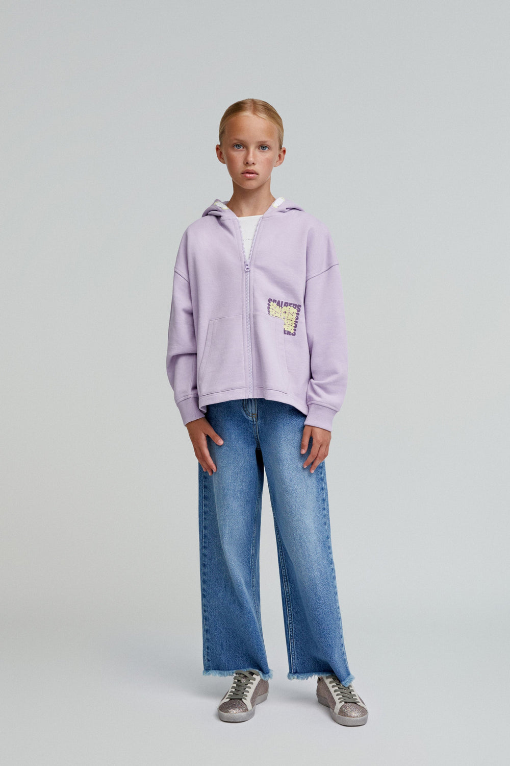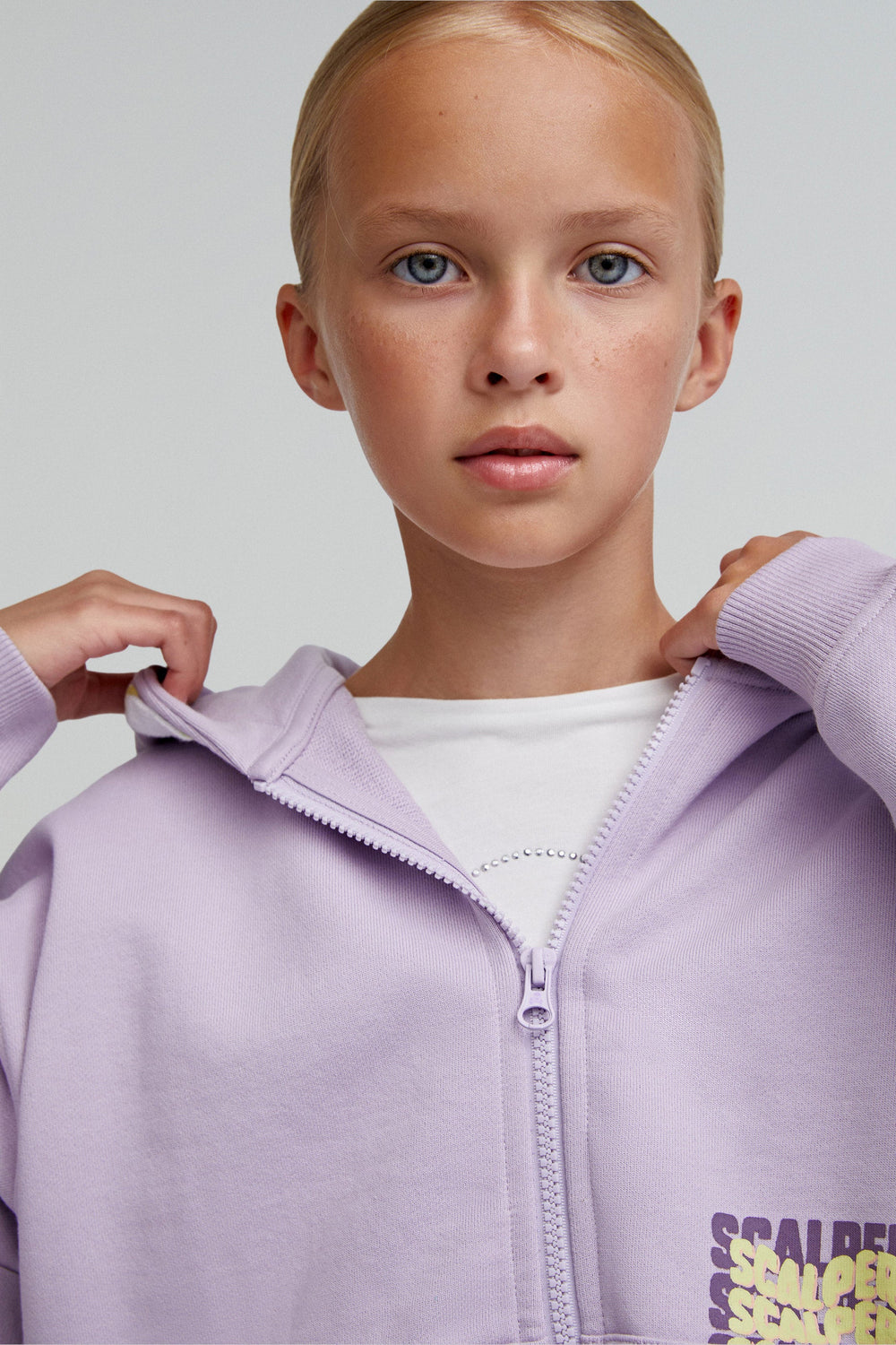 Sweatshirt with front and back print detail. Made of 100% BCI cotton. Slightly oversize design. Zip fastening. Collar with hood. Long sleeves with ribbed cuffs. Front pouch pocket.