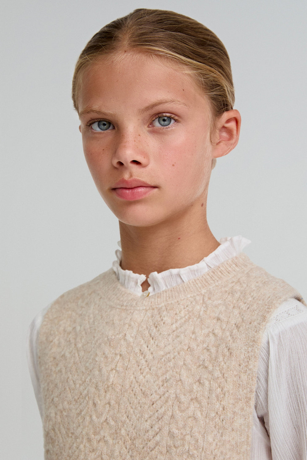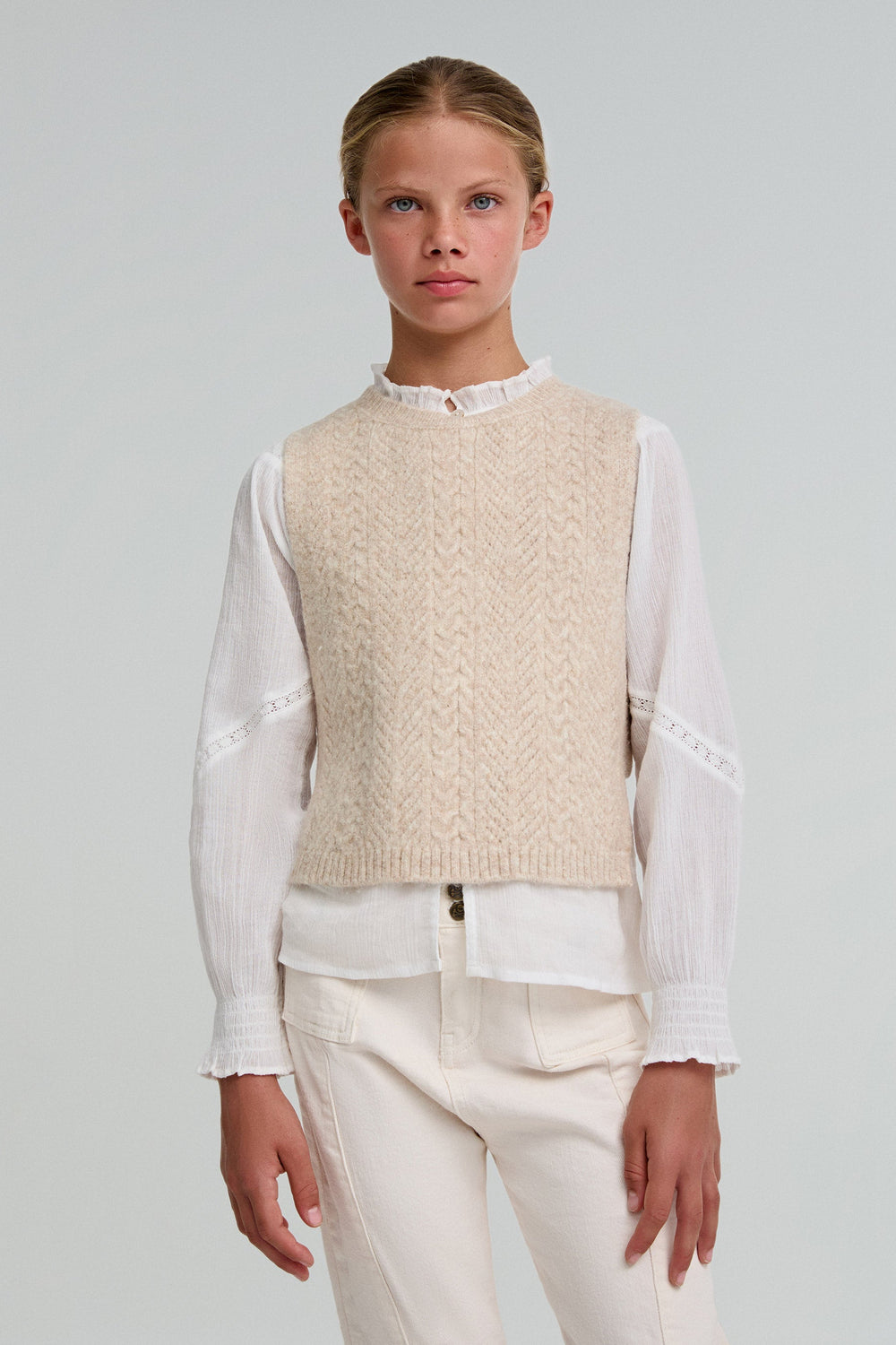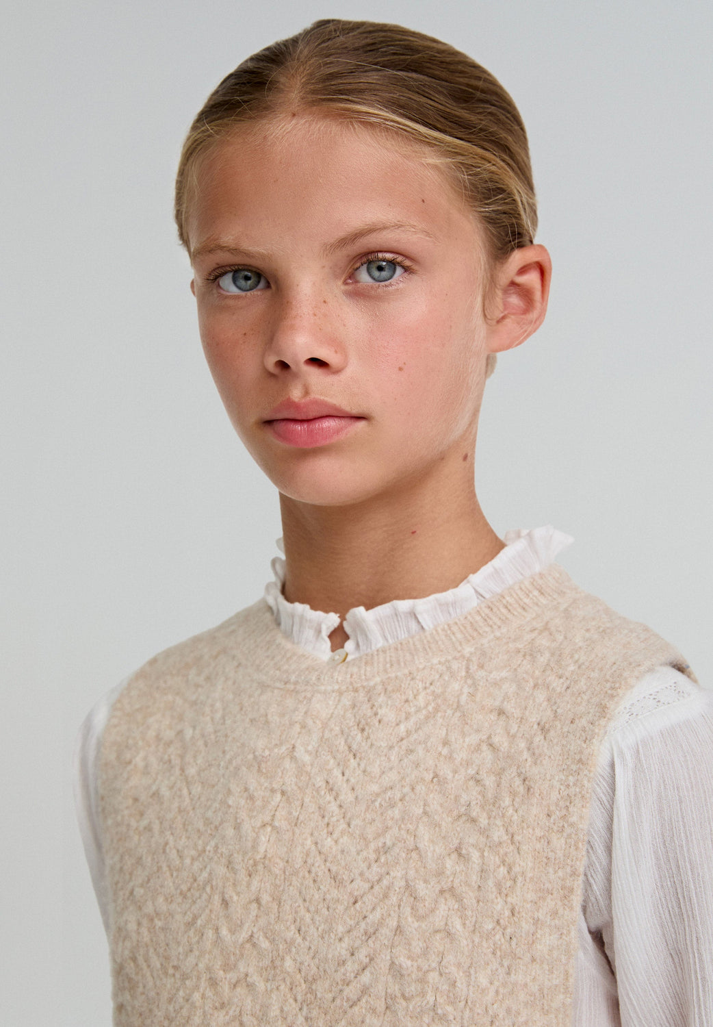 Vest with herringbone detail made of a wool blend. Regular fit, round neck and sleeveless with side strap.