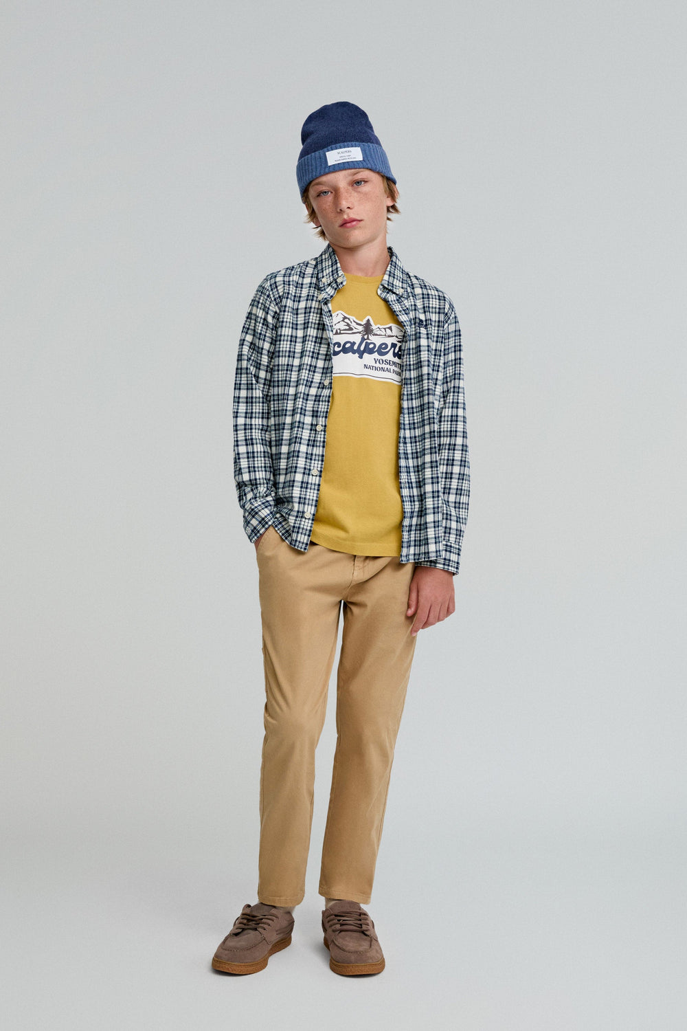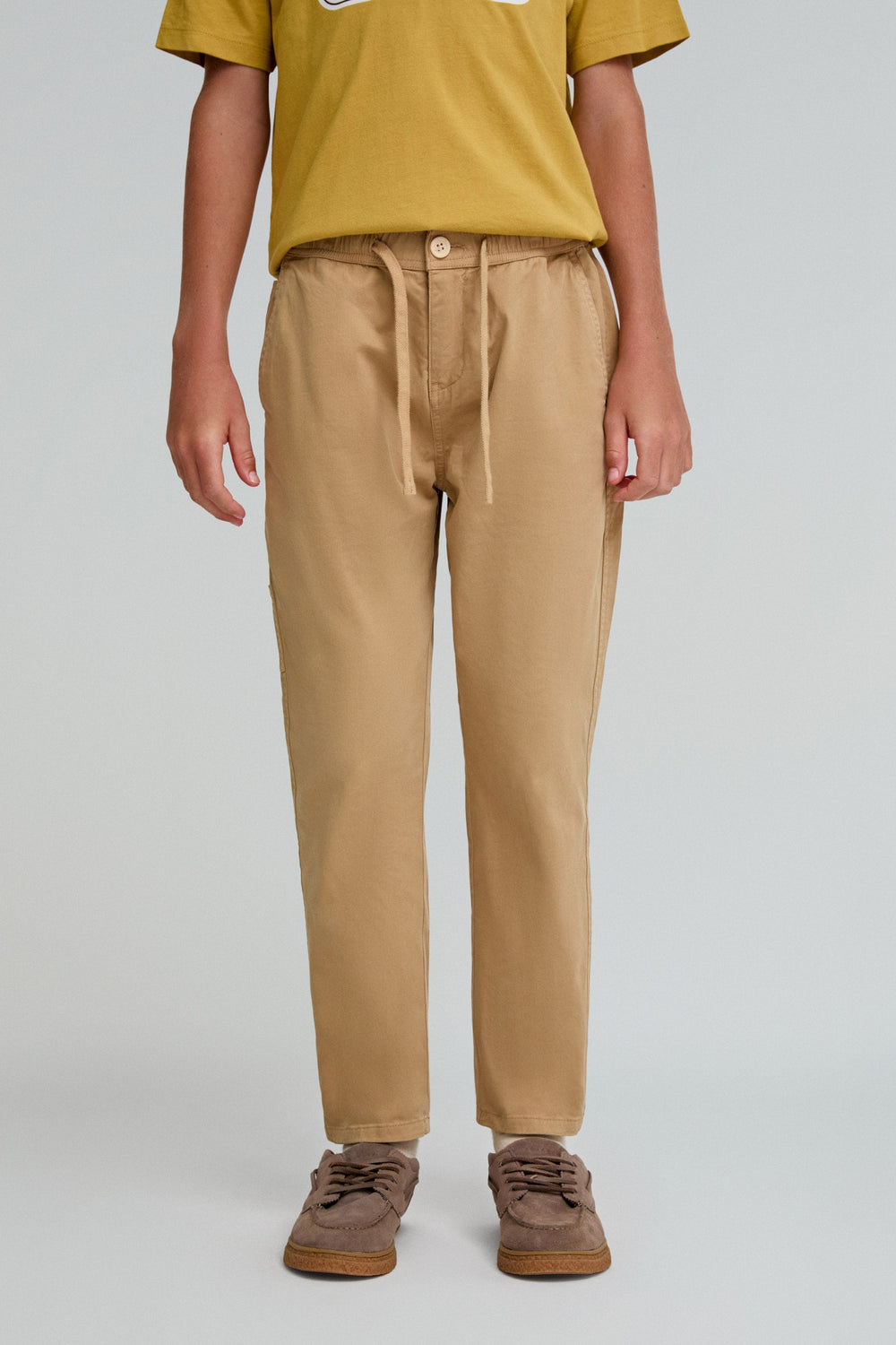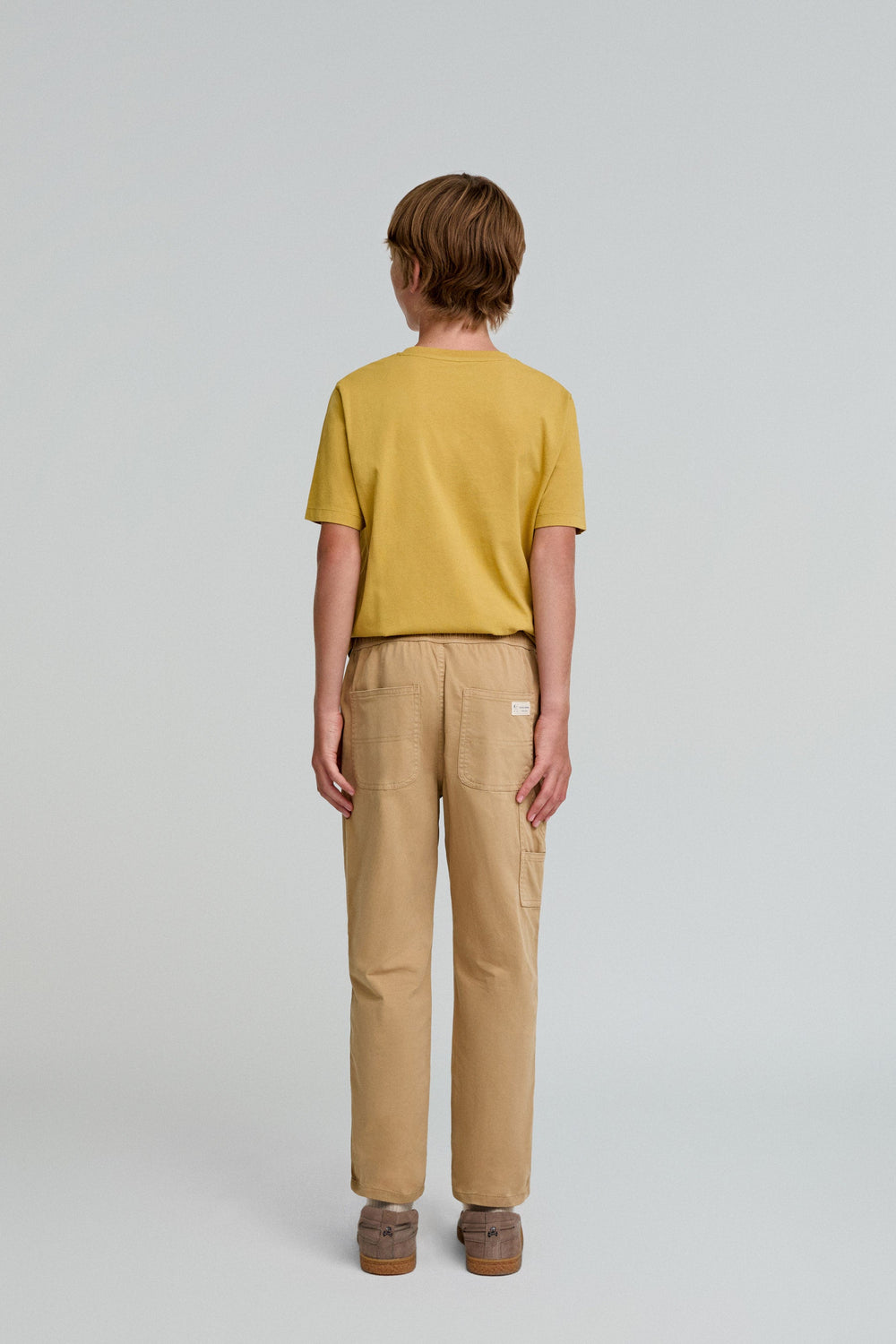 Trousers made of 100% BCI cotton. Regular fit with elasticated waistband and tie fastening. Back and side pockets and belt loops. Back label.