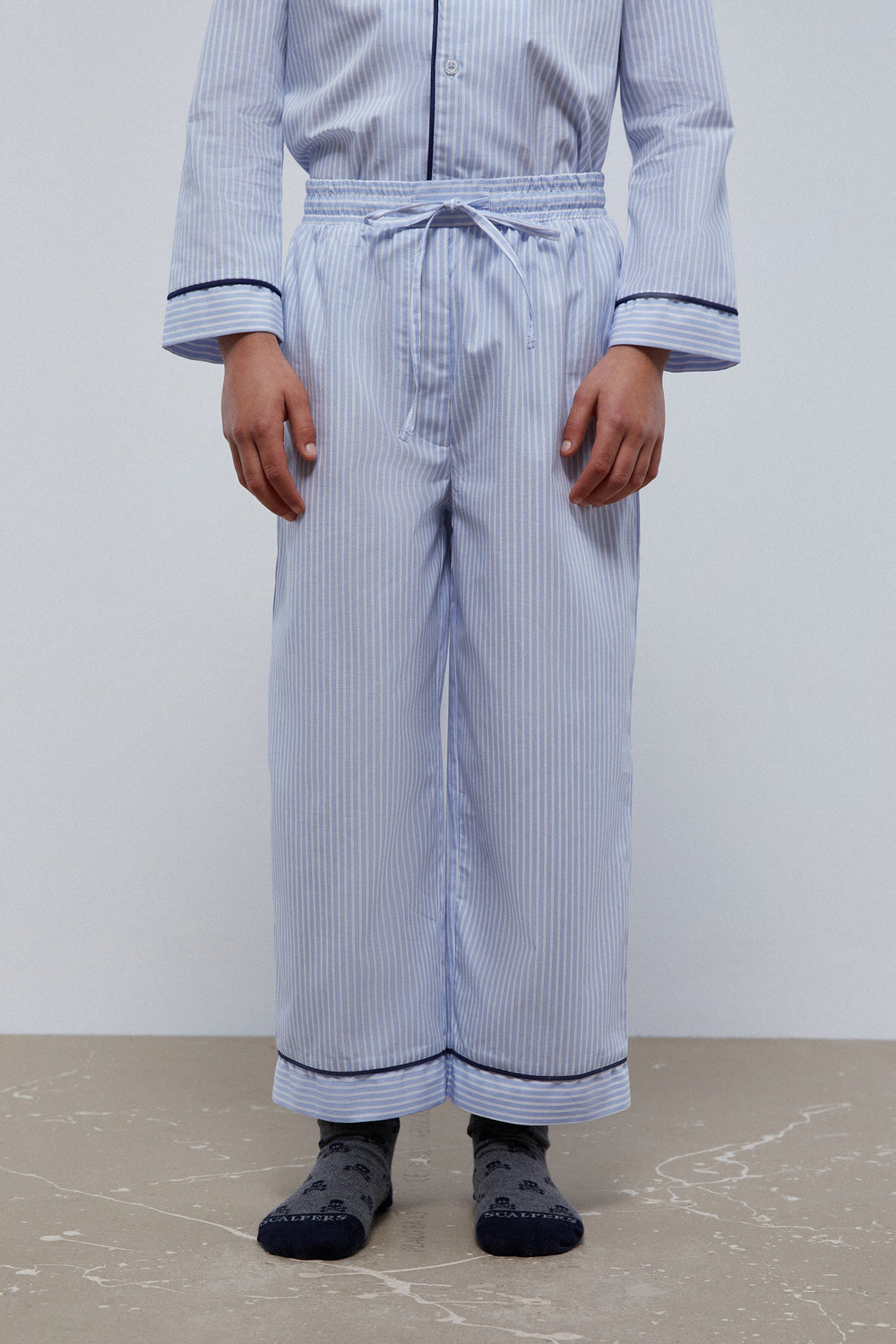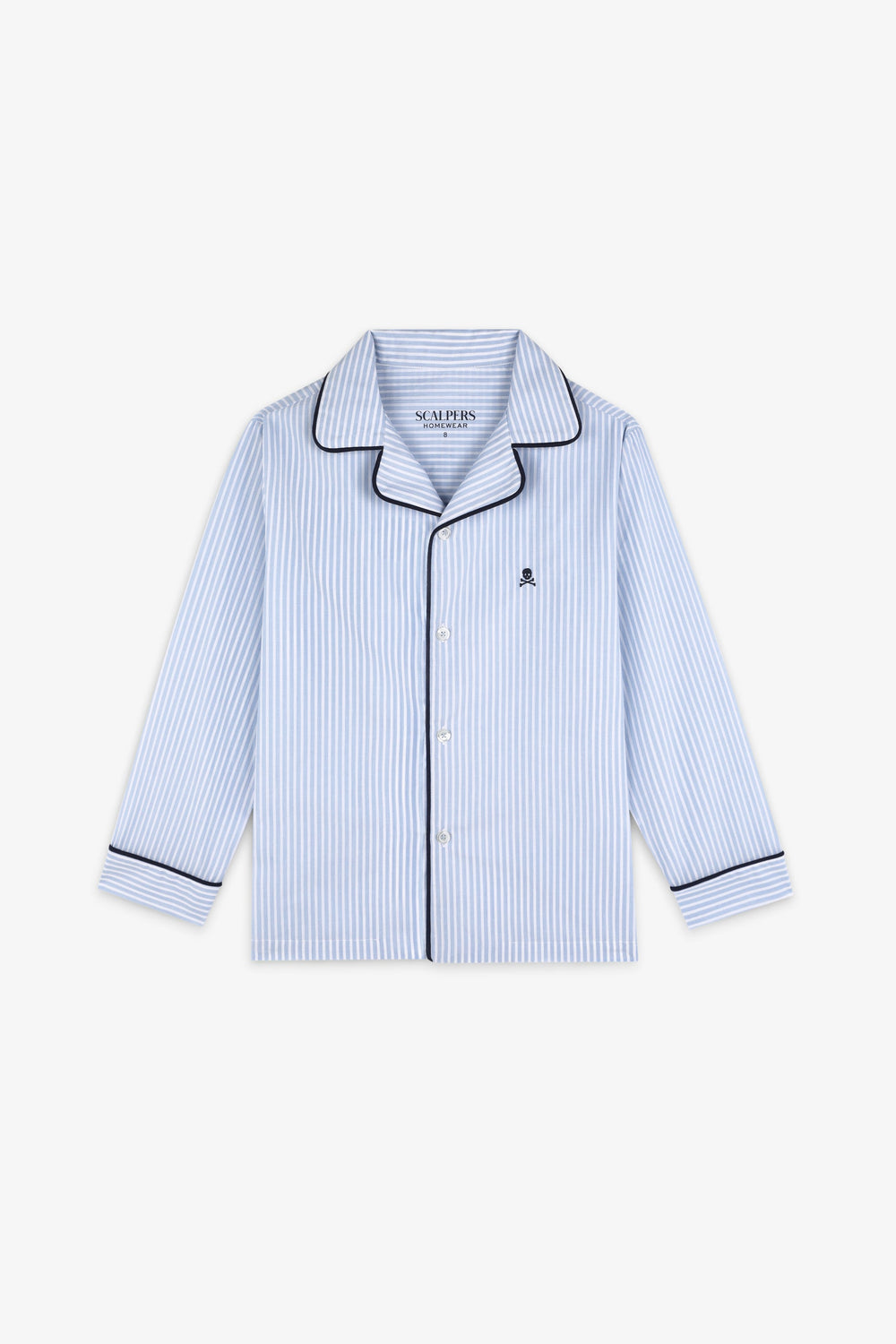 - Top: pyjama collar, button fastening, long sleeves and chest patch pocket.