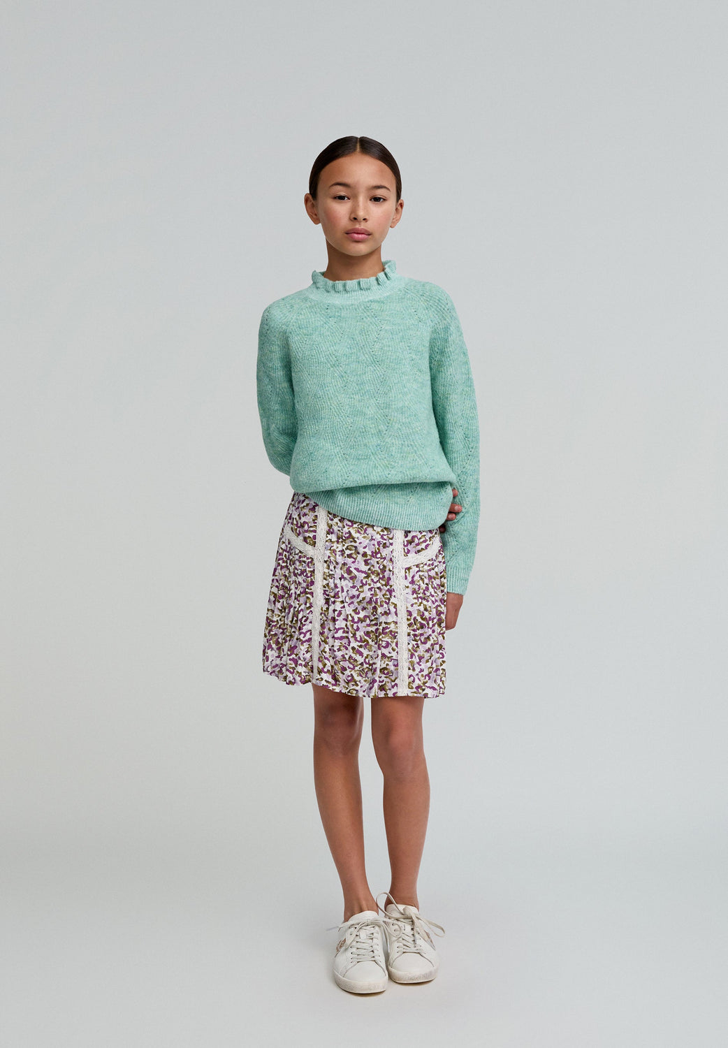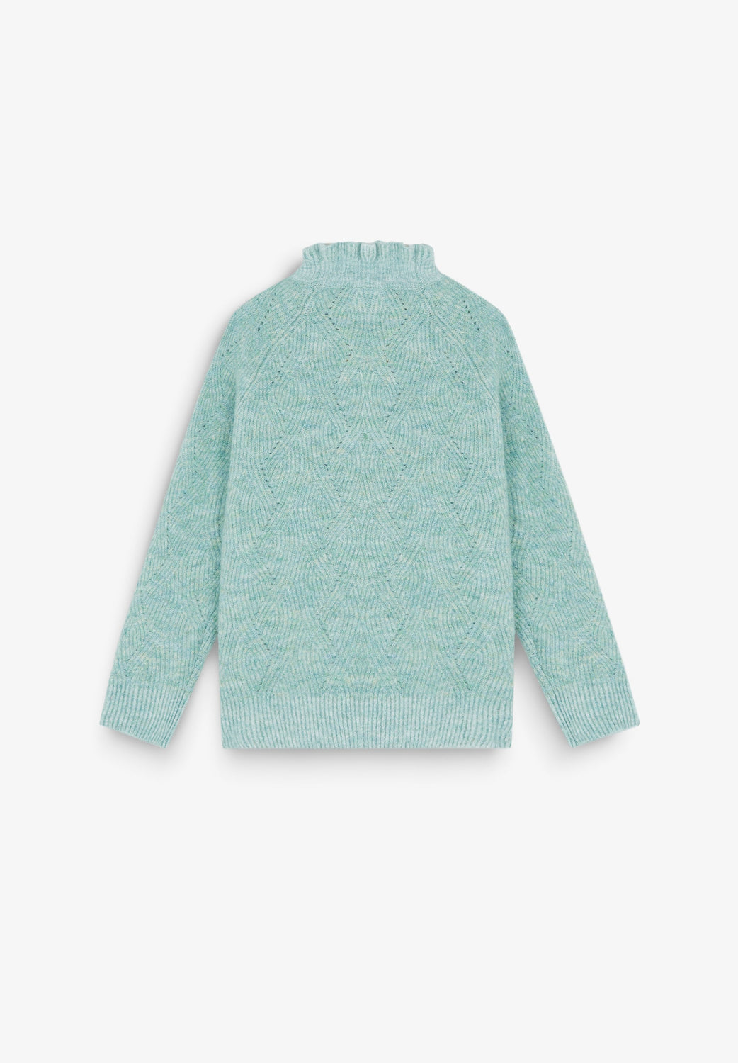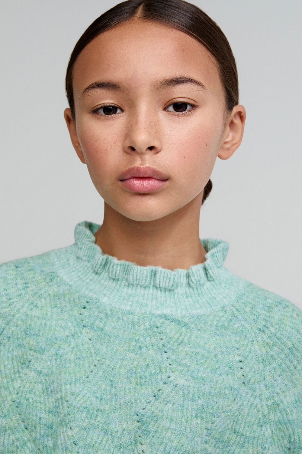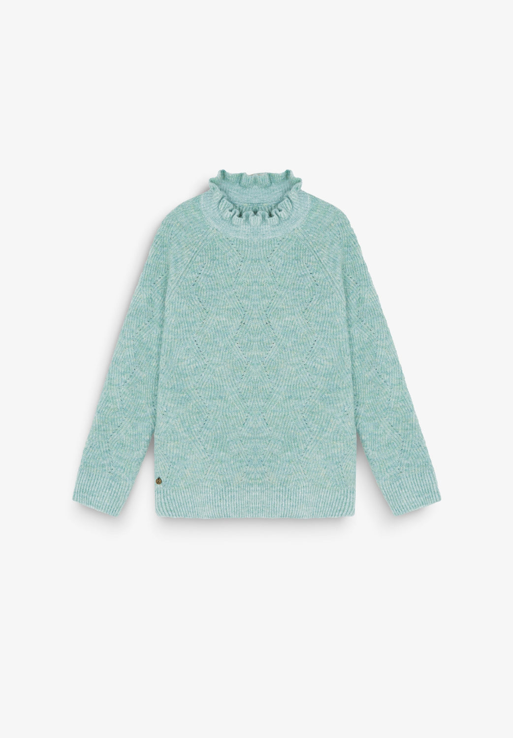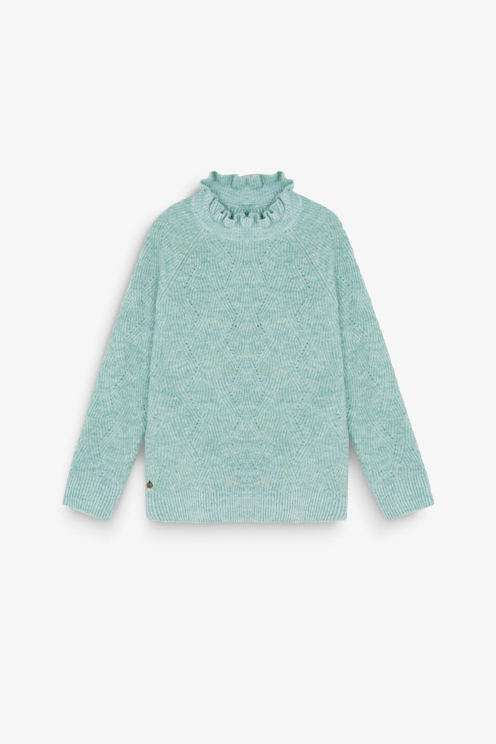 Sweater made of a wool blend. Regular fit, high collar with ruffle and long sleeves.