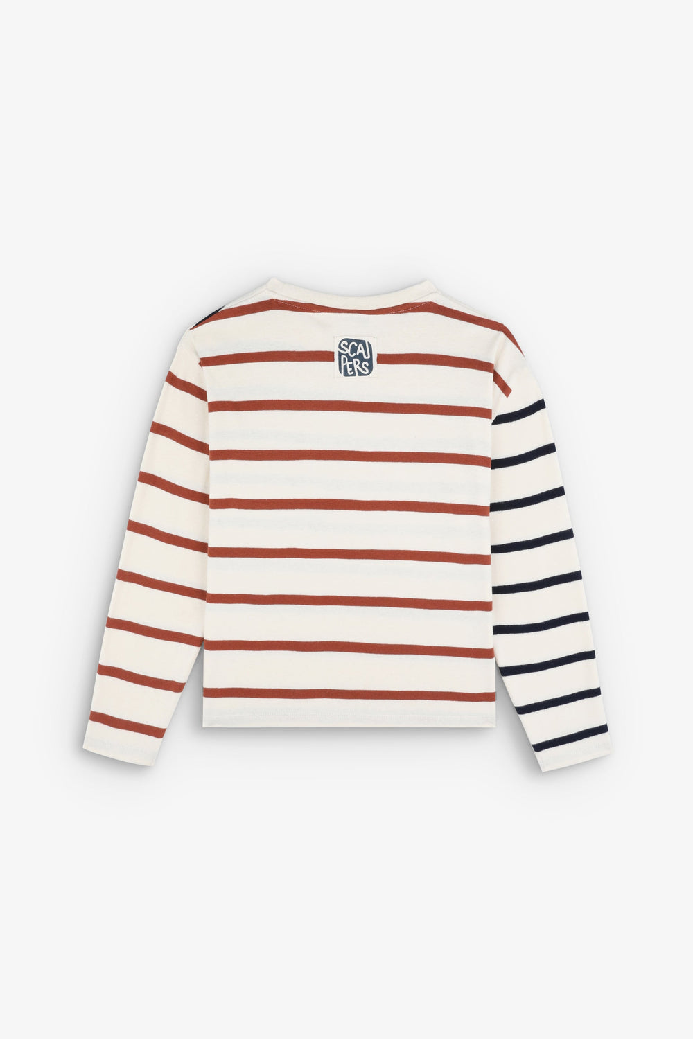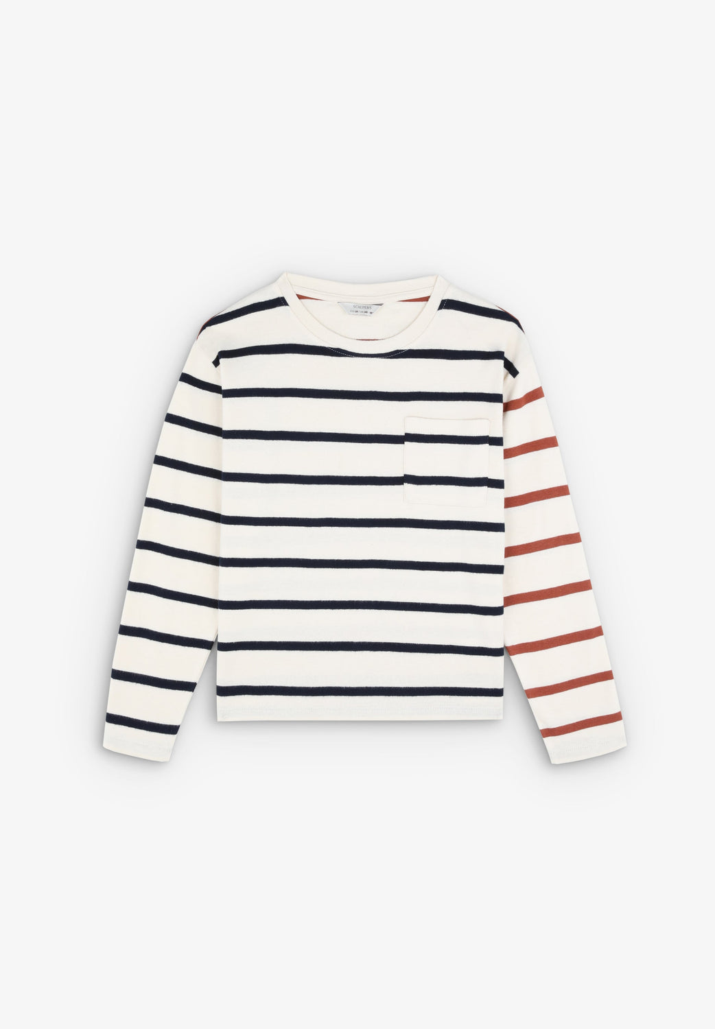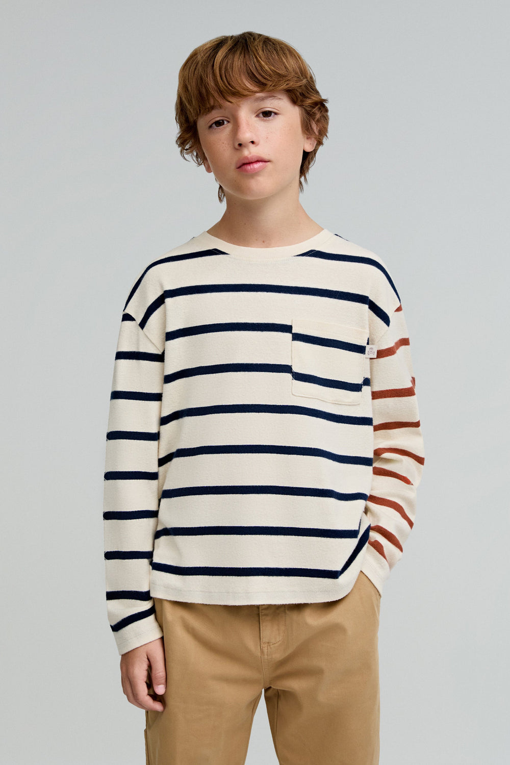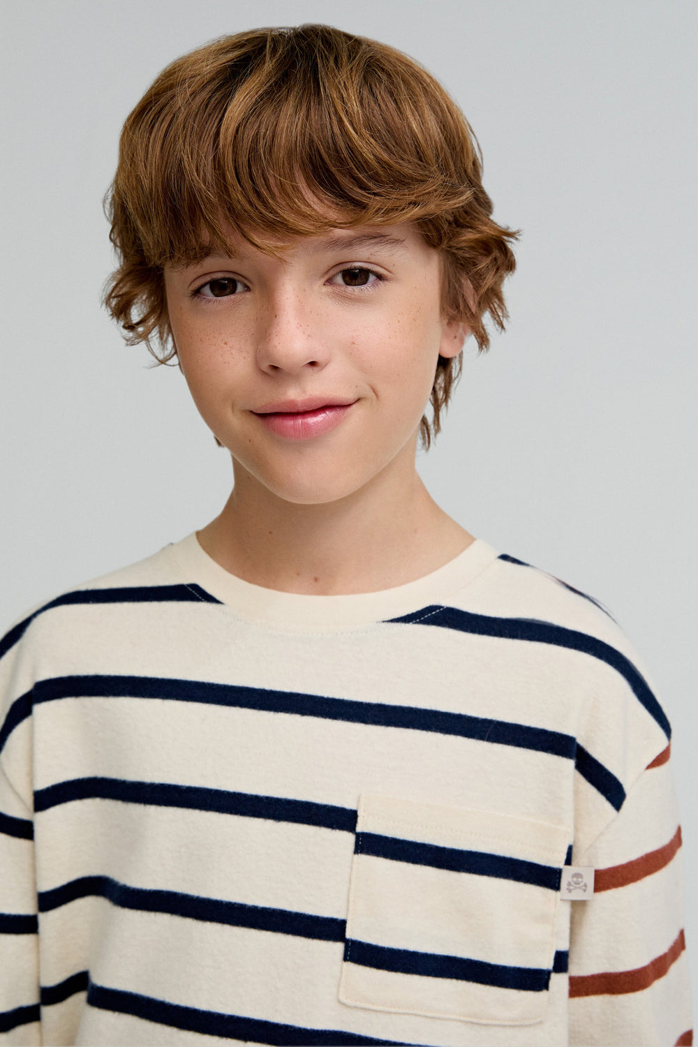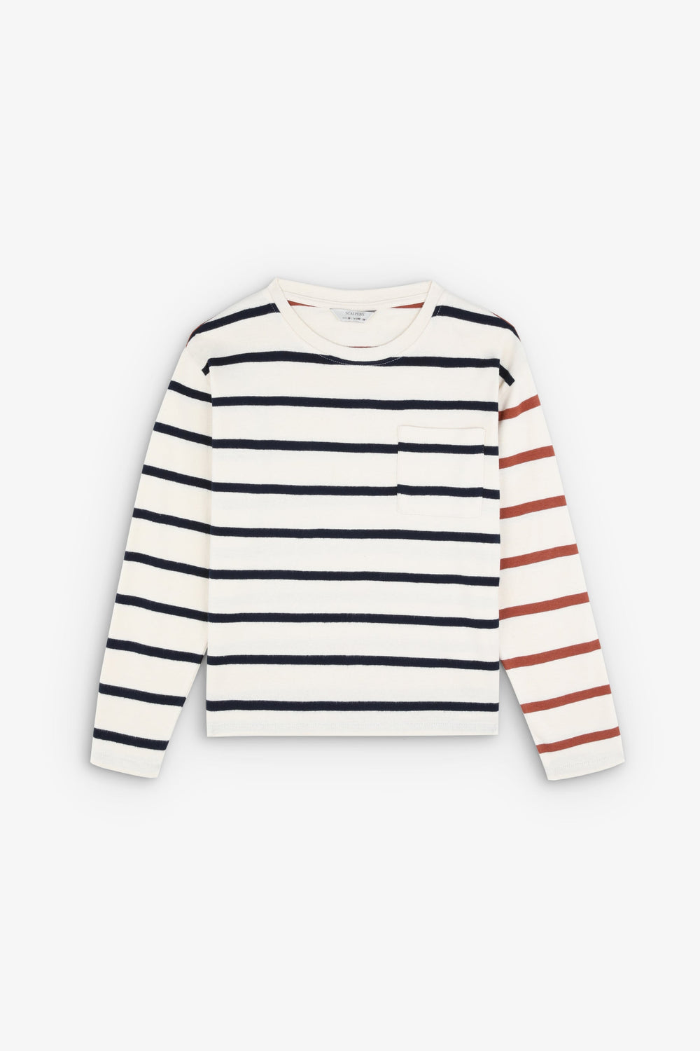 Striped T-shirt made of 100% BCI cotton. Regular fit, round neck and long sleeves.