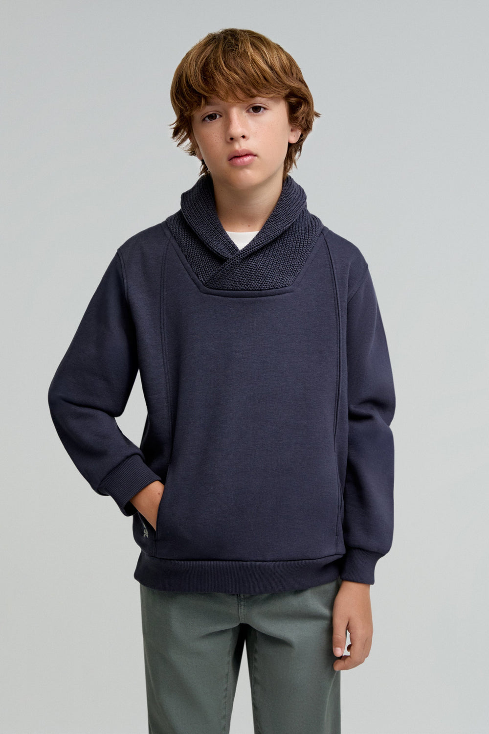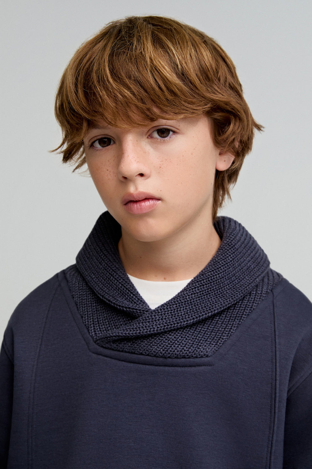Sweatshirt made of cotton. Regular fit, pronounced knit neck and long sleeves. Side pockets and visible seam details.