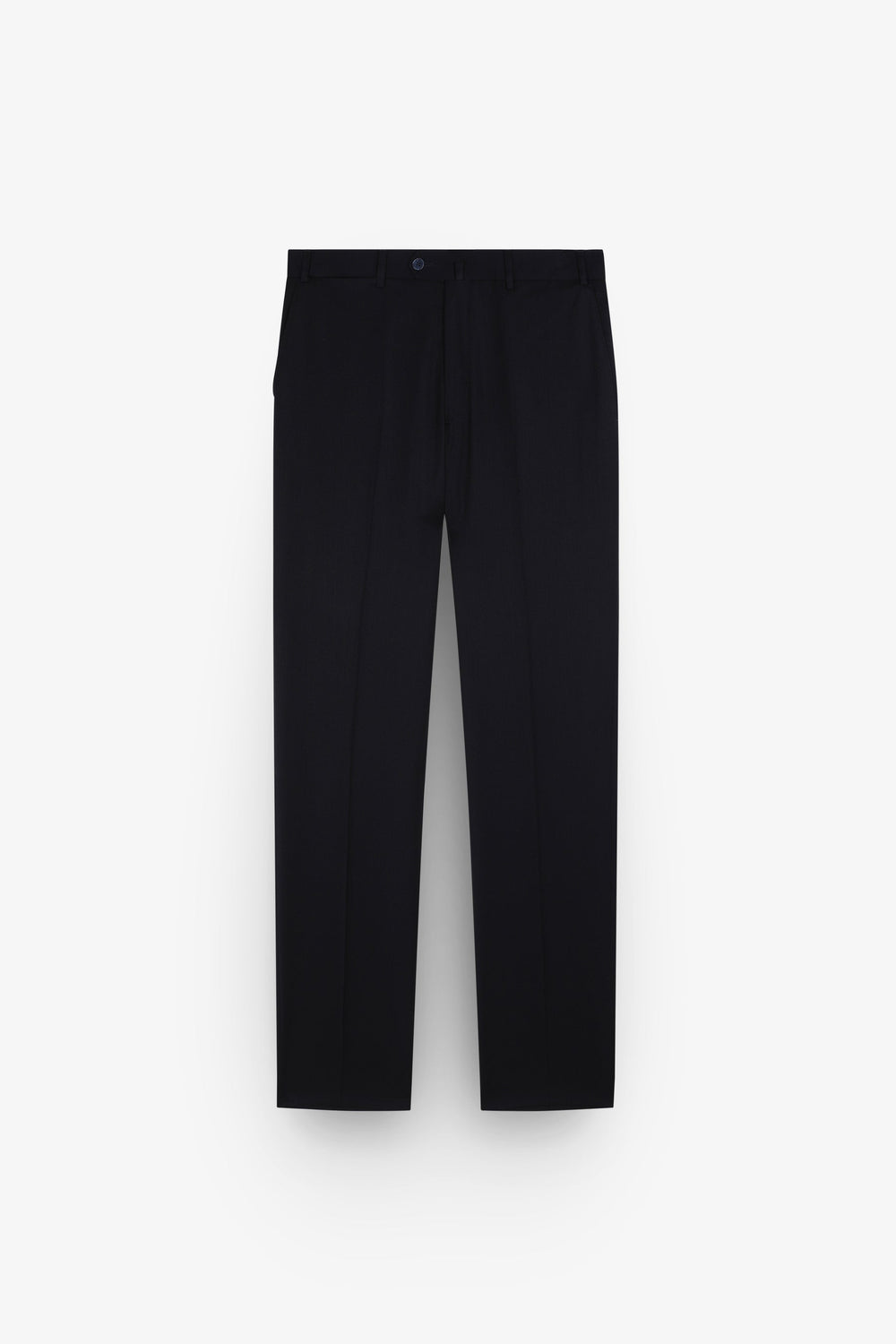 - Pantalón recto con cierre de botón prolongado en cintura y cremallera. Bajo sencillo