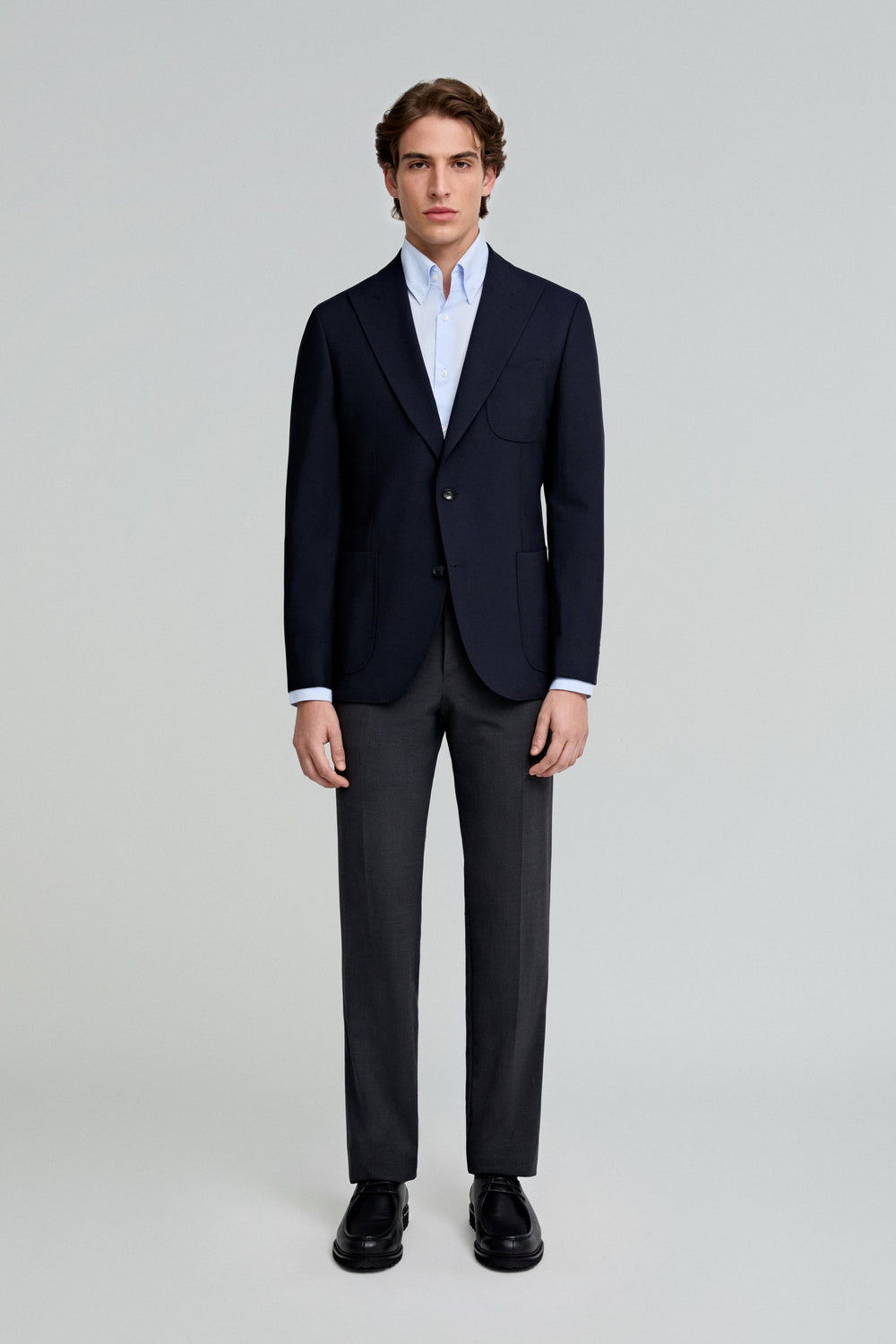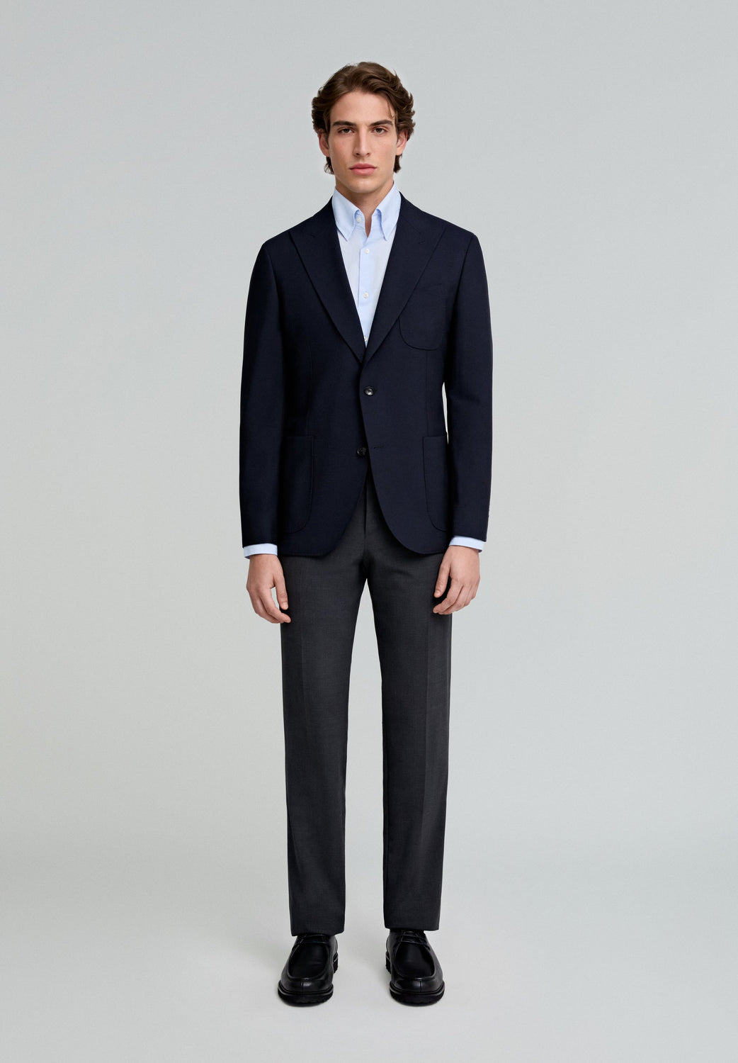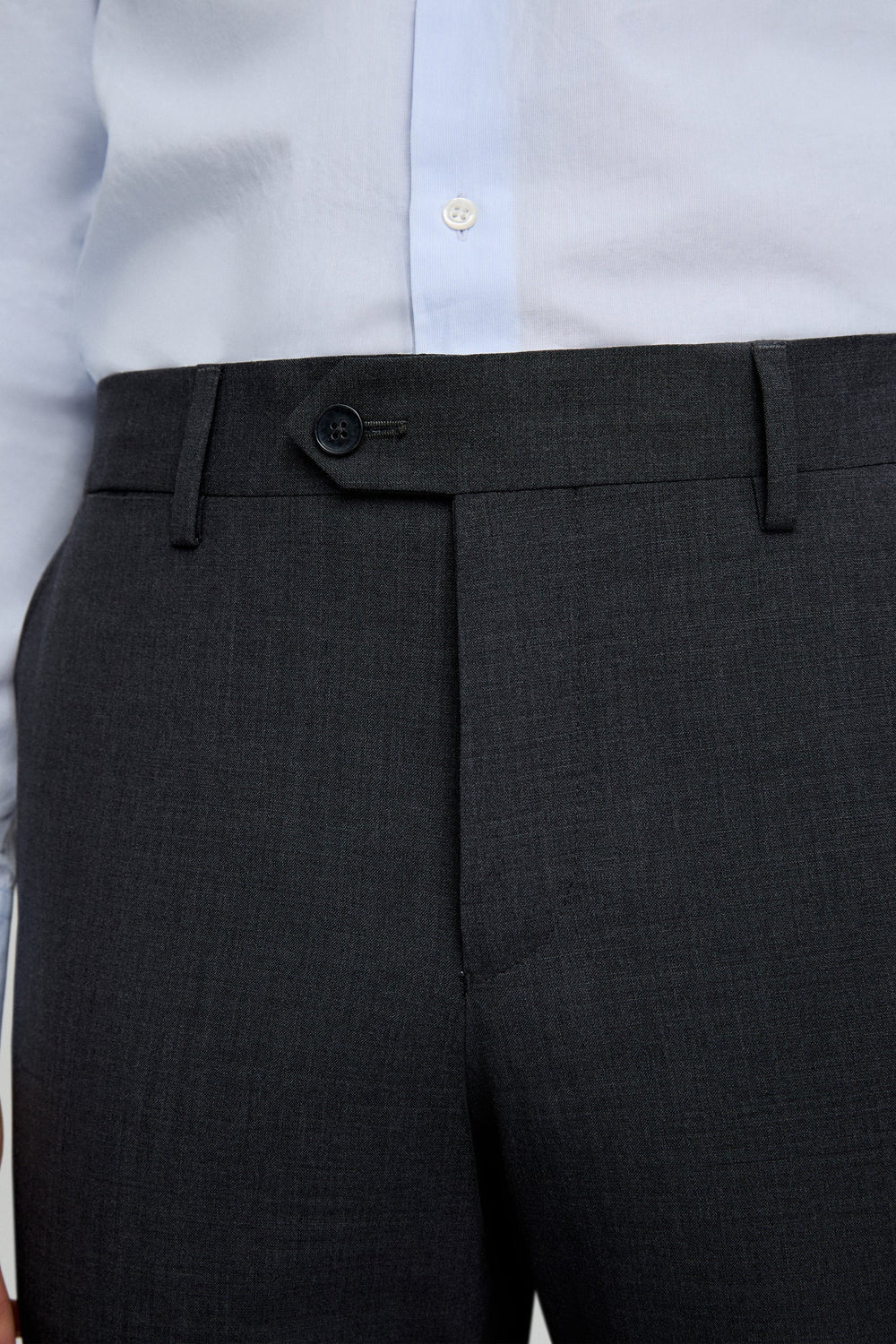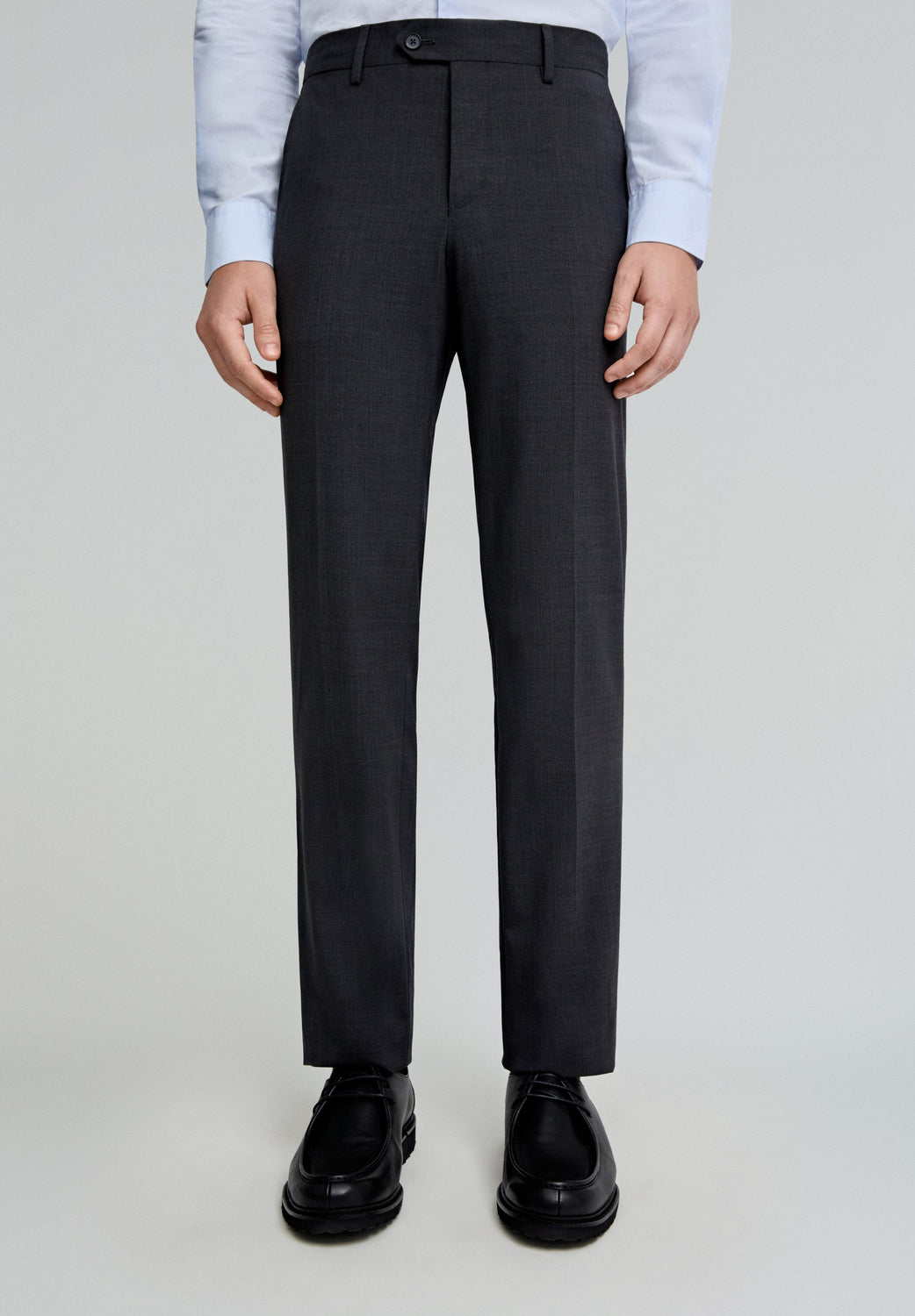 Classic dress trousers made of 100% wool. Regular fit, button and zip fastening extended on the waist. Side pockets and belt loops.