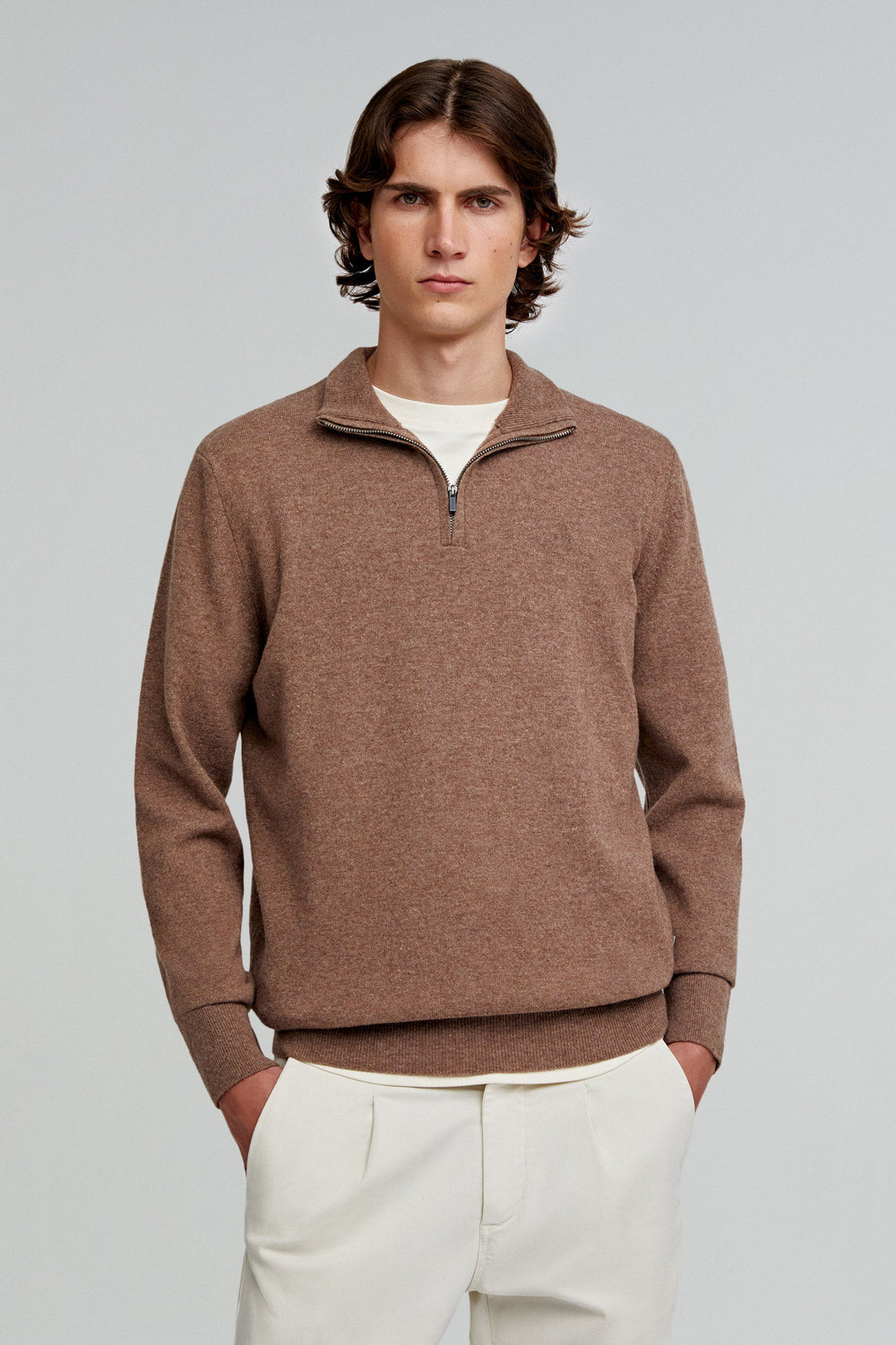 Sweater made of a wool blend. Regular fit, zipped neck and long sleeves Matching embroidered skull.