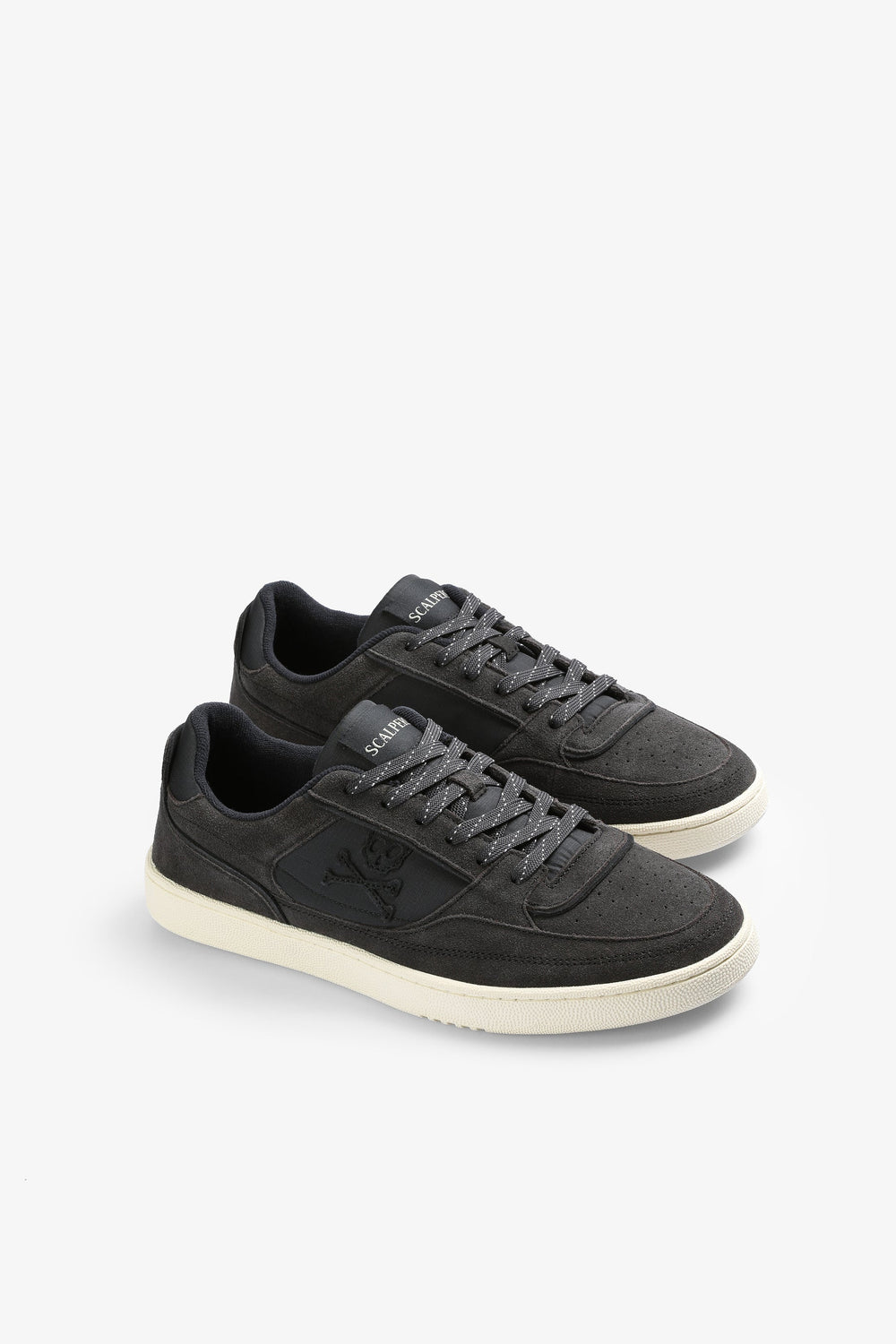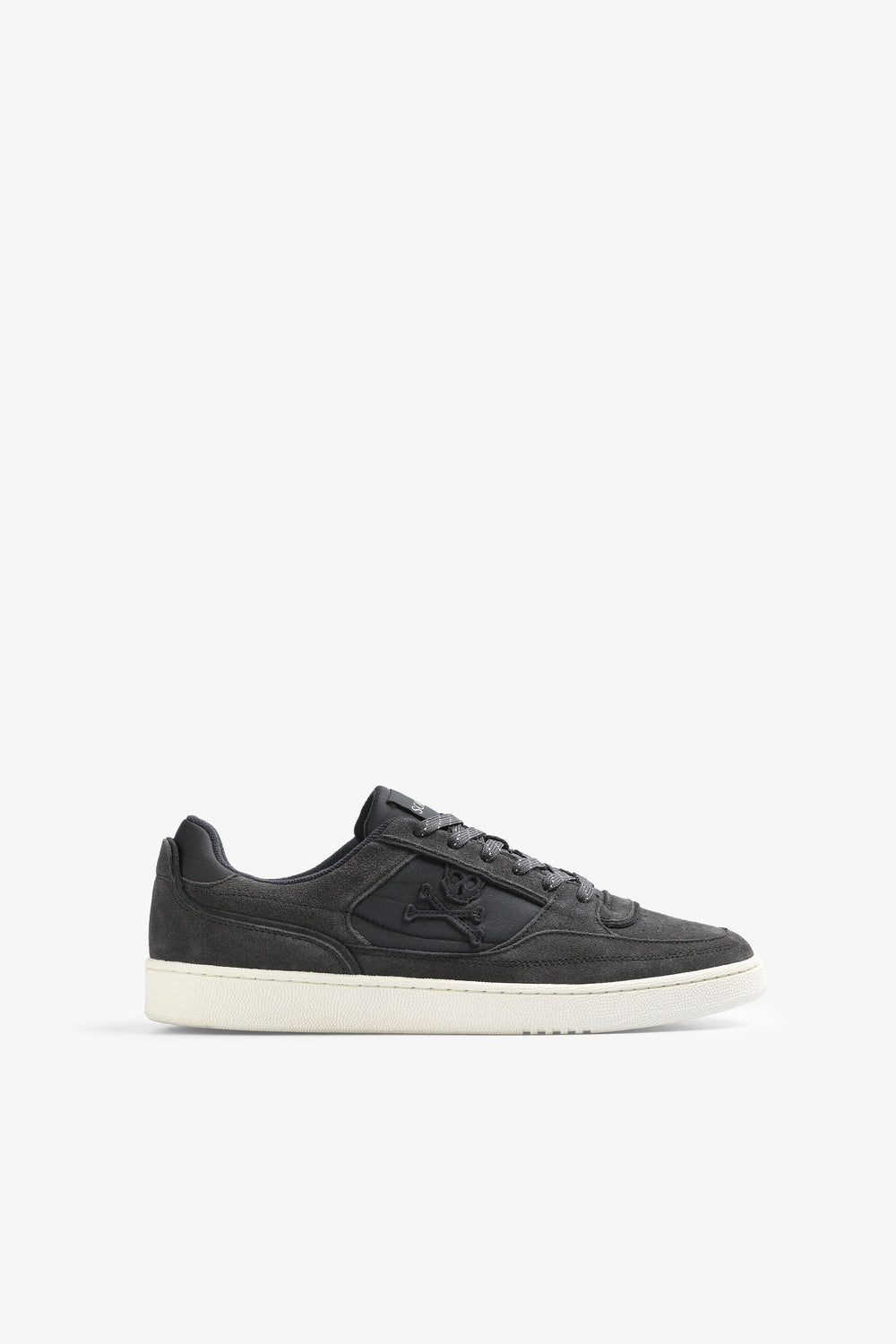 Leather sneakers with split suede finish. Matching lace-up fastening, contrast rubber sole and side skull patch.