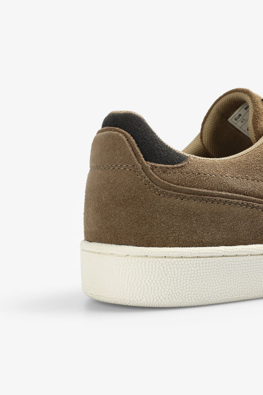 Leather sneakers with split suede finish. Matching lace-up fastening, contrast rubber sole and side skull patch.