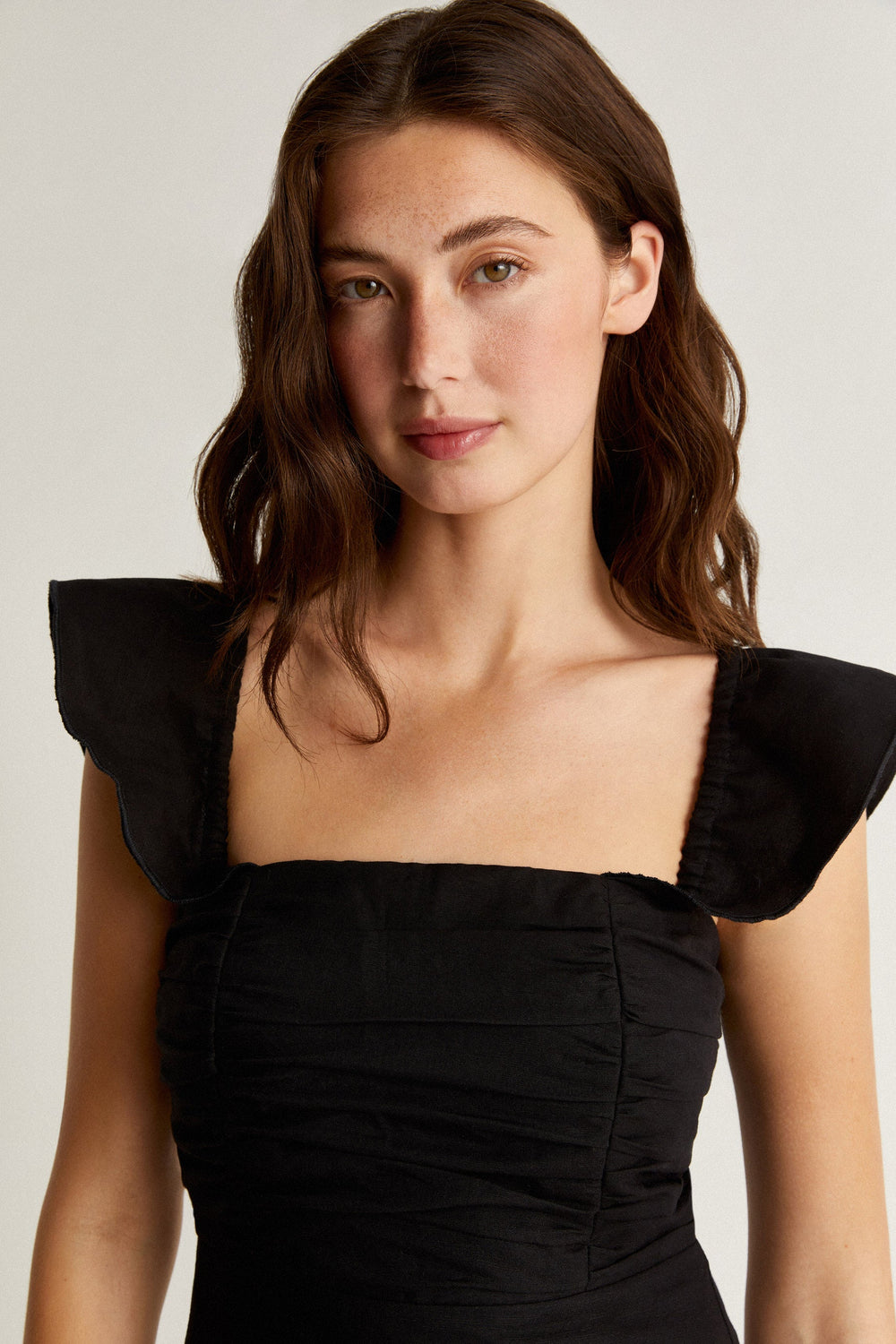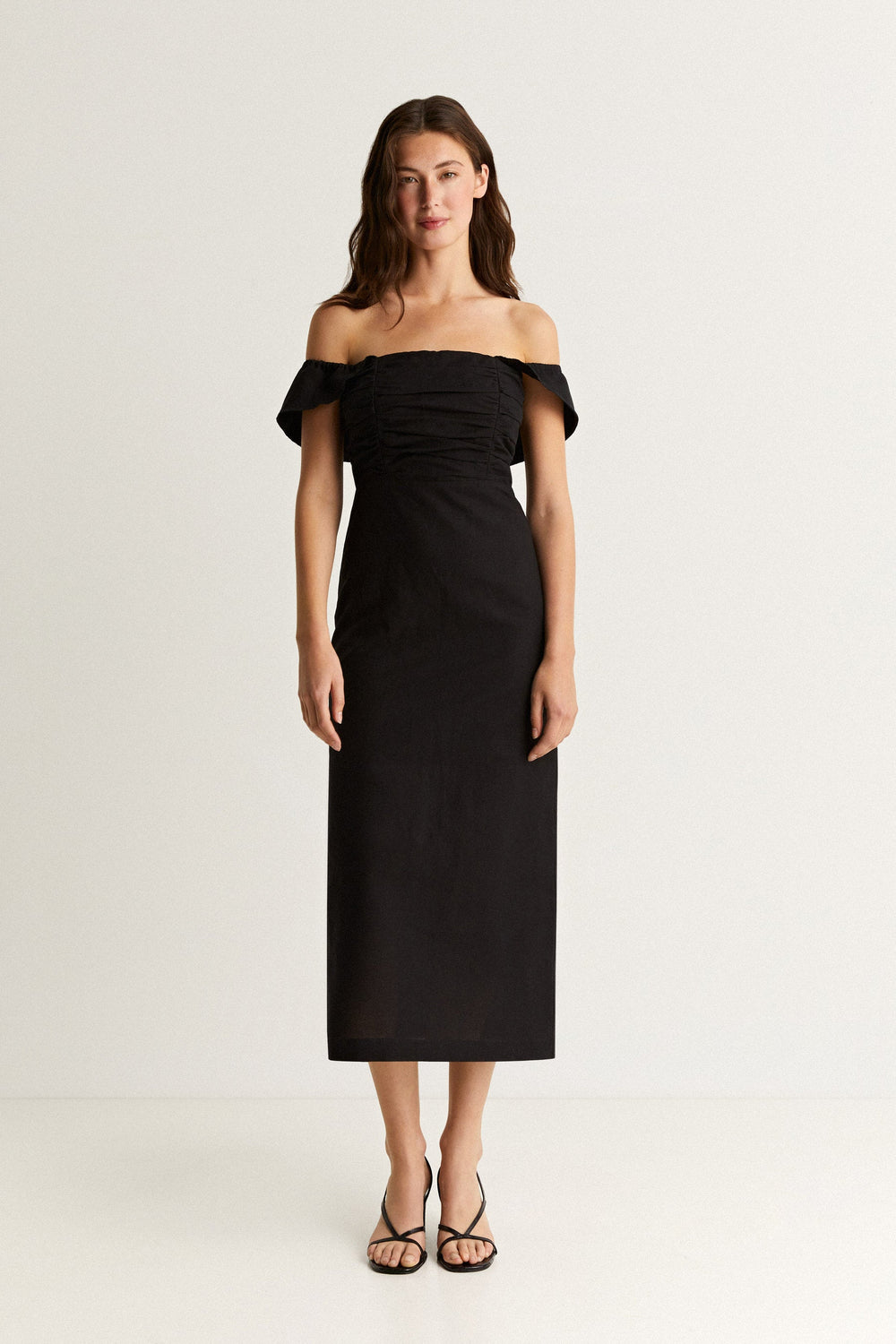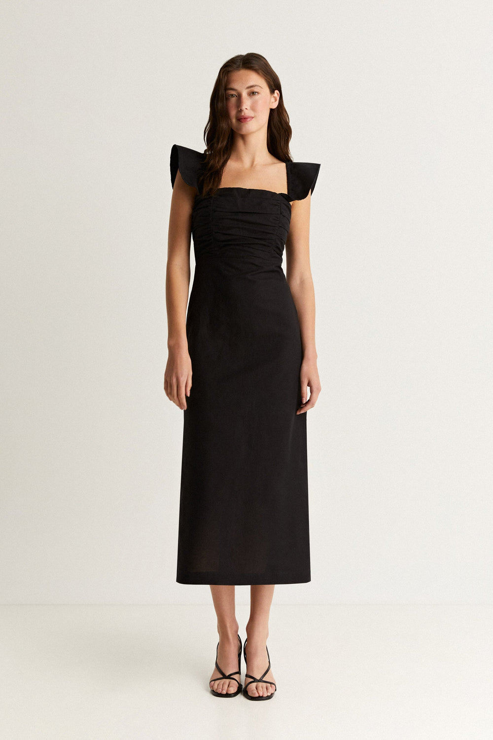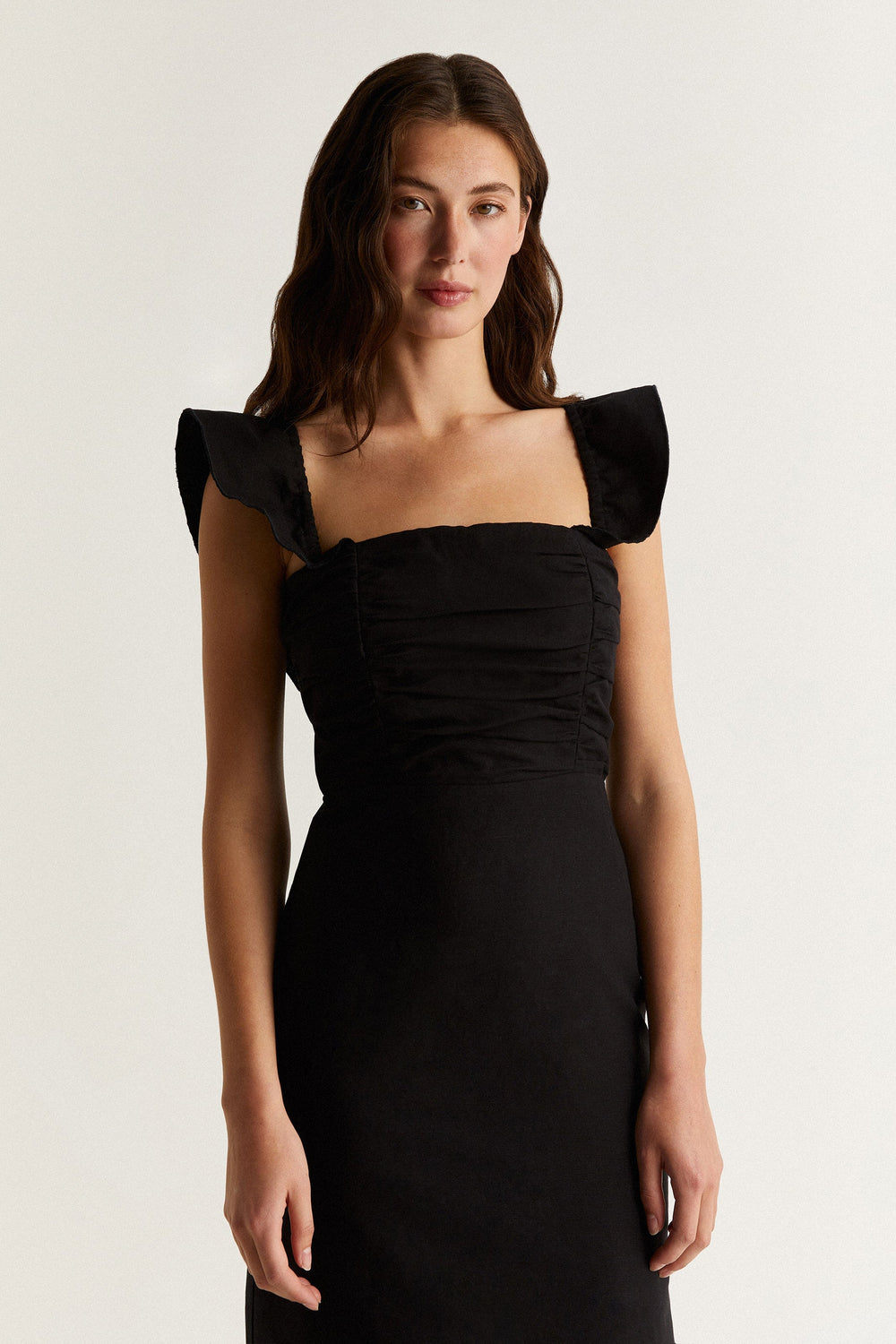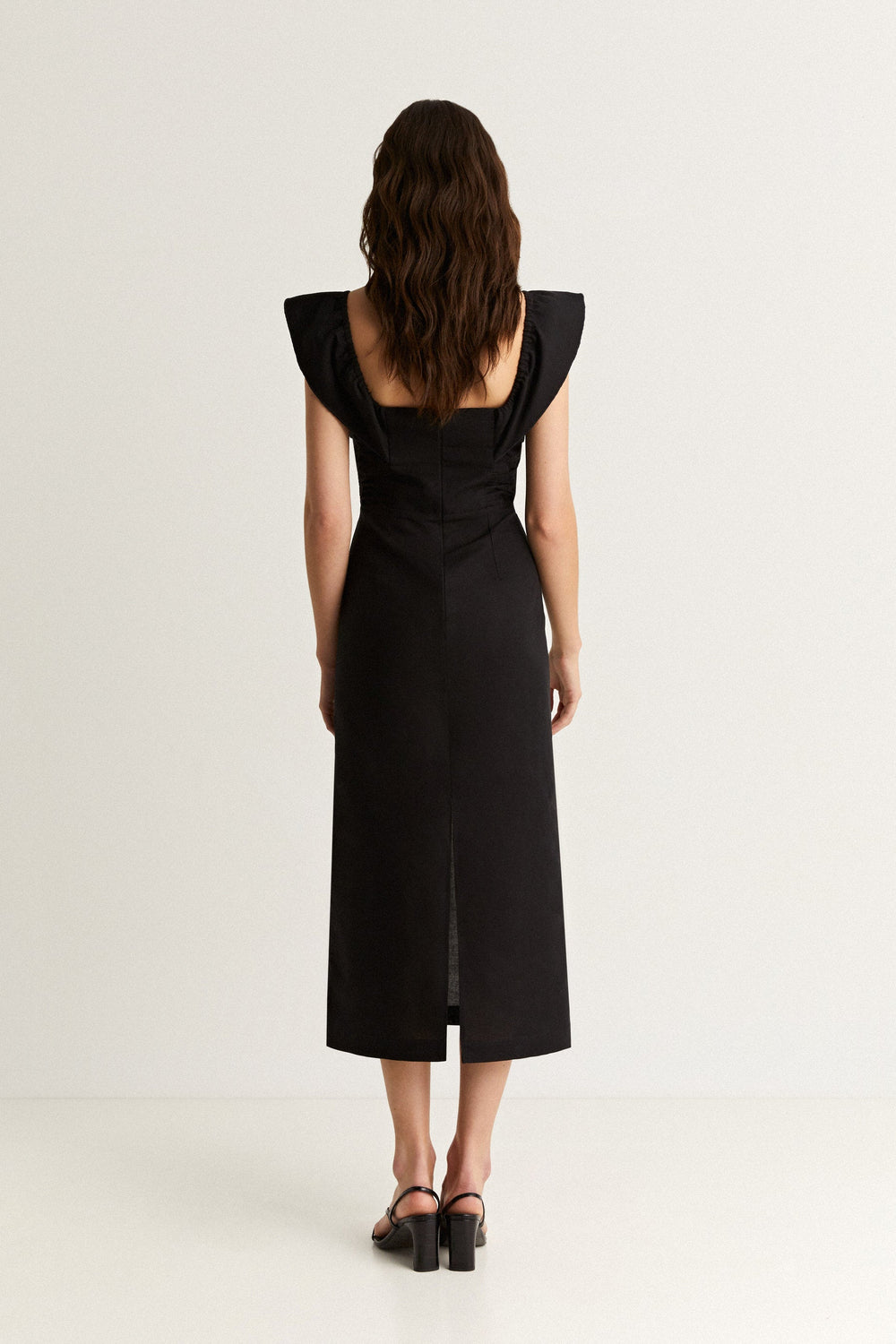 LINEN MIDI DRESS WITH DRAPED CHEST