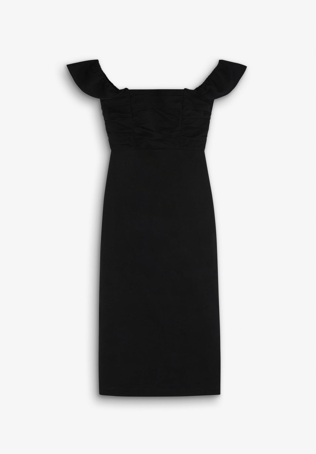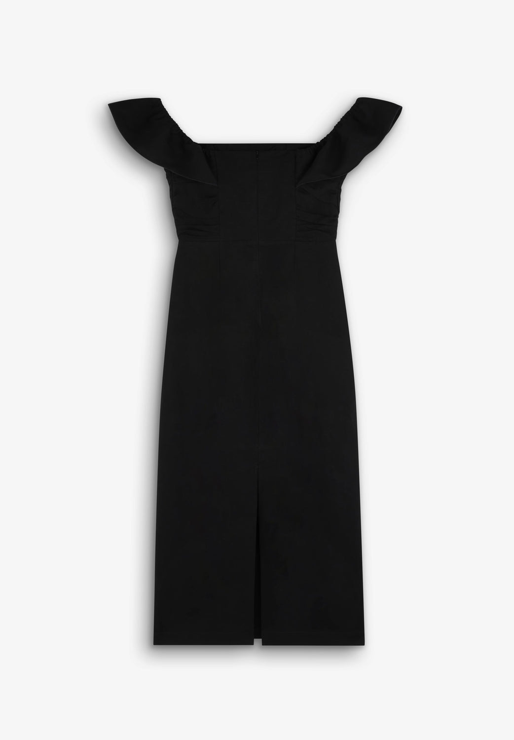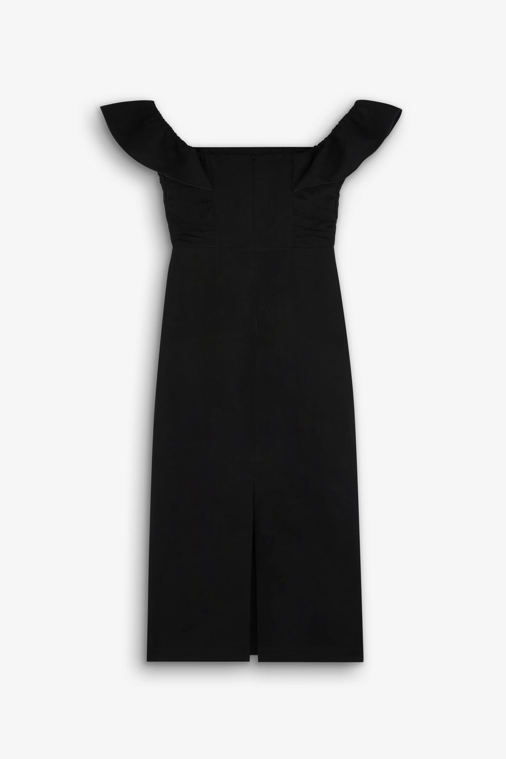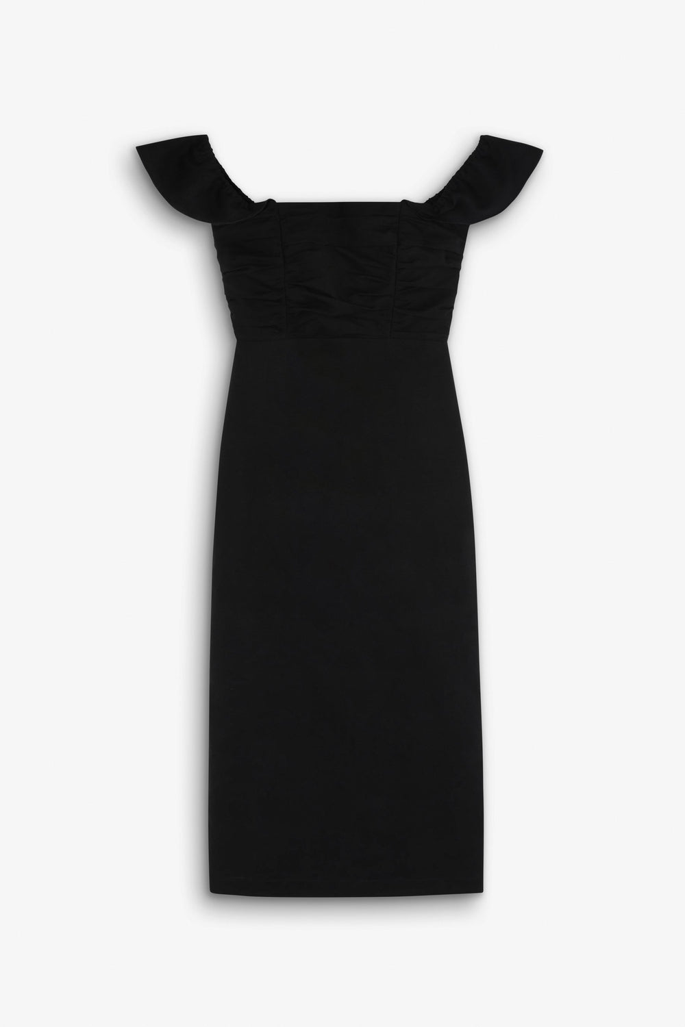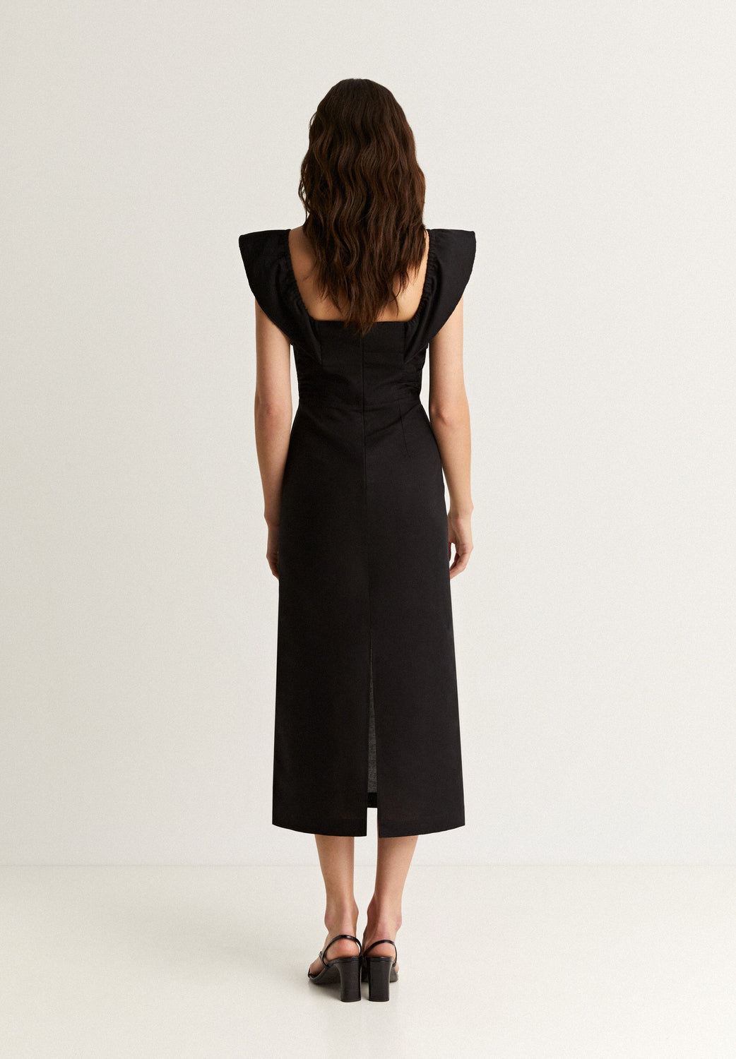 LINEN MIDI DRESS WITH DRAPED CHEST