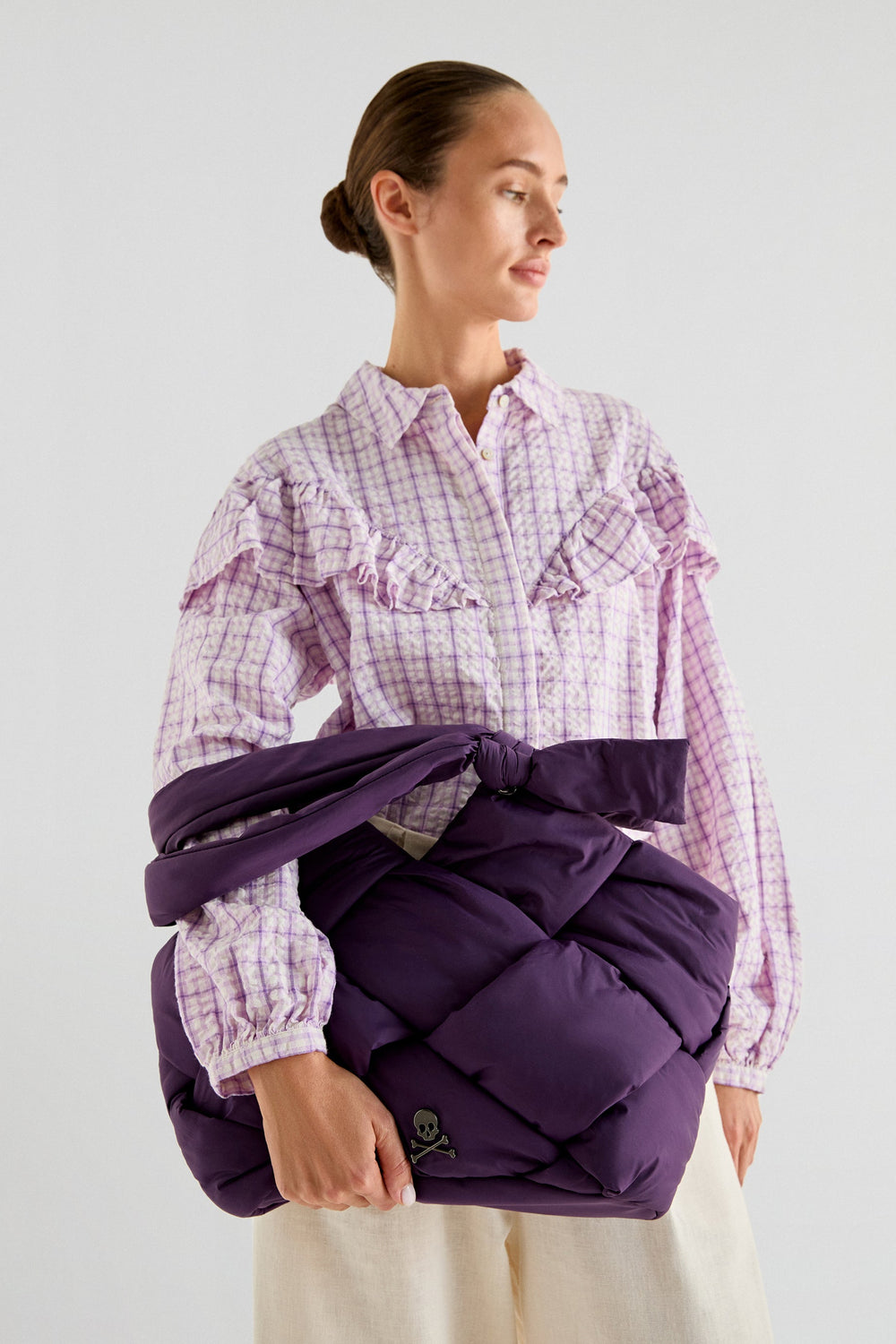 Special quilted with bag made of nylon. Double straps and snap button fastening. Inner zipped pocket.