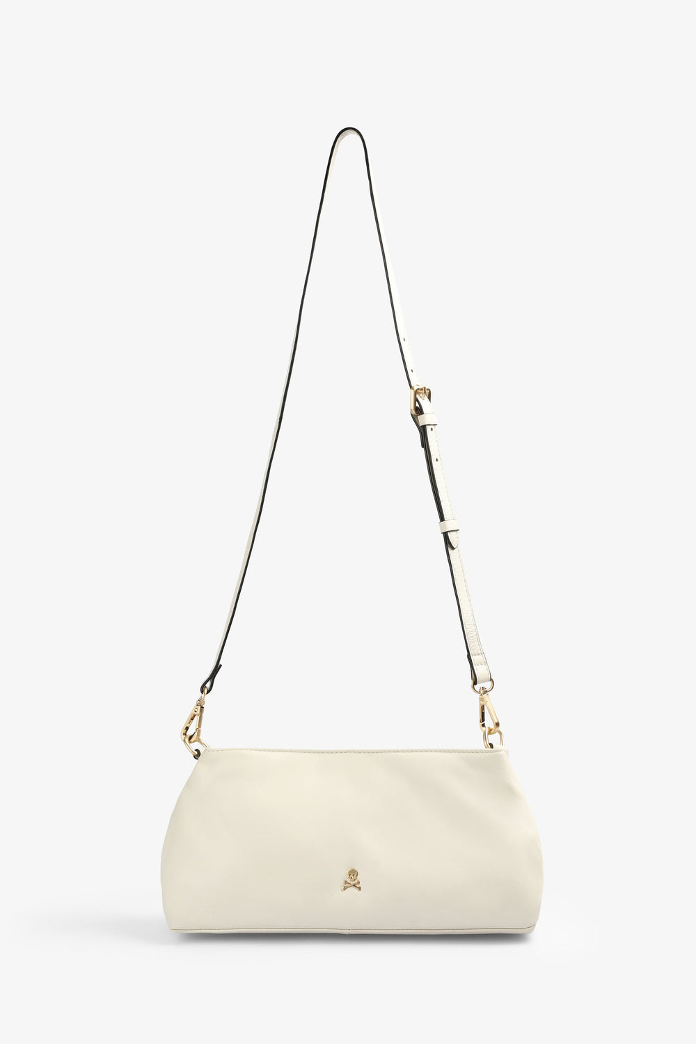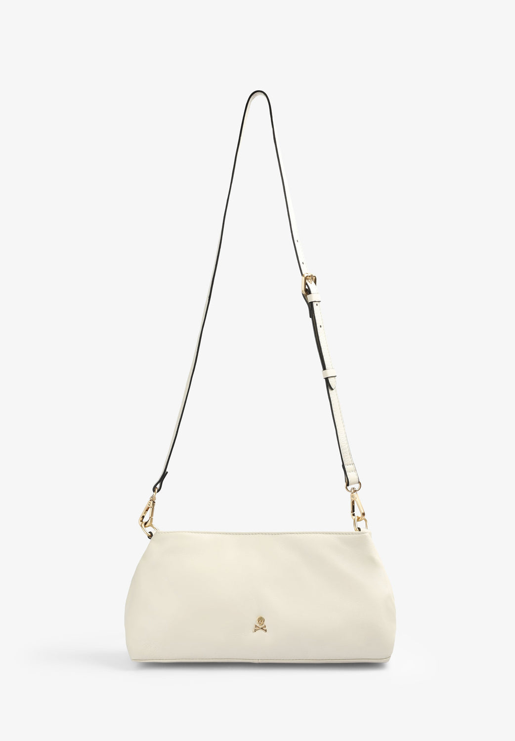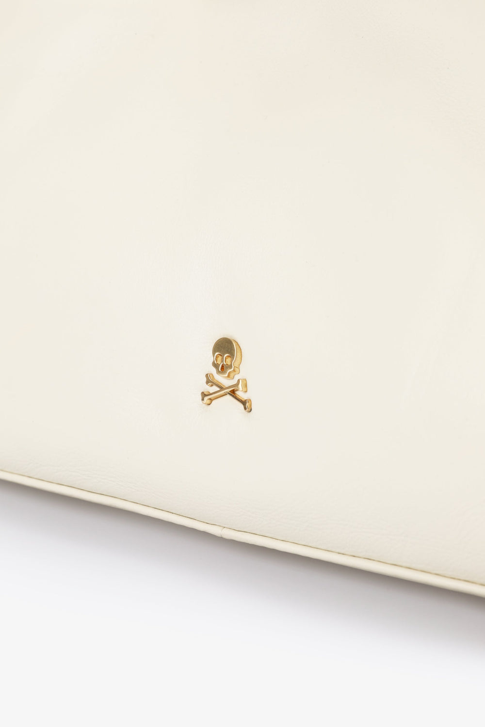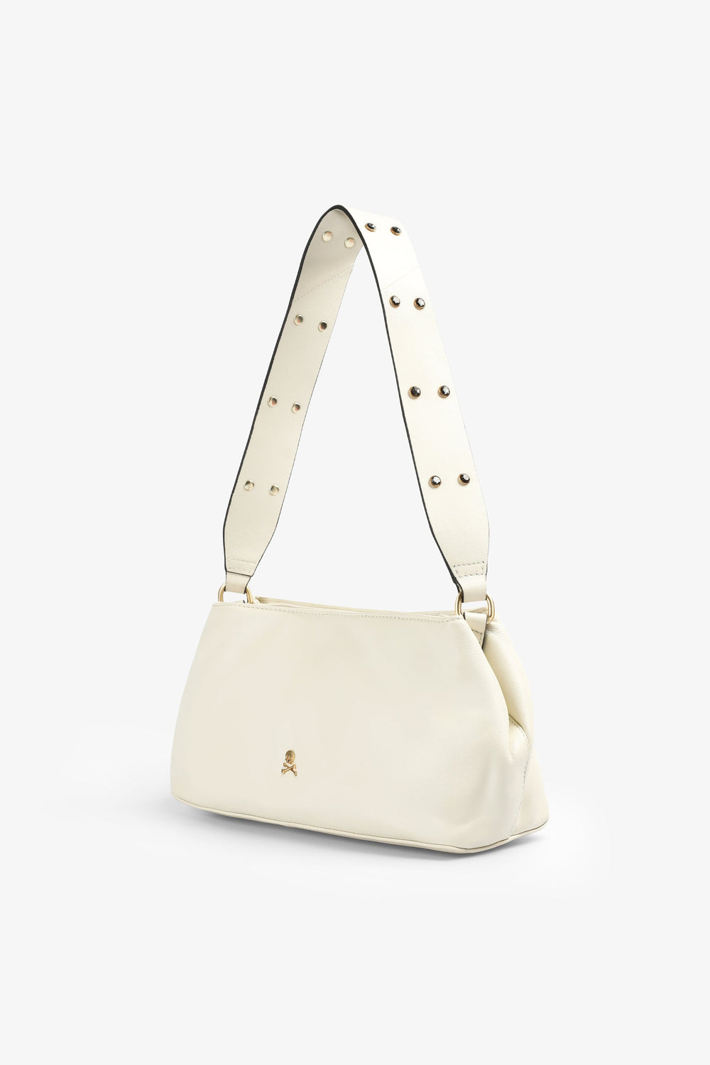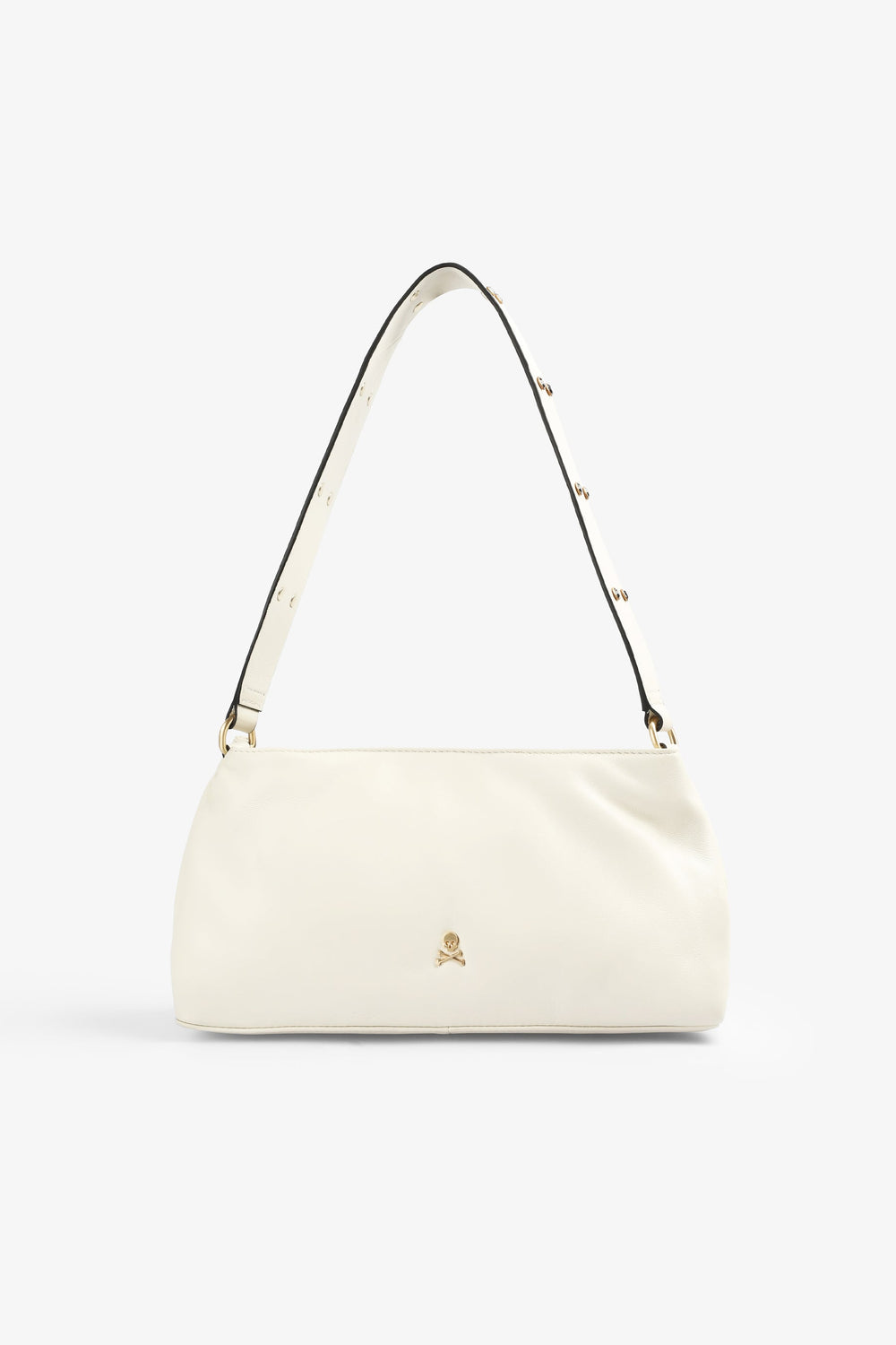 Bag made of 100% leather. Snap button closure, double handle and adjustable shoulder strap. Crystal details on the handle and skull on the front.