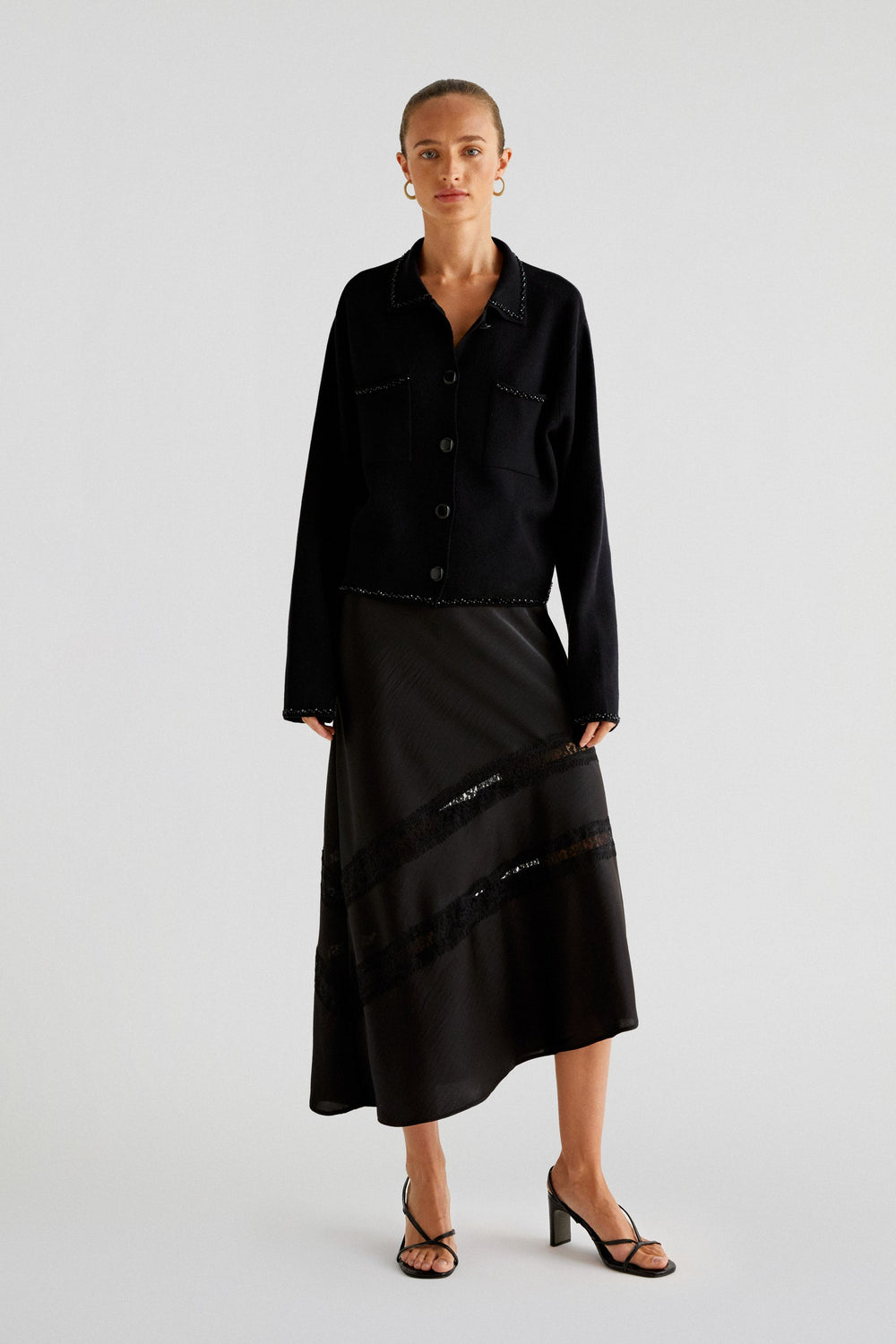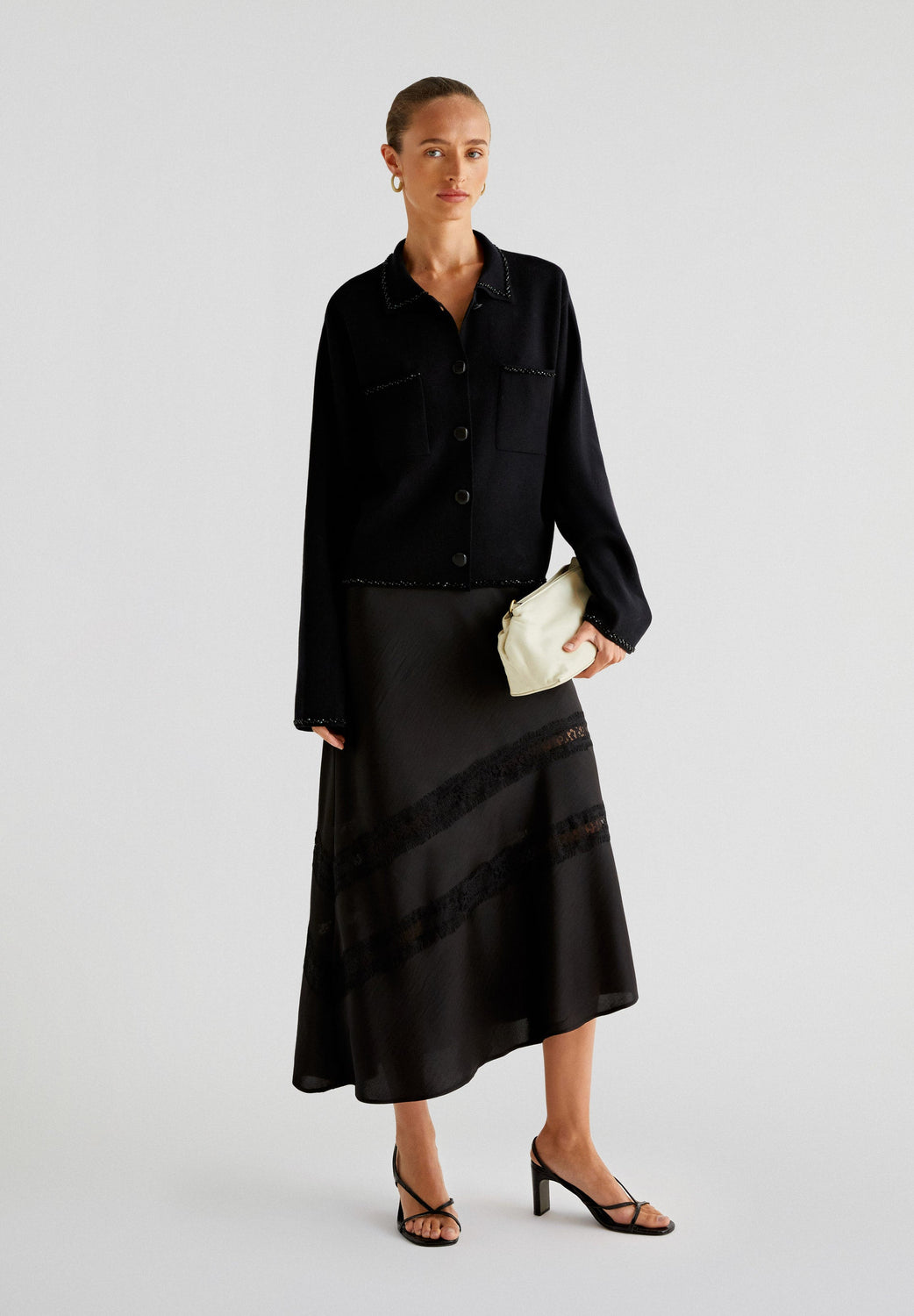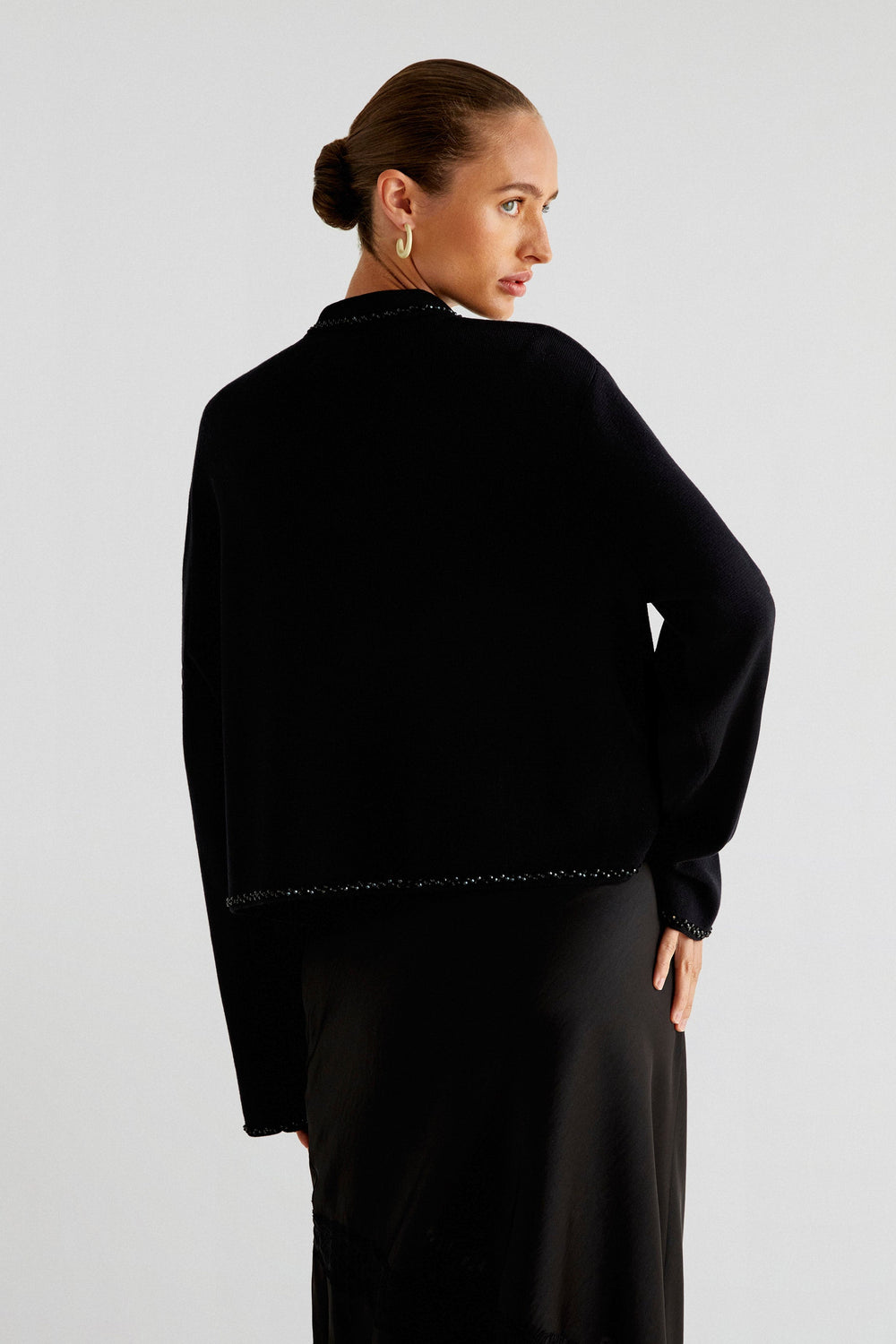 Cardigan made of a wool blend. Regular fit, classic collar and button fastening. Long sleeves and pockets. Bead details.