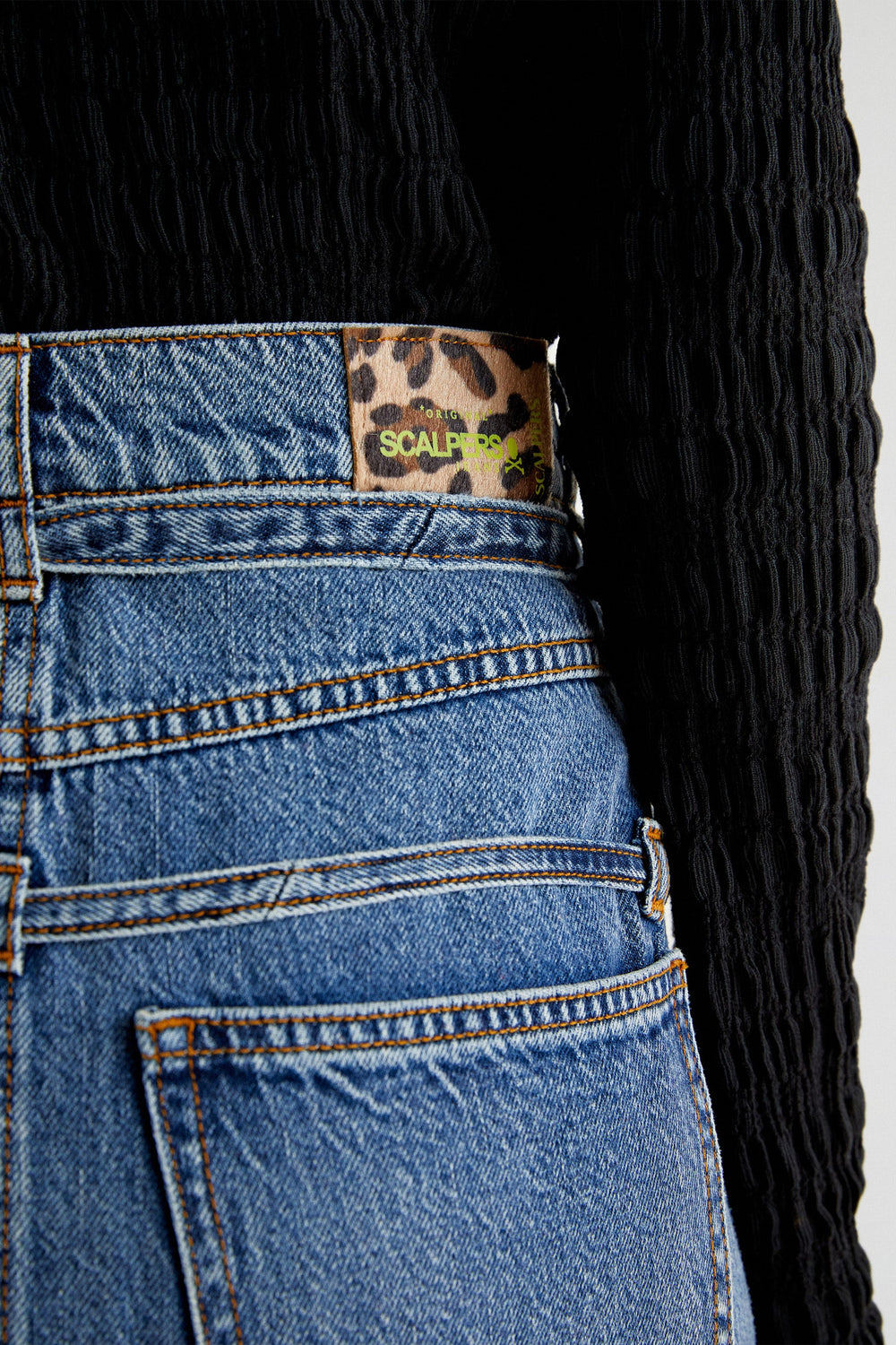 Denim midi skirt. Regular fit, button and zip fastening and belt loops at waist. Back and front pockets. Back vent and bow details.