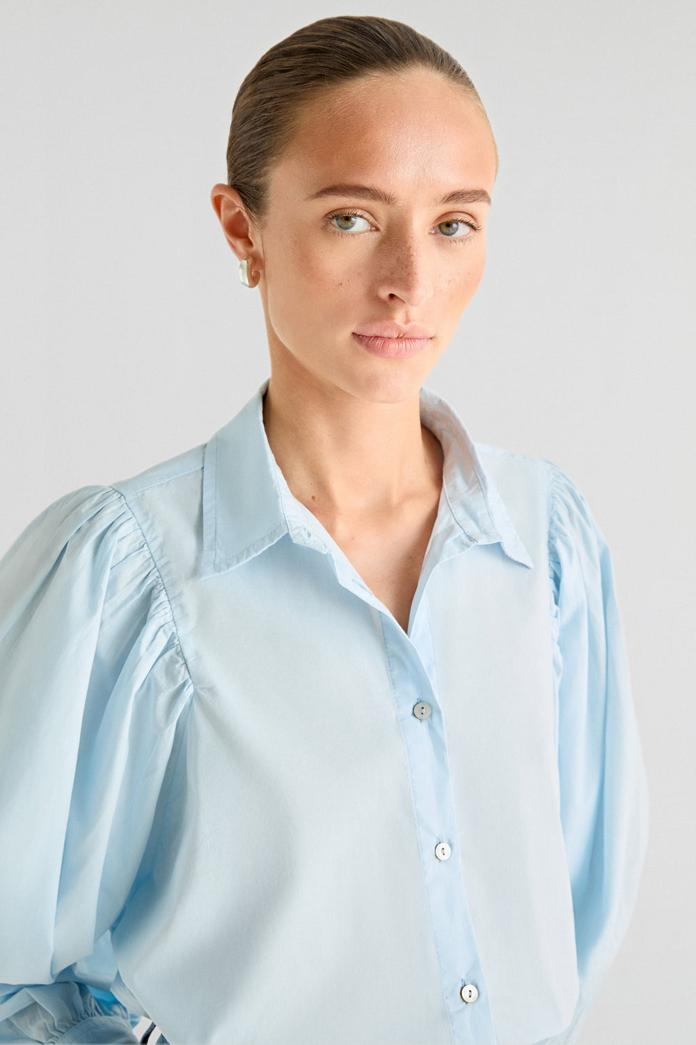 Shirt made of cotton. Regular fit, classic collar and button fastening. Long puff sleeves with buttoned cuffs.