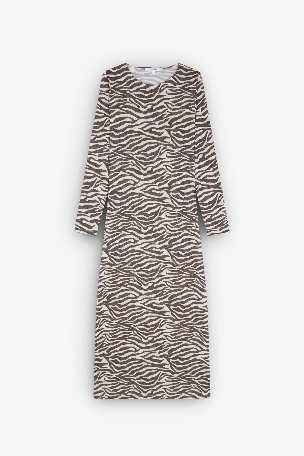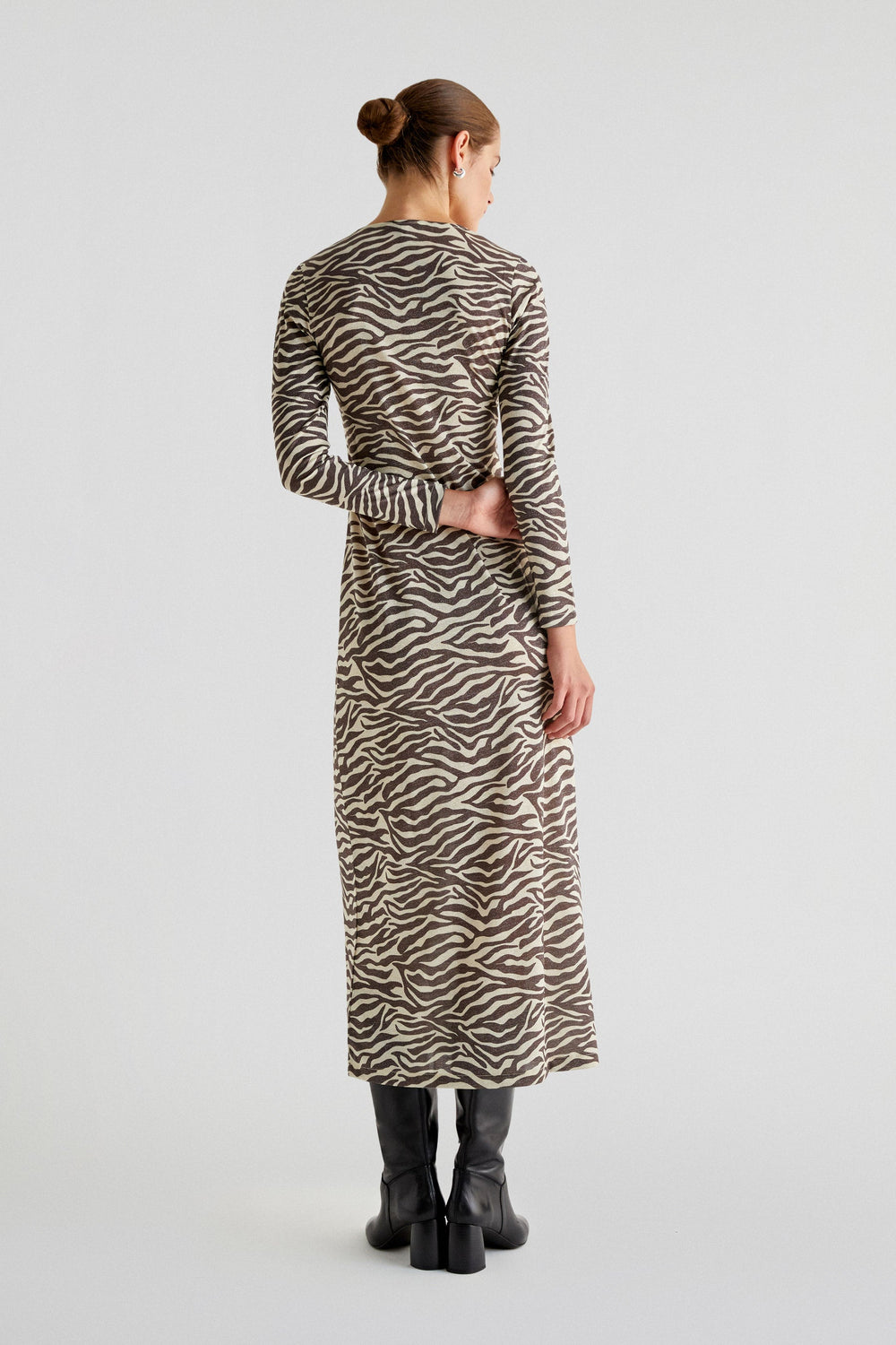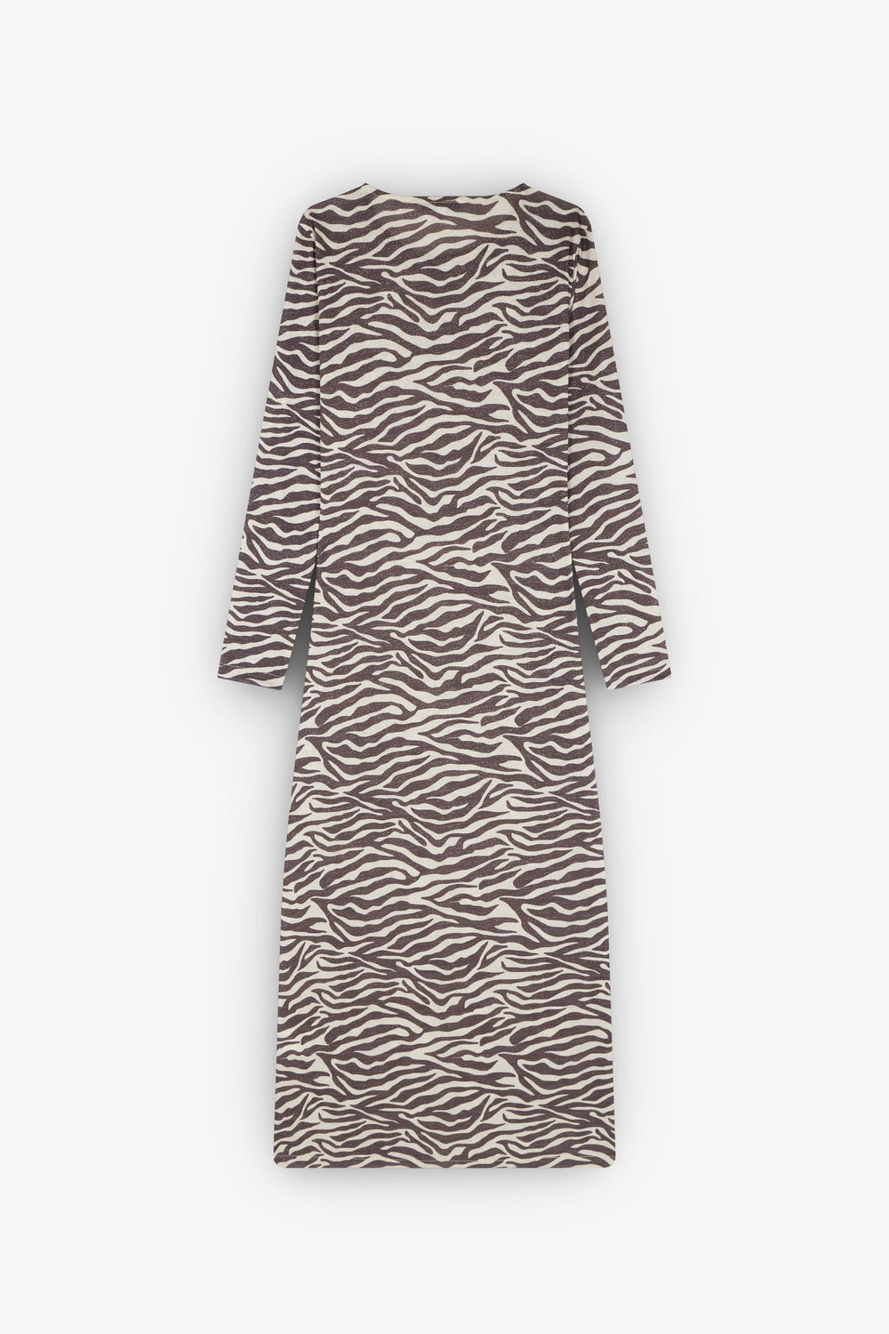 Midi dress with zebra print. Slim fit, round neck and long sleeves.