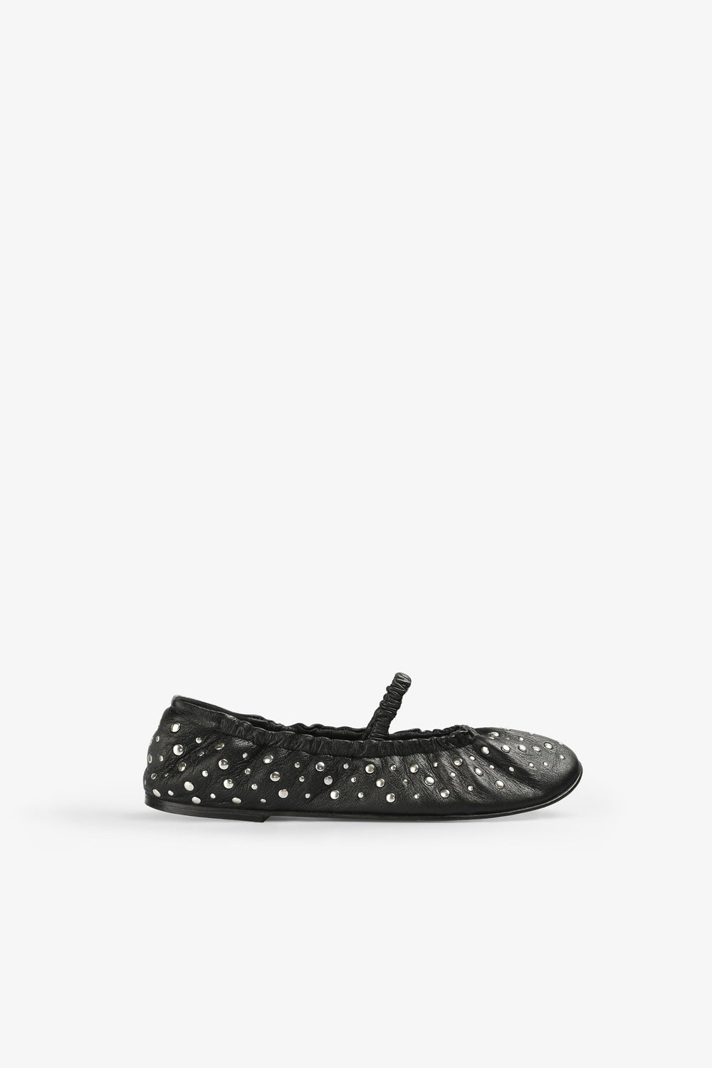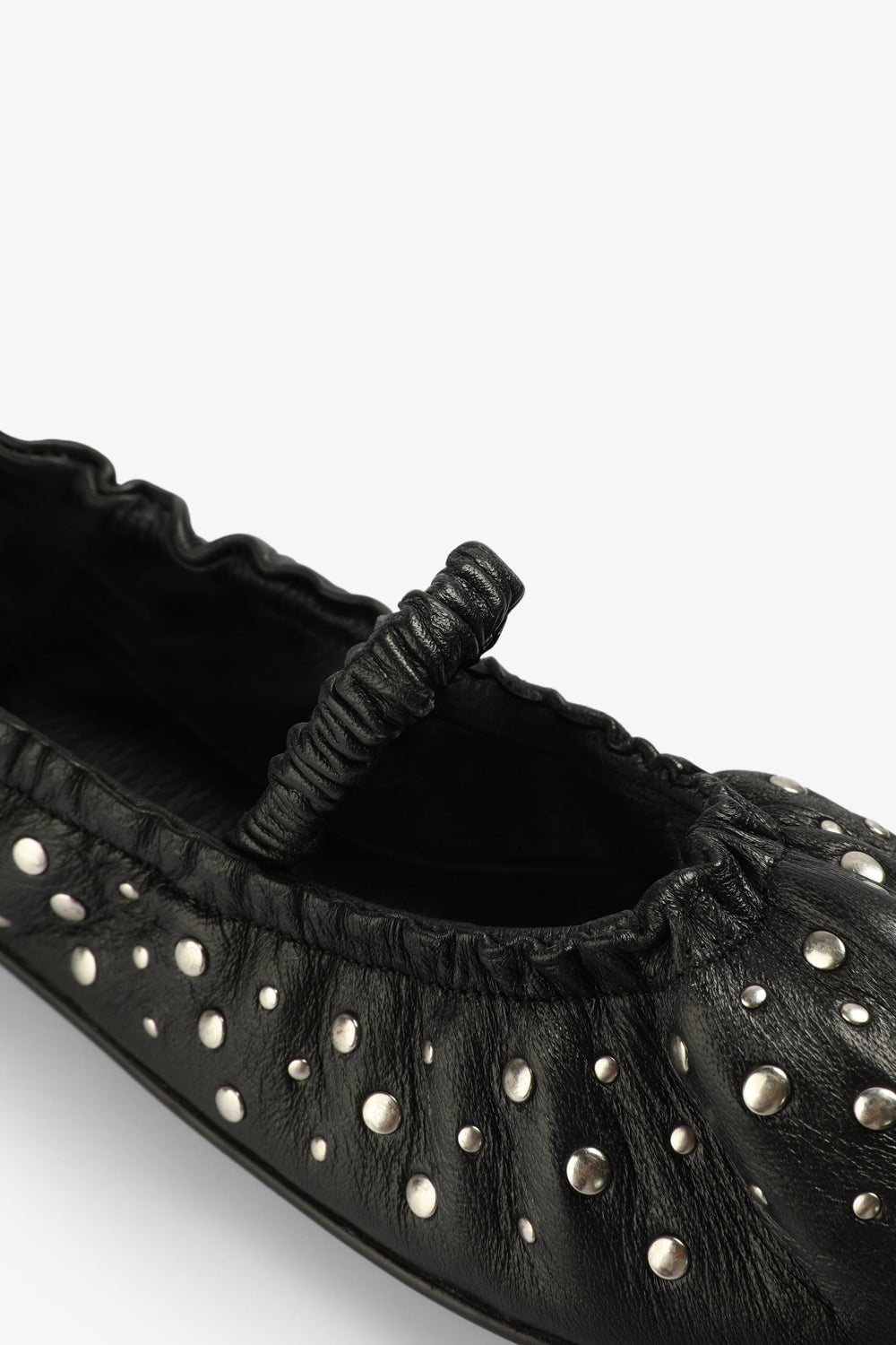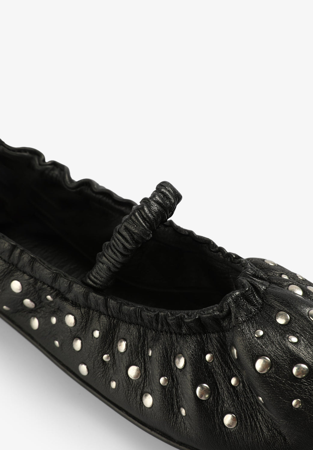 Gathered ballet flats made of 100% leather. Rubber sole, strap and all-over studs.