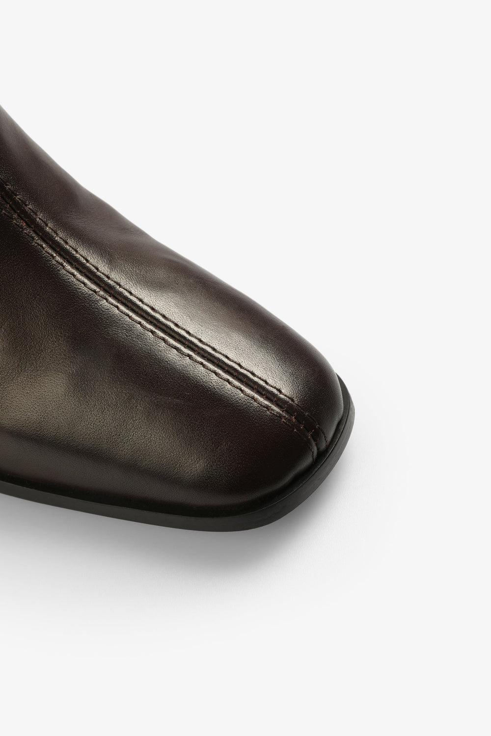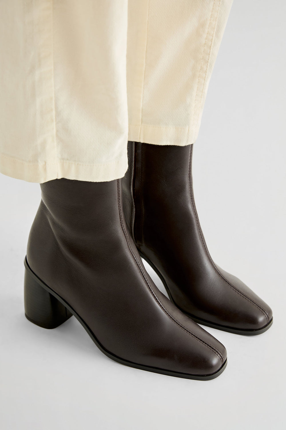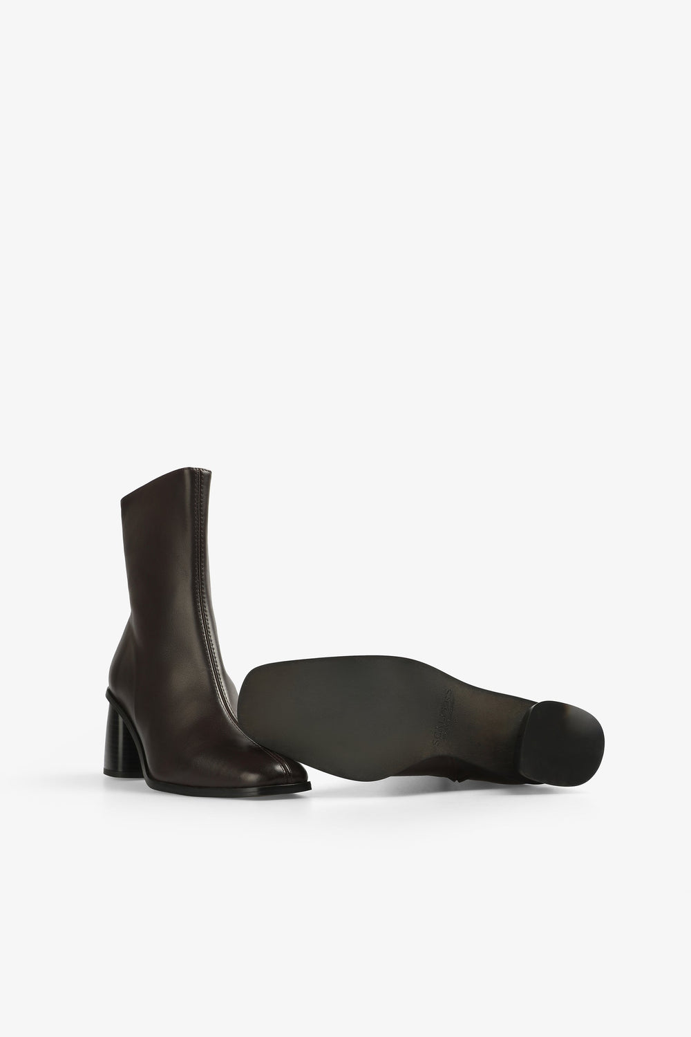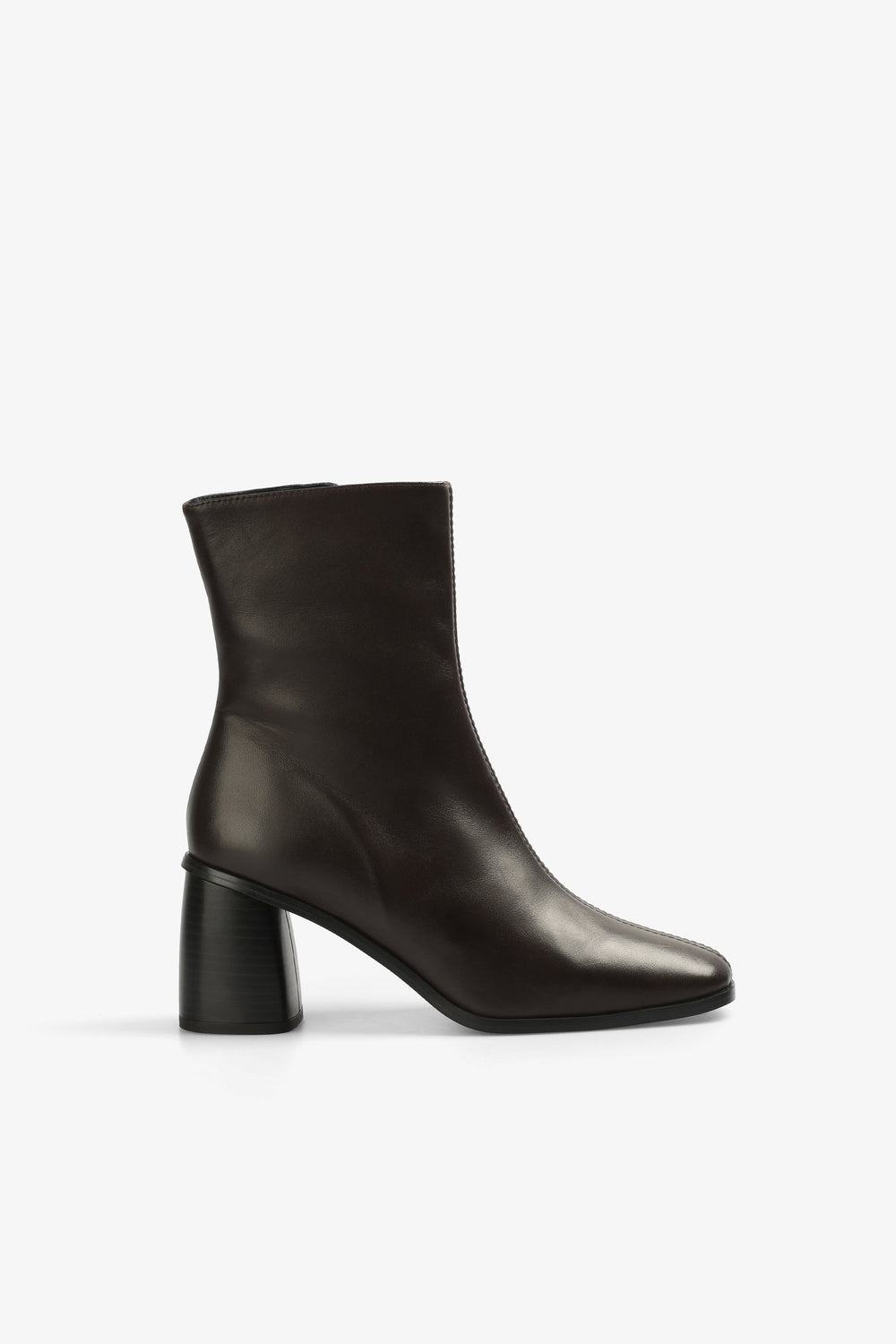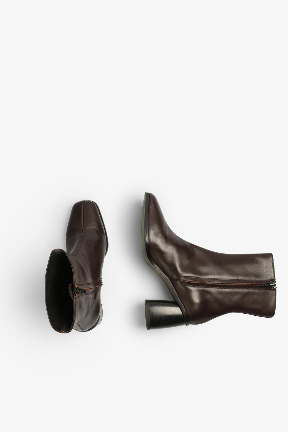 Ankle boots made of 100% soft leather. Tight mid-calf fit and side zip fastening. Medium heel.